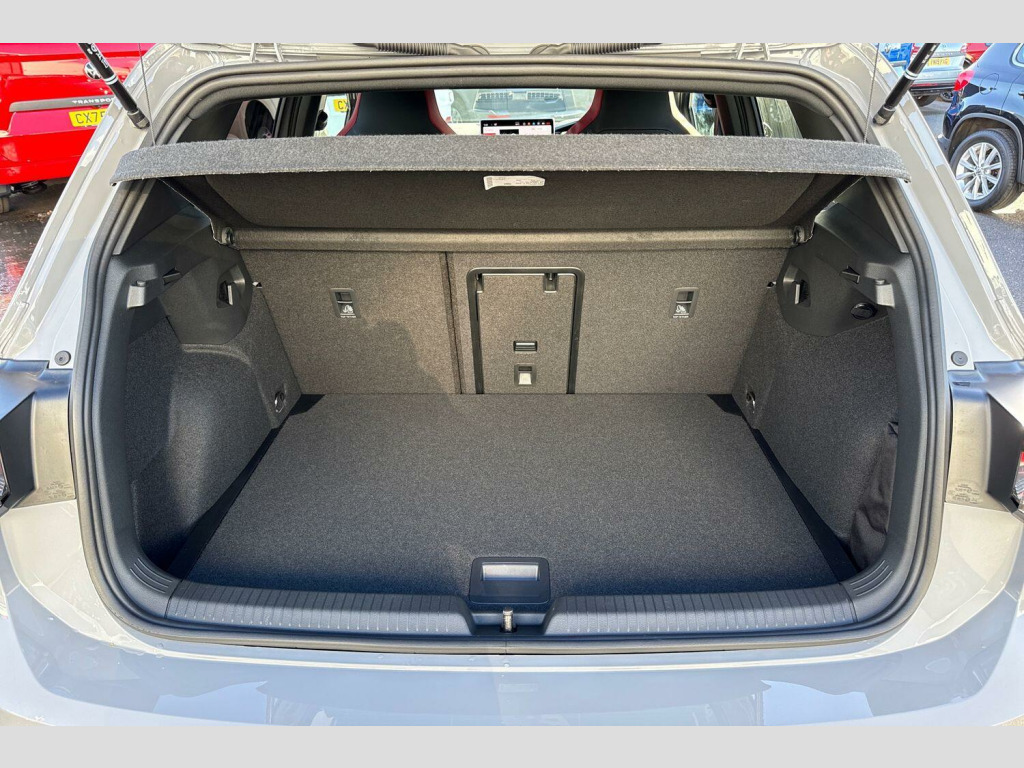 Moving inside, the sporty cloth seating ensures comfort on every journey. The rear seating area features a folding armrest with cupholders, vent controls and USB ports. The cabin features a pair of front seats with manual adjustment, wireless smartphone charger, various storage compartments, multifunction steering wheel and touchscreen display. From this display you can access the climate controls alongside features such as navigation, FM/DAB radio, bluetooth connectivity for hands-free phone use and media streaming, and Apple Carplay/AndroidAuto for further device connectivity.