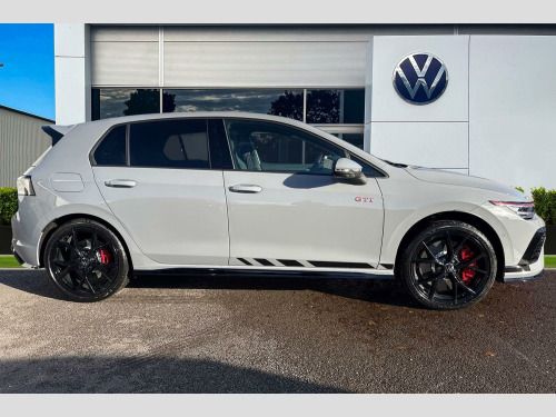 Presenting this brand new Volkswagen Golf GTI Clubsport that is available to purchase at Wrexham Volkswagen. Powering this Golf is a 2.0 TSI 300PS engine with automatic transmission. The exterior is finished in the 'Moonstone Grey' paintwork, which is complimented by the optionally-fitted 19in Estoril alloy wheels to the side. This Golf comes with a range of features on offer such as the Matrix LED headlights that keep the roads well lit, rear tinted windows for passenger privacy, keyless entry and starting for quick accessibility, and parking sensors that assist with maneuvering alongside the area view cameras.