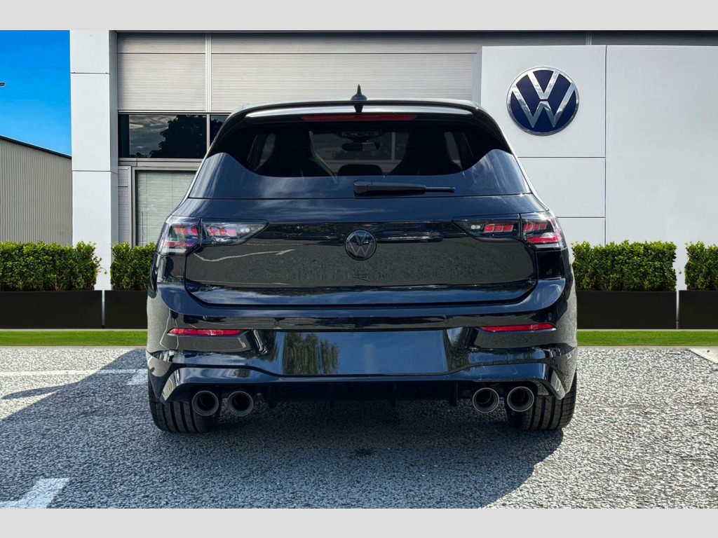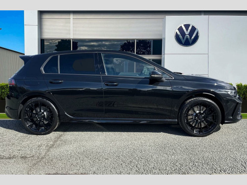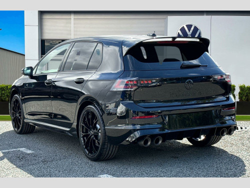Presenting this brand new Volkswagen Golf R Black Edition that is available to purchase at Wrexham Volkswagen. Powering this Golf is a 2.0 TSI 333PS engine with automatic transmission and 4Motion all wheel drive. The exterior, which is finished in the 'Grenadilla Black' paintwork, has a range of features on offer. To the front of the car you'll find the Matrix LED headlights that provide outstanding visibility, to the side the rear tinted windows for passenger privacy and the 19in Warmenau alloy wheels, and to the rear the Akrapovic sports exhaust system. For added convenience this Golf also features keyless entry and starting, electric release towbar, and parking sensors that assist with maneuvering alongside the area view cameras.