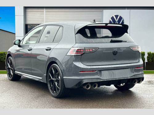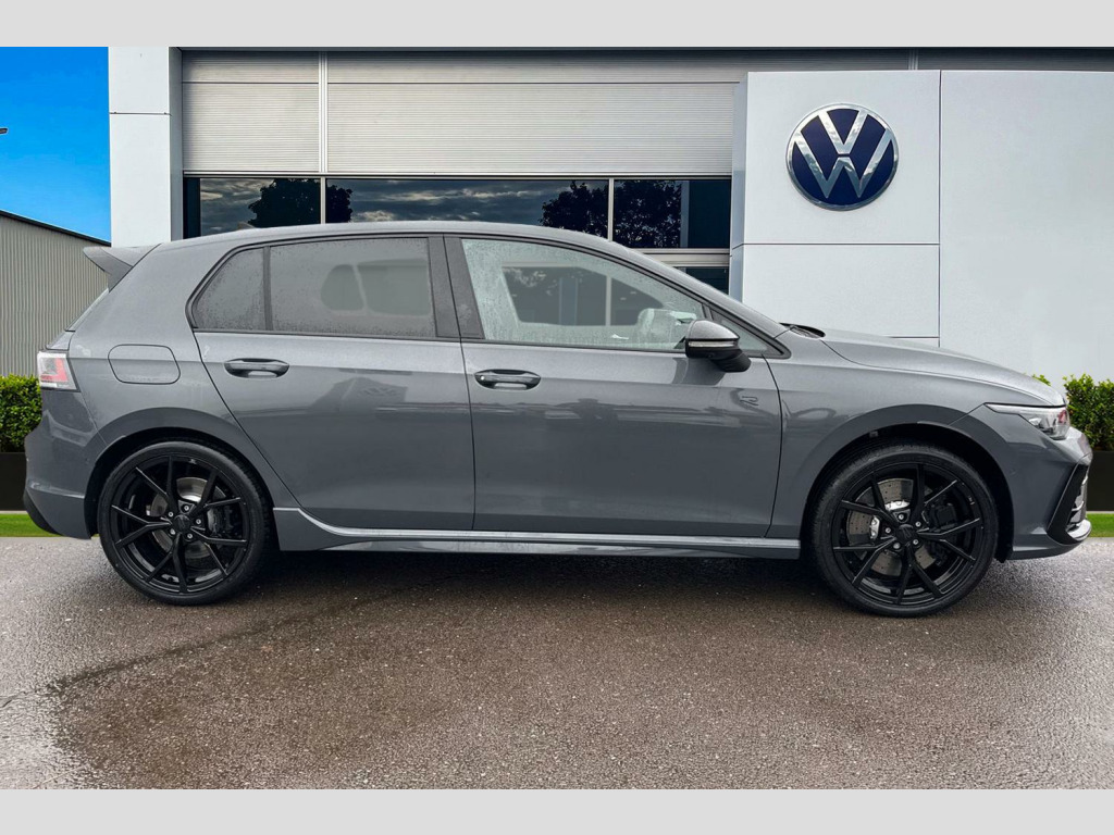 Presenting this brand new Volkswagen Golf R Black Edition that is available to purchase at Wrexham Volkswagen. Powering this Golf is a 2.0 TSI 333PS engine with automatic transmission, 4Motion all wheel drive and adaptive chassis control. The exterior is finished in the 'Dolphin Grey' paintwork, which is complimented by the 19in Estoril alloy wheels to the side. This Golf comes with a range of features on offer such as the Matrix LED headlights that provide exceptional visibility, rear tinted windows for passenger privacy, keyless entry and starting for quick accessibility, and parking sensors that assist with maneuvering alongside the area view cameras.