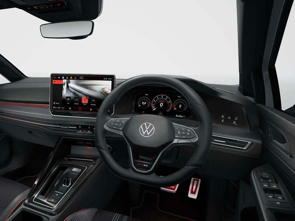 12V Socket - Centre Console, 12V Socket - Luggage Compartment, 19in Alloy Wheels - Queenstown with Red Glaze, 2 USB-C Ports in the Front - 2 USB-C Ports in Centre Console in the Rear - Charging Capacity up to 45 W, 3-Point Seat Belts for the Outer Rear Seats, 3-Point Seatbelts in Front with Height Adjustment and Seatbelt Pretensioners, 6 Speakers - 4 Front-2 Rear with Centre Speaker, Activated Carbon Canister - Evaporative Emission Control System - EVAP, Adaptive Cruise Control, Advanced Driver Attention and Drowsiness Monitor, Air Care Climatronic 3-Zone with Rear Air Conditioning Control Panel, Aluminium Gearshift Knob and Handle, Ambient Lighting with 30 Colour Options, Anti-Theft Wheel Bolts, Auto-dimming Rear View Mirror, Automatic Headlight Control with LED Separate Daytime Running Lights and Coming Home-Leaving Home Feature, Autonomous Emergency Braking - Front Assist with Pedestrian and Cycling Monitoring, Black Exterior Mirror Housings, Bumpers in Clubsport - Air Intake in Honeycomb Structure, Carpet Mats - Front and Rear, Chrome Plated Radiator Grille Inserts - Air Vent Surrounds and Light Switch Surrounds, Curtain and Side Airbags in Front with Centre Airbag, DAB - Digital Radio Reception, Decorative Inserts for Special Edition, Digital Cockpit Pro, Disc Brakes in Front with Red Brake Calipers and GTI Logo, Disc Brakes in Rear, Diversity Antenna for FM Reception, Door Insert - Side Trim Panel and Arm Support in Leatherette, Door Mirrors - Convex on Passenger Side - Aspherical on Driver Side, Door and Side Trim Panel, Driver and Front Passenger Airbag with Front Passenger Airbag Deactivation, Drivers Assistance Pack, Dynamic Road Sign Display, E-Sim Card for Online Connectivity, EDITION 50 Decals on Roof Spoiler, Insides of Exterior Mirror and Trim on Door Sills, ESC - Electronic Stability Control, Electronic Parking Brake with Auto Hold Function, Extended Pedestrian Protection Measures, Extended Safety System - Proactive Passenger Protection System, Exterior Ambient Lighting with Illuminated Door Handles, Front Centre Armrest, Front Differential Lock, Front Fog Lamps and Cornering Light, Front Seats with Manual Height Adjustment, Golf GTI EDITION 50 Pack including Adaptive Chassis Control, Heat Insulating Glass in Side and Rear Windows, High Beam Assist - Automatic Sensing for Switching Between Dipped and Main Beam, Hill Start Assist, ISOFIX Anchors for Child Seats on Outer Rear Seats and Front Passenger Seat - Compatible with i-Size, Infotainment System with 12.9in Display, Integrated Head Restraints for Front Seats, LED Matrix Headlamps, LED Reading Lights - Two in the Front - Two in the Rear, LED Rear Lights with Dynamic Turn Signal, Laminated Safety Glass Windshield - Heat Insulating, Manually Adjustable Lumbar Support in Front Seats, Mobile Phone Interface with Wireless Inductive Charging Function, Multifunction Front Facing Camera for Distance Control, Nameplate Set - GTI, Navigation System, Oncoming Vehicle Braking when Turning including Swerve Support, Parking Sensors - Front and Rear, Preparation for We Connect and We Connect Plus, Preperation for Alcohol Ignition Interlock, Privacy Glass for Rear Side Windows and Rear Window, Progressive Steering, Rain Sensor, Rear Exhaust Tailpipe, Rear Fog Light on One Side and Back Up Light on Both Sides, Rear Seat Bench Unsplit - Backrest Split Folding with Centre Armrest - Cupholder and Loadthrough, Red Pedals, Red Seat Belts, Remote Electrically Foldable Door Mirrors - Puddle Lights and Reverse Activated Passengers Door Mirror, Speed Limiter, Speedo - Rev Counter - Electronic Odometer - Trip - Service Interval Display and Exterior Temperature Display, Sports Suspension, Start-Stop Function with Battery Regeneration - Recuperation - Energy Recovery During Braking, Steering Wheel - Leather Wrapped - Sports - Heated - Multifunction - Touch Control - Shift Paddles, Sun Visors with Illuminated Vanity Mirrors, Three Rear Head Restraints, Tool Kit for Tyre Mobility Set, Two-Tone Horn, Tyre Mobility Kit including Compressor and Sealing Foam in Lieu of Spare Wheel, Tyre Pressure Loss Indicator, Voice Control and Voice Enhancer, Warning Signal and Warning Light for Front and Rear Seat Belts Not Fastened, Welcome Light with Surround Lighting, Winter Package, Wireless App Connect, eCall - Emergency Call Service