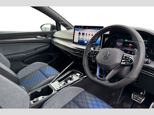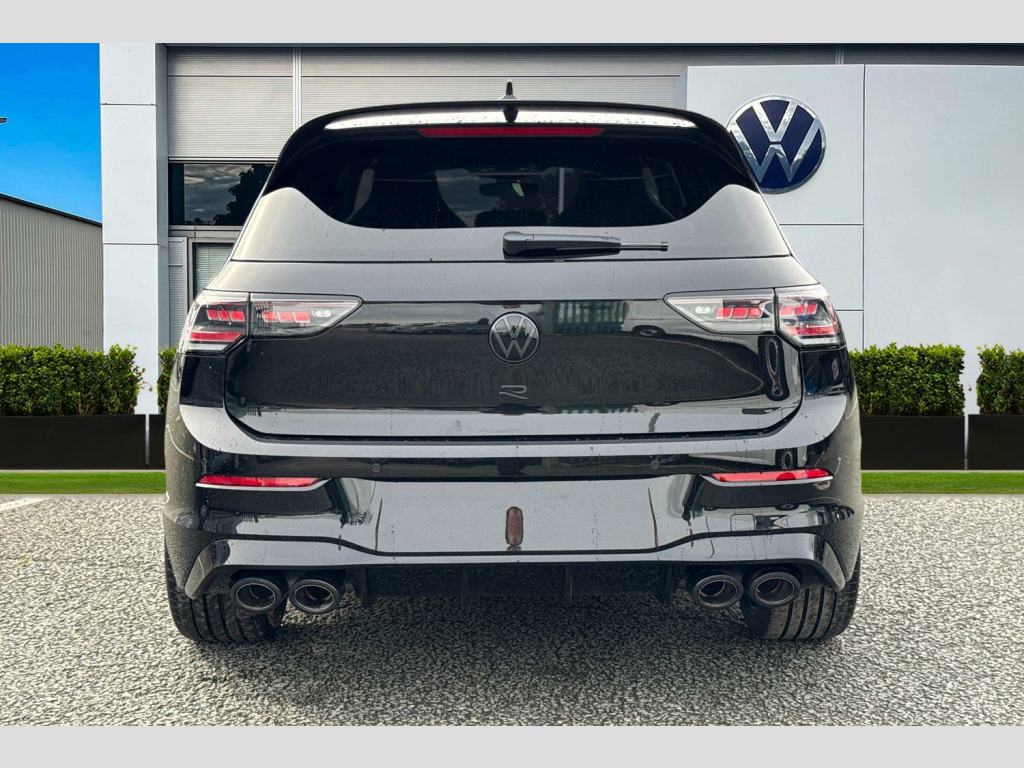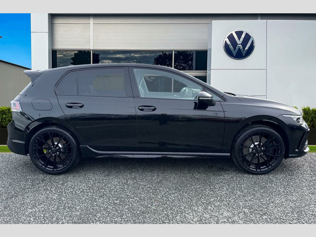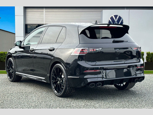 Presenting this brand new Volkswagen Golf R Black Edition that is available to purchase at Wrexham Volkswagen. Powering this Golf is a 2.0 TSI 333PS engine with automatic transmission and 4Motion all wheel drive. A range of suspension settings are available with the adaptive chassis control. The exterior is finished in the 'Grenadilla Black' paintwork, which is complimented by the 19in Warmenau alloy wheels to the side. This Golf comes with a range of features on offer such as the Matrix LED headlights that provide exceptional visibility, rear tinted windows for passenger privacy, keyless entry and starting for quick accessibility, and parking sensors that assist with maneuvering alongside the area view cameras.