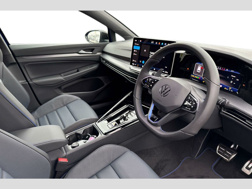 Perforated Carbon-Nappa Leather - Blue-Black, Winter Package 2, 12V Socket - Centre Console, 12V Socket - Luggage Compartment, 19in Alloy Wheels - Estoril Black, 2 USB-C Ports in the Front - 2 USB-C Ports in Centre Console in the Rear - Charging Capacity up to 45 W, 3-Point Seat Belts for the Outer Rear Seats, 3-Point Seatbelts in Front with Height Adjustment and Seatbelt Pretensioners, 6 Speakers - 4 Front-2 Rear with Centre Speaker, Activated Carbon Canister - Evaporative Emission Control System - EVAP, Adaptive Cruise Control, Advanced Driver Attention and Drowsiness Monitor, Air Care Climatronic 3-Zone with Rear Air Conditioning Control Panel, Alarm with Interior Protection, Aluminium Gearshift Knob and Handle, Auto-dimming Rear View Mirror, Automatic Headlight Control with LED Separate Daytime Running Lights and Coming Home-Leaving Home Feature, Autonomous Emergency Braking - Front Assist with Pedestrian and Cycling Monitoring, Black Edition, Body Coloured Bumpers, Body Coloured Door Handles, Brake Calipers - Front and Rear - Black with Darkened R Logo, Carpet Mats - Front and Rear, Curtain and Side Airbags in Front with Centre Airbag, DAB - Digital Radio Reception, Decorative Inserts Carbon Grey in Dash and Front Door Trim Panels, Digital Cockpit Pro, Disc Brakes in Front, Disc Brakes in Rear, Diversity Antenna for FM Reception, Door Insert - Side Trim Panel and Arm Support in Leatherette, Door Mirrors - Convex on Passenger Side - Aspherical on Driver Side, Door and Side Trim Panel, Driver and Front Passenger Airbag with Front Passenger Airbag Deactivation, Drivers Assistance Pack, Driving Profile Selection, Dynamic Headlight Range Control, Dynamic Road Sign Display, Dynamic Steering, E-Sim Card for Online Connectivity, ESC - Electronic Stability Control, Electronic Parking Brake with Auto Hold Function, Electronic maximum Speed Limit Increased to 270 kmh, Extended Pedestrian Protection Measures, Extended Safety System - Proactive Passenger Protection System, Exterior Ambient Lighting with Illuminated Lighting Animation with Wake Up-Goodbye Scenario, Front Centre Armrest, Front Head Restraints, Front Seats with Manual Height Adjustment, Front Stabilizer Bar, Heat Insulating Glass in Side and Rear Windows, Heated Front Seats, Hill Start Assist, ISOFIX Anchors for Child Seats on Outer Rear Seats and Front Passenger Seat - Compatible with i-Size, Integrated Head Restraints for Front Seats, Keyless Access - Keyless Locking and Starting System with SAFELOCK, LED Light Unit in Front Footwell - Selectable Light Colour, LED Rear Lights with Dynamic Turn Signal, Laminated Safety Glass Windshield - Heat Insulating, Lane Change System with Side Assist - Rear Traffic Alert and Exit Warning System, Lane Keeping System Lane Assist, Manually Adjustable Lumbar Support in Front Seats, Matrix LED Headlights with Automatic Headlight Control - Poor Weather Light and Entry Lighting, Mirror Caps in Black - Black Strips on Radiator Grille and Headlights - Headlights Darkened, Mobile Phone Interface with Wireless Inductive Charging Function, Multifunction Front Facing Camera for Distance Control, Navigation System, Oncoming Vehicle Braking when Turning including Swerve Support, Parking Sensors - Front and Rear, Pedals - Brushed Stainless Steel, Poor Weather Light and Cornering light, Preparation for Light Assist System for Features on Demand, Preparation for We Connect and We Connect Plus, Progressive Steering, R Name Plate, R Styling Pack, Rain Sensor, Reading Lights - Front and Rear x2 Incorporating LED Technology, Rear Exhaust Tailpipe, Rear Fog Light on One Side and Reversing Lights on Both Sides, Rear Seat Bench Unsplit - Backrest Split Folding with Centre Armrest - Cupholder and Loadthrough, Rear Tinted Glass, Rear View Camera, Remote Electrically Foldable Door Mirrors - Puddle Lights and Reverse Activated Passengers Door Mirror, Speed Limiter, Speedo - Rev Counter - Electronic Odometer - Trip - Service Interval Display and Exterior Temperature Display, Sport Seats in Front, Sports Suspension, Start-Stop Function with Battery Regeneration - Recuperation - Energy Recovery During Braking, Steering Wheel - Leather Wrapped - Sports - Heated - Multifunction - Touch Control - Shift Paddles, Sun Visors with Illuminated Vanity Mirrors, Technology Package Park and Comfort, Three Rear Head Restraints, Two-Tone Horn, Tyre Mobility Kit and Compressor, Tyre Pressure Loss Indicator, Voice Control and Voice Enhancer, Warning Signal and Warning Light for Front and Rear Seat Belts Not Fastened, Welcome Light with Surround Lighting, Wireless App Connect, XDS Electronic Differential Lock for Improved Traction and Handling, eCall - Emergency Call Service