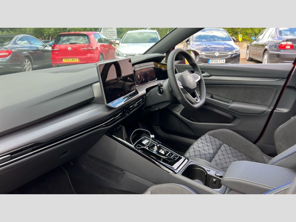 Volkswagen Golf 1.5 eTSI 150 Black Edition 5dr DSG Activated carbon canister, Adaptive cruise control (ACC), Advanced driver attention and drowsiness monitor, Dynamic road sign display, Dynamic steering, E-Sim card for online connectivity, eCall emergency call system, Emergency assist, Lane keeping system Lane Assist, Multi-color Digital cockpit pro, selection of different info profile possible, Multifunction front facing camera for distance control, Navigation system, Oncoming vehicle braking when turning including swerve support, Preparation for light assist system, Speed limiter, Speedo, rev counter, electronic odometer, trip, service interval display, exterior temperature and fuel gauge, Traffic jam assist, Voice enhancer and voice control, Warning signal and warning light for front and rear seatbelts not fastened, We connect plus preparation, We connect preparation, Wireless app connect, Hybrid propulsion system, Petrol Particulate Filter, Start-stop system with battery regeneration (recuperation - energy recovery during braking), XDS electronic differential lock for improved traction and handling, 2 USB C ports in front, 2 USB charging sockets on the centre console in the rear charging capacity upto 45W, Comfort telephony + wireless charging, without wireless aerial connection, Digital radio reception (DAB), Diversity antenna for FM reception, Gaming platform via car app, Infotainment system with 12.9" display, Mobile phone interface with inductive charging feature, 3rd brake light, Auto dimming rear view mirror, Auto headlights, Automatic headlamp activation with Coming home and Leaving home feature, Body colored bumpers in R-Line style, Body colour door handles, Exterior mirrors convex on the left and aspherical on the right, Front and rear electric windows, Heat insulating windshield made of laminated glass, LED daytime running lights, Rain sensor, Rear exhaust tailpipe, Rear fog light on one side and reversing lights on both sides, Rear side wing doors, Rear windscreen washer and wiper with interval delay, Remote electrically foldable door mirrors, puddle lights and reverse activated passenger's door mirror, Volkswagen logo in front, illuminated lighting animation with wake up/goodbye scenario and illuminated door handles, Welcome light with surround lighting, 12V socket in front centre console, 12V socket in luggage compartment, 3 rear head restraints, 3 seat bench in 2nd row, Ambient lighting with 30 colour including LED light unit in front footwell with selectable light colour, Brushed stainless steel pedals, Carpet mats, front and rear, Chrome plated radiator grille inserts, air vent surrounds and light switch surrounds, Front centre armrest, Front seat lumbar support adjuster, Heated front seats, Integrated front head restraints, ISOFIX anchors for child seats on outer rear bench seats and on front passanger seat compatible for i-Size, Luggage compartment lighting, Manual height adjustable front seats, Plastic gear knob, Premium sports seats in front, Rear cupholder and loadthough, Sardegna cloth upholstery with front and outer rear seats Art Velour inner sides of bolsters, Single front passenger seat, Soul black instrument panel, Split folding backrest with centre armrest and unsplit rear seat bench, Storm grey roof lining, Sun visors with illuminated vanity mirrors, Black exterior Styling package with Matrix LED headlights - Golf, Winter package - Golf DSG Estate/Hatchback, 3 point height adj front seatbelts + pretensioners, 3 rear three point seatbelts, ABS, Autonomous emergency braking front assist with pedestrian and cyclist monitoring, Child locks on rear doors, Driver and front passenger airbag with front passenger airbag deactivation, Electronic parking brake with auto hold, ESC (Electronic Stability Control), Extended pedestrian protection measures, Hill start assist, Rear disc brakes, Two tone horn, Tyre pressure loss indicator, Volkswagen roadside assistance, Anti theft wheel bolts, Preparation for alcohol interlock, Decorative inserts carbon grey for dashboard and front door trim panels, 18" Leeds alloy wheels