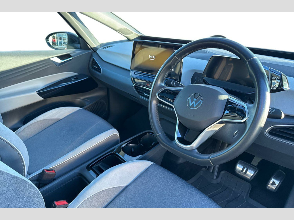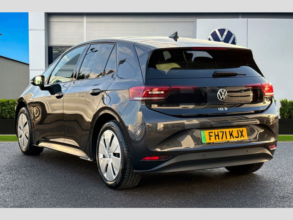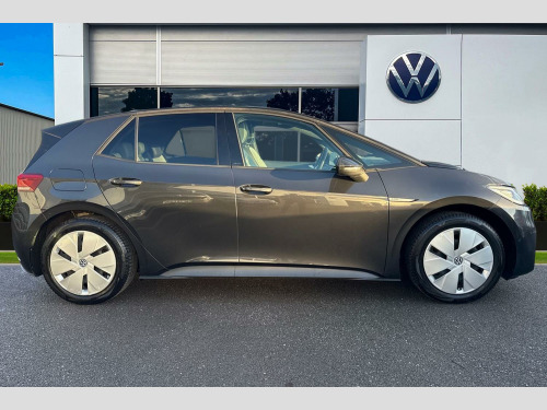 *Range depicts brand new model. Current maximum range may differ in line with battery depreciation. Metallic - Manganese grey, Flow design/Art velour microfleece cloth - Dusty grey/soul black, Front and rear electric windows, Heated rear window, Rear wiper, Variable front intermittent wipers, Body colour door handles, Body coloured bumpers, Rear side wing doors, LED 3rd brake lamp, Separate LED daytime running lights which also perform the indicator function, Anti-lock braking system (ABS), Electronic parking brake with auto hold, Electronic Stability Programme (ESP), Traction control with on/off button, Adaptive cruise control including Front Assist, radar sensor controlled distance monitoring system, City emergency braking system, speed limiter, Driver alert system, Driver profile selection with personalisation, Front and rear parking sensors, Lane assist, Power assisted speed sensitive steering, Body coloured door mirrors with intergrated indicators, 3x3 point rear seat belts, Child locks on rear doors, Driver and passenger airbags, Front and rear curtain airbags, Front passenger airbag deactivation, Side airbags, Tyre pressure monitor, Bluetooth connectivity, E-call, Natural voice control, Security and service (SOS buttons), Wireless app connect, DAB Digital radio, Sound system, Touch control, Car2X technology, Remote tailgate unlocking, 10" touch screen infotainment system, 5.3" Digital dashboard display, BLIS (Blind spot information system), ID. Light, Trip computer, Exterior e-sound, Flow design/Art velour microfleece cloth upholstery, Leather steering wheel, Multi-function steering wheel, Pause and play pedals, Pockets and smartphone pockets in seats, Reach + rake adjustable steering column, Assistance pack - ID.3, Comfort plus pack - ID.3, Design plus pack - ID.3, Infotainment pack with wireless smartphone charging - ID.3, Interior style pack - ID.3, NCAP pack - ID.3, 3 seat bench in 2nd row, Folding rear seats, Front headrests, Isofix child seat anchor points, Rear headrests, Single front passenger seat, Style seats, Alarm, Immobiliser, Remote central locking, Mode 3 32-amp / 7.2kW charging cable for charging at public charge points, Tool kit, Tyre repair kit