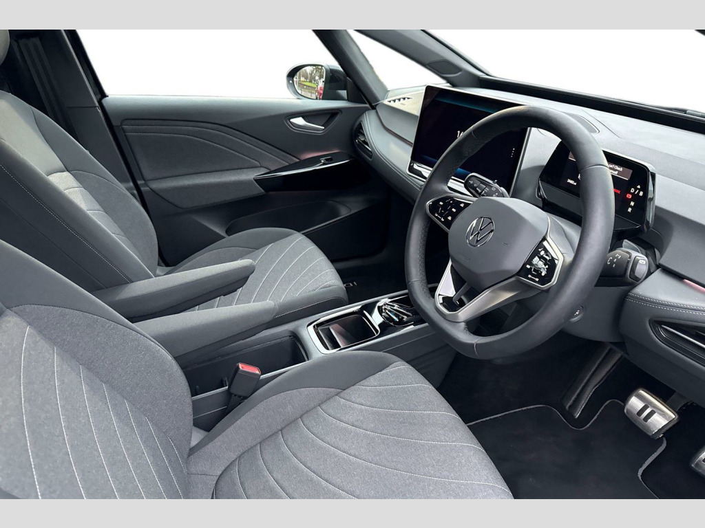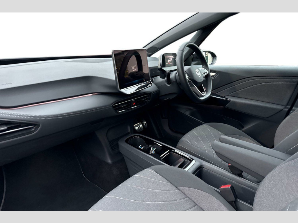 Automatically front heated washer nozzles, Front and rear electric windows, Heat insulating windscreen, Heated windscreen washer jets, Rain sensor, Rear tinted glass from B-pillar backwards approx 65% tinted, Rear wiper, Variable front intermittent wipers, Body colour door handles, Body coloured bumpers, Rear side wing doors, Advanced dynamic light assist for LED matrix headlights, Automatic headlights, LED 3rd brake lamp, Separate LED daytime running lights which also perform the indicator function, Welcome light, Anti-lock braking system (ABS), Autonomous emergency braking front assist with pedestrian and cyclist monitoring, Disc brakes in front, Electronic parking brake with auto hold, Electronic Stability Programme (ESP), Traction control with on/off button, Adaptive cruise control, Advanced driver attention and drowsiness monitor, Dynamic road sign display, Lane assist, Oncoming vehicle braking when turning including swerve support, Auto dimming rear view mirror, Remote electrically foldable door mirrors, puddle lights and reverse activated passenger's door mirror, 3 rear 3 point seatbelts, Centre airbag, Child locks on rear doors, Driver and front passenger airbags, Front and rear curtain airbags, Front passenger airbag deactivation, Front side airbags, Single tone horn, Tyre pressure loss indicator, Bluetooth connectivity, Car2X intelligent vehicle networking, E-call, E-Sim card for online connectivity, Natural voice control, Wireless app connect, Wireless Smartphone charger, 2 USB C ports in front, 2 USB charging sockets on the centre console in the rear charging capacity upto 45W, DAB Digital radio, Front speakers, Gaming platform via car app, Discover pro navigation with 12.9" screen, Preparation for navigation system with media and internet package, Trip computer, Warning signal and warning light for front and rear seatbelts not fastened, Battery 320 A (49 Ah), Standard electronic engine sound actuator, Air Care climatronic 2 zone air conditioning, Electric auxiliary air heater, Centre console with illuminated storage compartment with sliding cover and two drinks holders, Door and side trim panel in foam film and woven fabric, Front armrests, Leather wrapped multifunction heated steering wheel with touch control, Play and Pause brake and accelerator pedals, Reach + rake adjustable steering column, Taia cloth upholstery, 10 colour interior ambient lighting, Rear wheel drive, Sunvisors with illuminated vanity mirrors, Driver assistance pack with park assist plus - ID.3 Match, Exterior pack - ID.3, Styling pack - ID.3, 3 seat bench in 2nd row, Driver and front passenger seat height adjustment, Folding rear seats, Front headrests, Heated front seats, Isofix child seat preparation easy-fit (for two outer rear seats, and front passenger seat) compatible with I-size, Rear headrests, Rear seat bench unsplit, backrest split folding with center armrest, Single front passenger seat, Anti theft wheel bolts, Anti-theft alarm system with interior monitoring, backup horn, and towing protection, Immobiliser, Remote central locking, 120kW DC battery charging, Charging cable mode 3, Type 2: 7.2kW 1-Phase/11kW 3-Phase (32A), Tool kit + Tyre mobility set (including 12-volt compressor + tyre sealant)