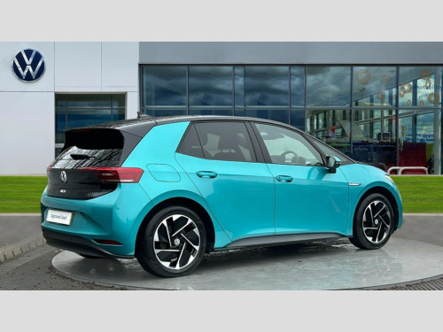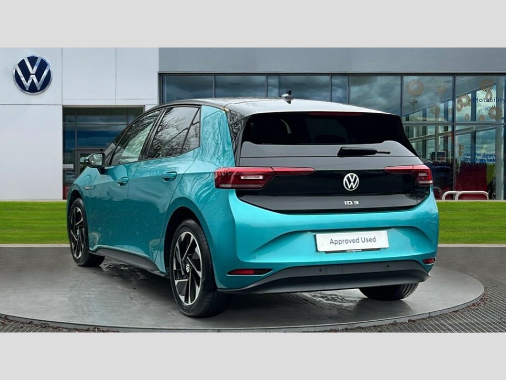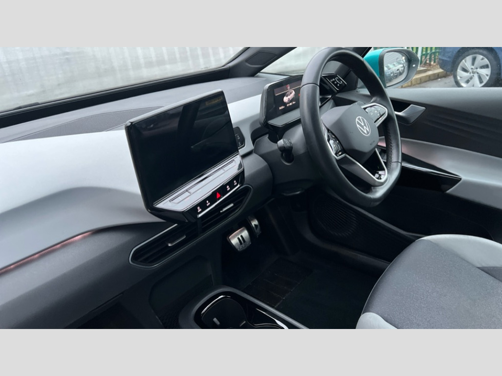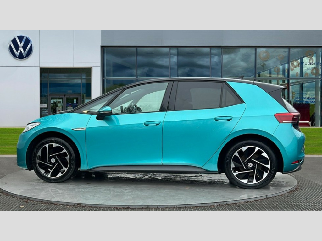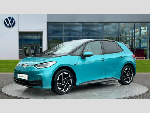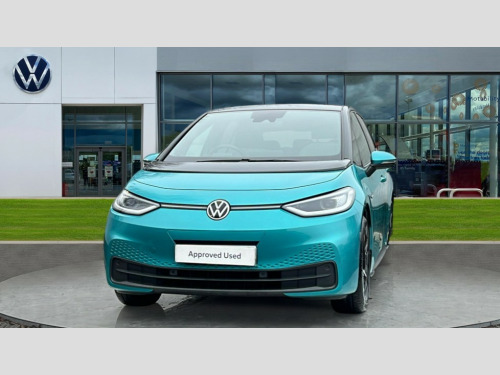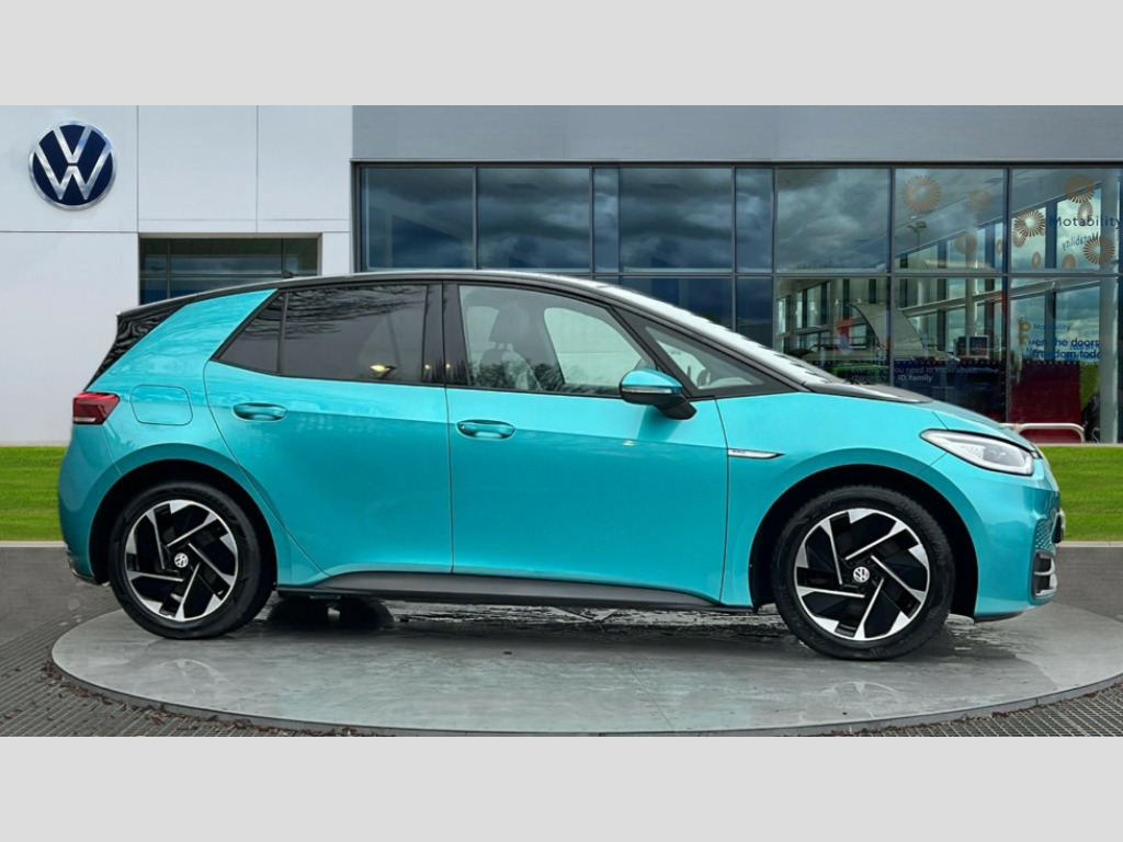 Volkswagen Id.3 107KW Family Pro 58kWh 5dr Auto 10" touch screen infotainment system, 5.3" Digital dashboard display, Adaptive cruise control including Front Assist, radar sensor controlled distance monitoring system, City emergency braking system,speed limiter, BLIS (Blind spot information system), Bluetooth connectivity, Car2X technology, Driver alert system, Driver profile selection with personalisation, Front and rear parking sensors, ID. Light, Lane assist, Natural voice control, Power assisted speed sensitive steering, Remote tailgate unlocking, Security and service (SOS buttons), Trip computer, Wireless app connect, Exterior e-sound, DAB Digital radio, Touch control, 3rd brake light, Body colour door handles, Body coloured bumpers, Body coloured door mirrors with intergrated indicators, Front and rear electric windows, Heated rear window, Rear side wing doors, Rear wiper, Separate LED daytime running lights which also perform the indicator function, 3 seat bench in 2nd row, Driver seat height adjust, Flow design/Art velour microfleece cloth upholstery, Folding rear seats, Front headrests, Isofix child seat anchor points, Pause and play pedals, Pockets and smartphone pockets in seats, Reach + rake adjustable steering column, Rear headrests, Single front passenger seat, Style seats, Assistance pack - ID.3, Comfort plus pack - ID.3, Design plus pack - ID.3, NCAP pack - ID.3, 3x3 point rear seat belts, Anti-lock braking system (ABS), Child locks on rear doors, Driver and passenger airbags, Electronic parking brake with auto hold, Electronic Stability Programme (ESP), Front and rear curtain airbags, Side airbags, Tyre pressure monitor, Alarm, Immobiliser, Remote central locking, Tyre mobility kit
