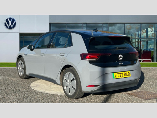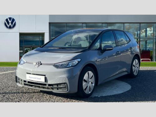 Volkswagen Id.3 107KW Life Pro 58kWh 5dr Auto 10" touch screen infotainment system, 5.3" Digital dashboard display, Adaptive cruise control including Front Assist, radar sensor controlled distance monitoring system, City emergency braking system,speed limiter, BLIS (Blind spot information system), Bluetooth connectivity, Car2X technology, Driver alert system, Driver profile selection with personalisation, E-call, Front and rear parking sensors, ID. Light, Lane assist, Natural voice control, Power assisted speed sensitive steering, Remote tailgate unlocking, Security and service (SOS buttons), Trip computer, Wireless app connect, Exterior e-sound, Mode 3 32-amp / 7.2kW charging cable for charging at public charge points, DAB Digital radio, Sound system, Touch control, All LED headlights with reflector technology, Black roof, Body colour door handles, Body coloured bumpers, Body coloured door mirrors with intergrated indicators, Front and rear electric windows, Heated rear window, LED 3rd brake lamp, Rear side wing doors, Rear wiper, Separate LED daytime running lights which also perform the indicator function, Variable front intermittent wipers, 1 Zone climatronic, 3 seat bench in 2nd row, Driver seat height adjust, Folding rear seats, Fragment design cloth upholstery, Front headrests, Isofix child seat anchor points, Multi-function steering wheel, Pause and play pedals, Pockets and smartphone pockets in seats, Reach + rake adjustable steering column, Rear headrests, Single front passenger seat, Standard seats, Comfort pack - ID.3, Infotainment pack with wireless smartphone charging - ID.3, NCAP pack - ID.3, 3x3 point rear seat belts, Anti-lock braking system (ABS), Child locks on rear doors, Driver and passenger airbags, Electronic parking brake with auto hold, Electronic Stability Programme (ESP), Front and rear curtain airbags, Front passenger airbag deactivation, Side airbags, Traction control with on/off button, Tyre pressure monitor, Alarm, Immobiliser, Keyless Go, Remote central locking, Tool kit, Tyre repair kit