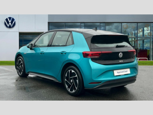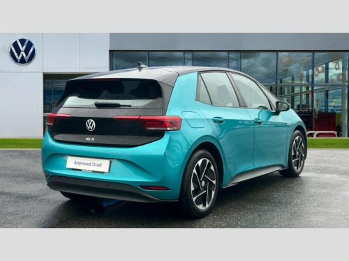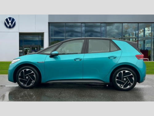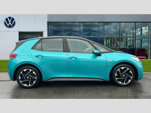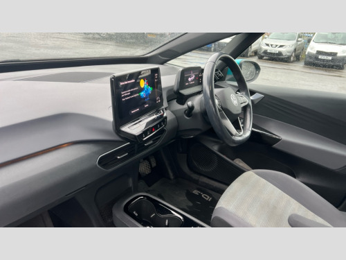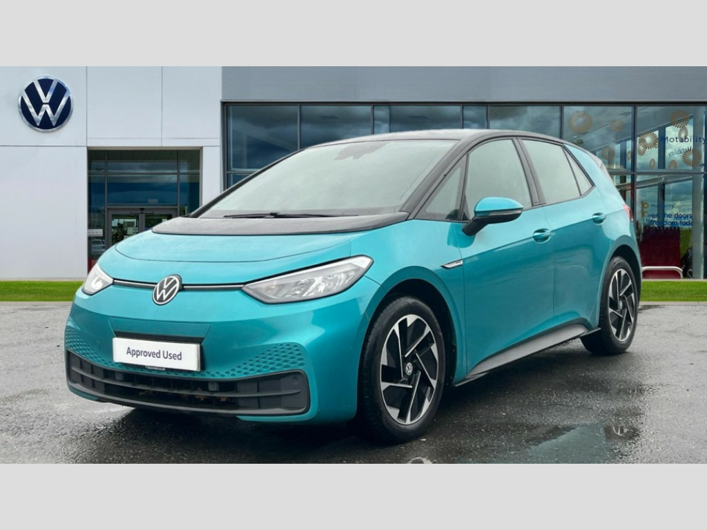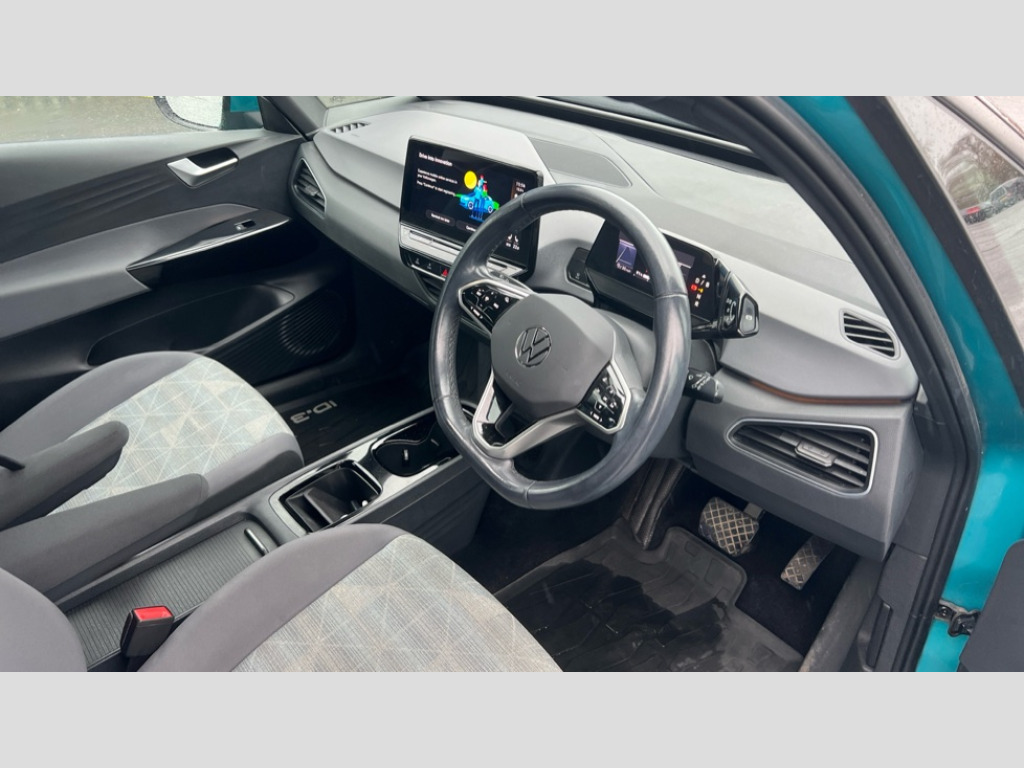 Volkswagen Id.3 107KW Life Pro 58kWh 5dr Auto 10" touch screen infotainment system, 5.3" Digital dashboard display, Adaptive cruise control including Front Assist, radar sensor controlled distance monitoring system, City emergency braking system,speed limiter, BLIS (Blind spot information system), Bluetooth connectivity, Car2X technology, Driver alert system, Driver profile selection with personalisation, Front and rear parking sensors, ID. Light, Lane assist, Natural voice control, Power assisted speed sensitive steering, Remote tailgate unlocking, Security and service (SOS buttons), Trip computer, Wireless app connect, Exterior e-sound, DAB Digital radio, Touch control, 3rd brake light, Body colour door handles, Body coloured bumpers, Body coloured door mirrors with intergrated indicators, Front and rear electric windows, Heated rear window, Rear side wing doors, Rear wiper, Separate LED daytime running lights which also perform the indicator function, 3 seat bench in 2nd row, Driver seat height adjust, Folding rear seats, Fragment design cloth upholstery, Front headrests, Isofix child seat anchor points, Pause and play pedals, Pockets and smartphone pockets in seats, Reach + rake adjustable steering column, Rear headrests, Single front passenger seat, Standard seats, Comfort pack - ID.3, NCAP pack - ID.3, 3x3 point rear seat belts, Anti-lock braking system (ABS), Child locks on rear doors, Driver and passenger airbags, Electronic parking brake with auto hold, Electronic Stability Programme (ESP), Front and rear curtain airbags, Side airbags, Tyre pressure monitor, Alarm, Immobiliser, Keyless Go, Remote central locking, Tyre mobility kit