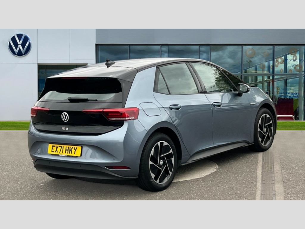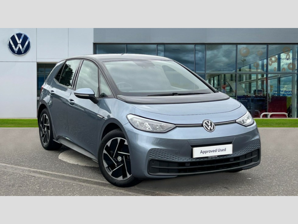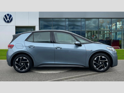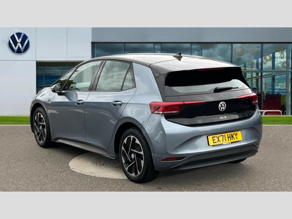 Volkswagen Id.3 110kW City Pure Performance 45kWh 5dr Auto 10" touch screen infotainment system, 5.3" Digital dashboard display, Adaptive cruise control including Front Assist, radar sensor controlled distance monitoring system, City emergency braking system,speed limiter, BLIS (Blind spot information system), Bluetooth connectivity, Car2X technology, Driver alert system, Driver profile selection with personalisation, Front and rear parking sensors, ID. Light, Lane assist, Natural voice control, Power assisted speed sensitive steering, Remote tailgate unlocking, Security and service (SOS buttons), Trip computer, Wireless app connect, Exterior e-sound, DAB Digital radio, Sound system, Touch control, All LED headlights with reflector technology, Black roof, Body colour door handles, Body coloured bumpers, Body coloured door mirrors with intergrated indicators, Front and rear electric windows, Heated rear window, Separate LED daytime running lights which also perform the indicator function, 1 Zone climatronic, 10 colour interior ambient lighting, Armrest integrated into the front seats, Artvelours cloth upholstery, Driver seat height adjust, Folding rear seats, Front headrests, Isofix child seat anchor points, Pause and play pedals, Pockets and smartphone pockets in seats, Reach + rake adjustable steering column, Rear bench seat with center armrest includes loading function, Rear headrests, Comfort pack - ID.3, Infotainment pack - ID.3, NCAP pack - ID.3, 3x3 point rear seat belts, Anti-lock braking system (ABS), Driver and passenger airbags, Electronic parking brake with auto hold, Electronic Stability Programme (ESP), Front and rear curtain airbags, Side airbags, Traction control, Tyre pressure monitor, Alarm, Immobiliser, Keyless Go, Remote central locking, Tyre mobility kit