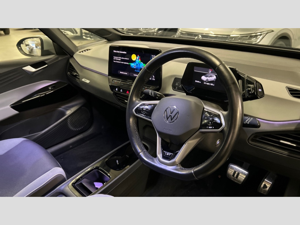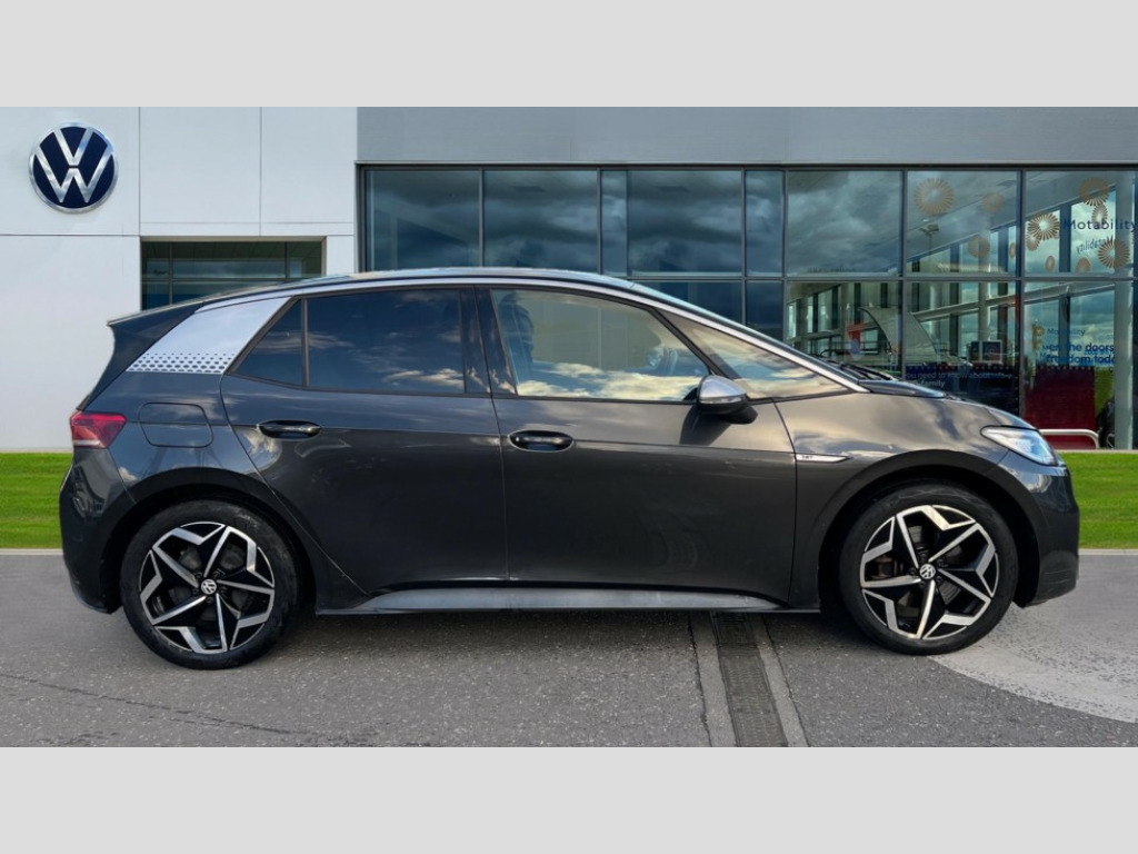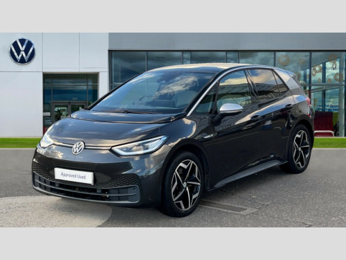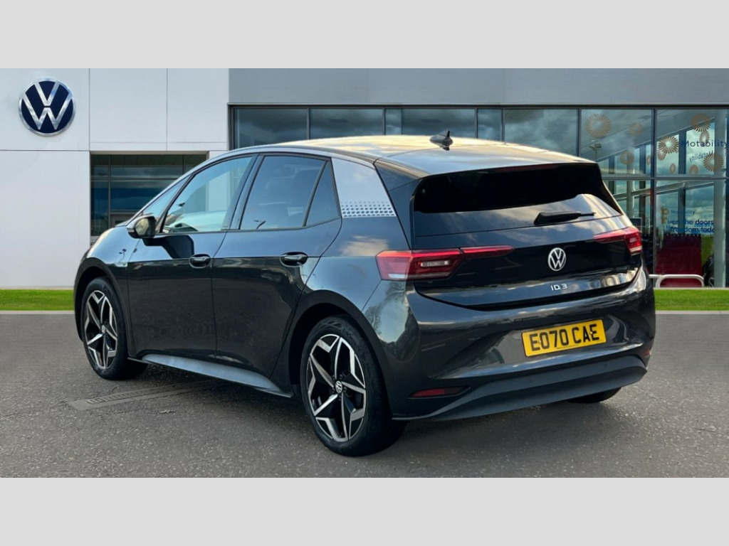 Volkswagen Id.3 150kW 1ST Edition Pro Power 58kWh 5dr Auto 10" touch screen infotainment system, 5.3" Digital dashboard display, Adaptive cruise control including Front Assist, radar sensor controlled distance monitoring system, City emergency braking system,speed limiter, BLIS (Blind spot information system), Bluetooth connectivity, Car2X technology, Driver alert system, Driver profile selection with personalisation, Front and rear parking sensors, ID. Light, Lane assist, Natural voice control, Power assisted speed sensitive steering, Remote tailgate unlocking, Security and service (SOS buttons), Trip computer, Wireless app connect, Exterior e-sound, Mode 3 32-amp / 7.2kW charging cable for charging at public charge points, DAB Digital radio, Sound system, Touch control, 1ST Edition styling, Black roof, Body colour door handles, Body coloured bumpers, Body coloured door mirrors with intergrated indicators, Front and rear electric windows, Heated door mirrors, Heated rear window, Separate LED daytime running lights which also perform the indicator function, 1St Edition interior styling, Armrest integrated into the front seats, Artvelours cloth upholstery, Driver seat height adjust, Folding rear seats, Front + rear carpet mats, Front headrests, Isofix child seat anchor points, Pause and play pedals, Pockets and smartphone pockets in seats, Reach + rake adjustable steering column, Rear bench seat with center armrest includes loading function, Rear headrests, Comfort pack - ID.3, Comfort plus pack - ID.3, Design pack - ID.3, Exterior silver decal style pack - ID.3, Infotainment pack - ID.3, NCAP pack - ID.3, 3x3 point rear seat belts, Anti-lock braking system (ABS), Driver and passenger airbags, Electronic parking brake with auto hold, Electronic Stability Programme (ESP), Front and rear curtain airbags, Side airbags, Traction control, Tyre pressure monitor, Alarm, Immobiliser, Keyless Go, Remote central locking, 19" Andoya machined alloy wheel with winter tires, Tyre mobility kit