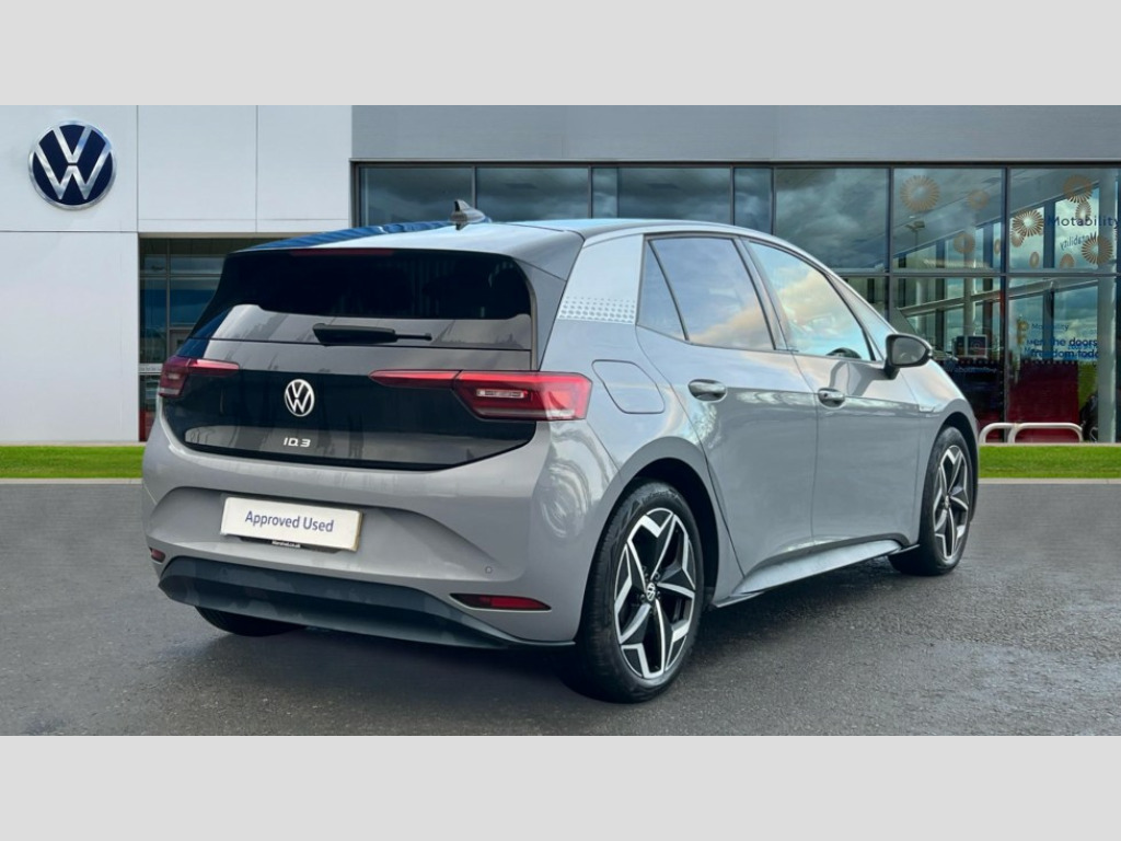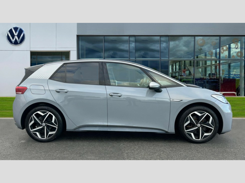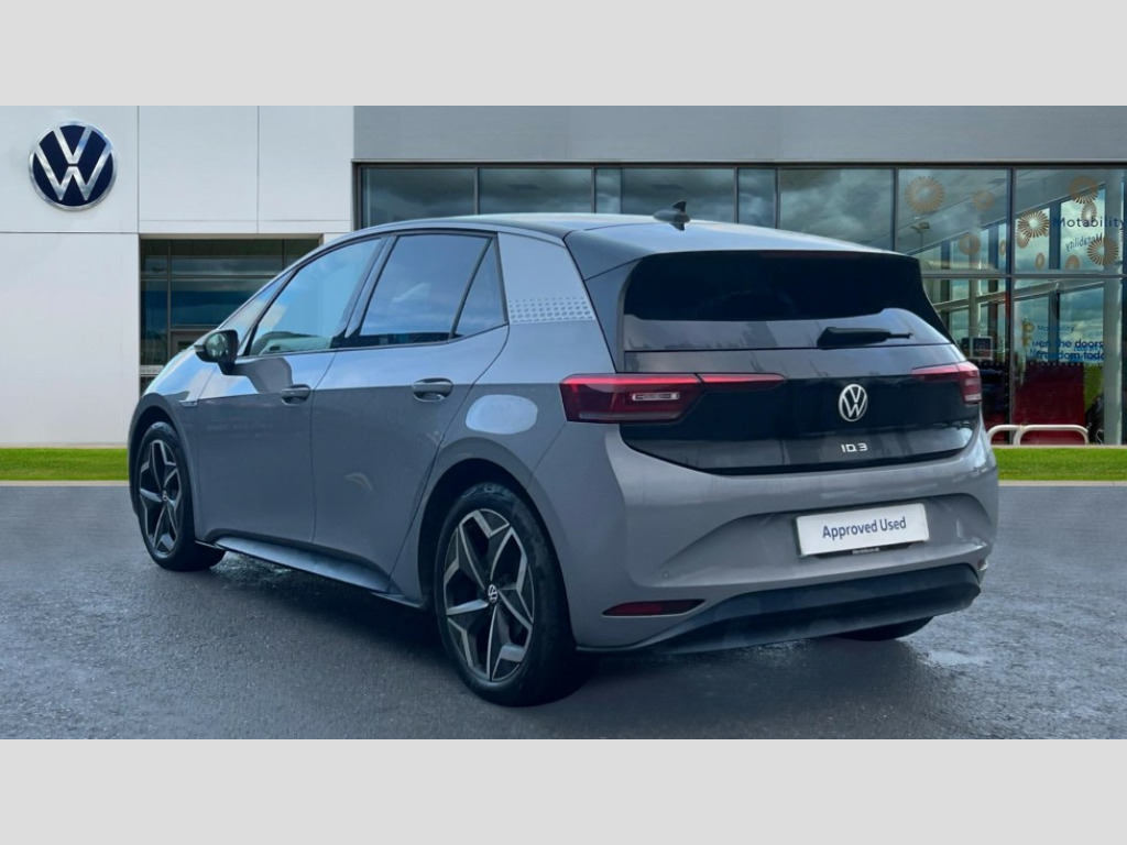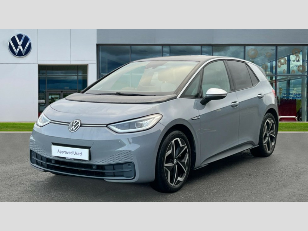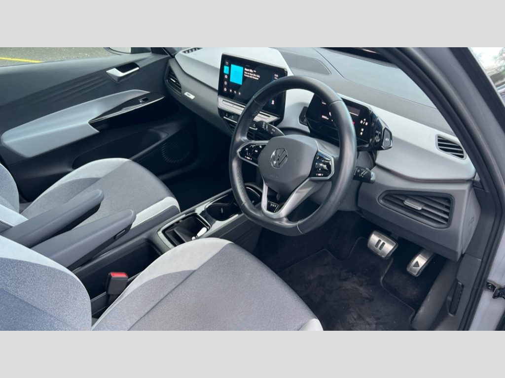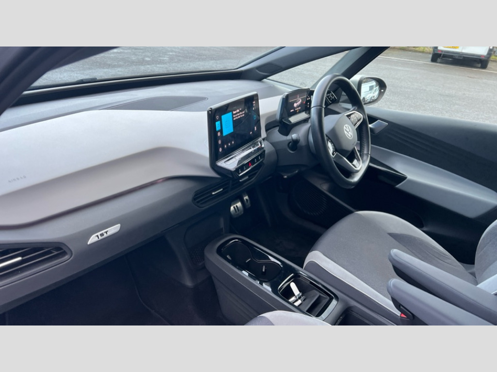 Volkswagen Id.3 150kW 1ST Edition Pro Power 58kWh 5dr Auto 10" touch screen infotainment system, 5.3" Digital dashboard display, Adaptive cruise control including Front Assist, radar sensor controlled distance monitoring system, City emergency braking system,speed limiter, BLIS (Blind spot information system), Bluetooth connectivity, Car2X technology, Driver alert system, Driver profile selection with personalisation, Front and rear parking sensors, ID. Light, Lane assist, Natural voice control, Power assisted speed sensitive steering, Remote tailgate unlocking, Security and service (SOS buttons), Trip computer, Wireless app connect, Exterior e-sound, Mode 3 32-amp / 7.2kW charging cable for charging at public charge points, DAB Digital radio, Sound system, Touch control, 1ST Edition styling, Black roof, Body colour door handles, Body coloured bumpers, Body coloured door mirrors with intergrated indicators, Front and rear electric windows, Heated door mirrors, Heated rear window, Separate LED daytime running lights which also perform the indicator function, 1St Edition interior styling, Armrest integrated into the front seats, Artvelours cloth upholstery, Driver seat height adjust, Folding rear seats, Front + rear carpet mats, Front headrests, Isofix child seat anchor points, Pause and play pedals, Pockets and smartphone pockets in seats, Reach + rake adjustable steering column, Rear bench seat with center armrest includes loading function, Rear headrests, Comfort pack - ID.3, Comfort plus pack - ID.3, Design pack - ID.3, Exterior silver decal style pack - ID.3, Infotainment pack - ID.3, NCAP pack - ID.3, 3x3 point rear seat belts, Anti-lock braking system (ABS), Driver and passenger airbags, Electronic parking brake with auto hold, Electronic Stability Programme (ESP), Front and rear curtain airbags, Side airbags, Traction control, Tyre pressure monitor, Alarm, Immobiliser, Keyless Go, Remote central locking, 19" Andoya machined alloy wheel with winter tires, Tyre mobility kit
