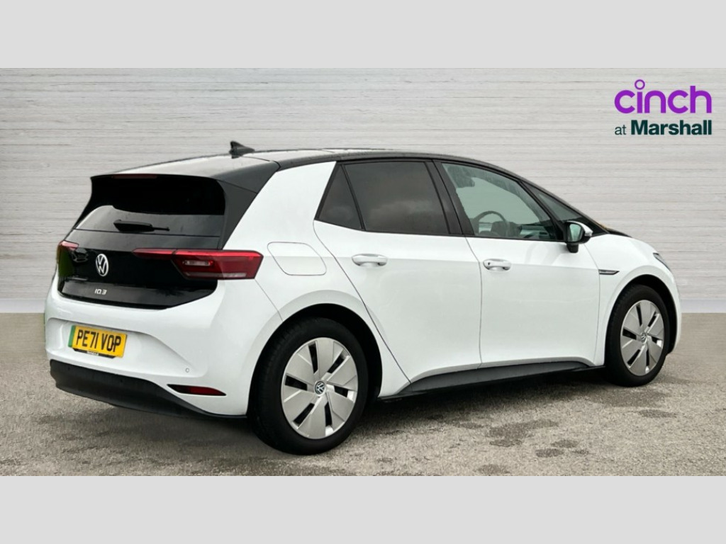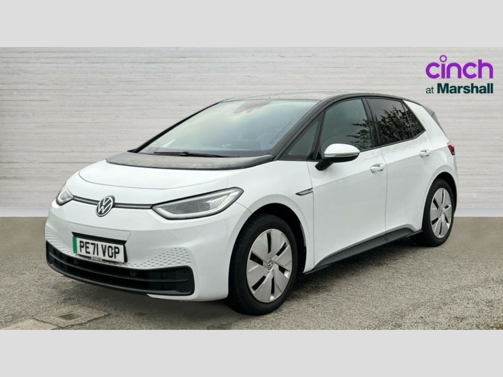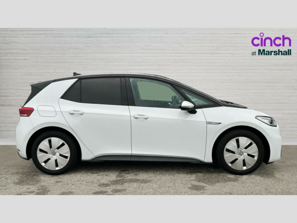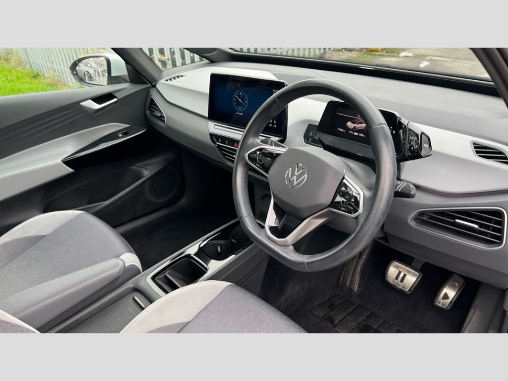 Volkswagen Id.3 150kW Family Pro Performance 58kWh 5dr Auto 10" touch screen infotainment system, 5.3" Digital dashboard display, Adaptive cruise control including Front Assist, radar sensor controlled distance monitoring system, City emergency braking system,speed limiter, BLIS (Blind spot information system), Bluetooth connectivity, Car2X technology, Driver alert system, Driver profile selection with personalisation, Front and rear parking sensors, ID. Light, Lane assist, Natural voice control, Power assisted speed sensitive steering, Remote tailgate unlocking, Security and service (SOS buttons), Trip computer, Wireless app connect, Exterior e-sound, DAB Digital radio, Touch control, 3rd brake light, Body colour door handles, Body coloured bumpers, Body coloured door mirrors with intergrated indicators, Front and rear electric windows, Heated rear window, Rear side wing doors, Rear wiper, Separate LED daytime running lights which also perform the indicator function, 3 seat bench in 2nd row, Driver seat height adjust, Flow design/Art velour microfleece cloth upholstery, Folding rear seats, Front headrests, Isofix child seat anchor points, Pause and play pedals, Pockets and smartphone pockets in seats, Reach + rake adjustable steering column, Rear headrests, Single front passenger seat, Style seats, Assistance pack - ID.3, Comfort plus pack - ID.3, Design plus pack - ID.3, NCAP pack - ID.3, 3x3 point rear seat belts, Anti-lock braking system (ABS), Child locks on rear doors, Driver and passenger airbags, Electronic parking brake with auto hold, Electronic Stability Programme (ESP), Front and rear curtain airbags, Side airbags, Tyre pressure monitor, Alarm, Immobiliser, Remote central locking, Tyre mobility kit