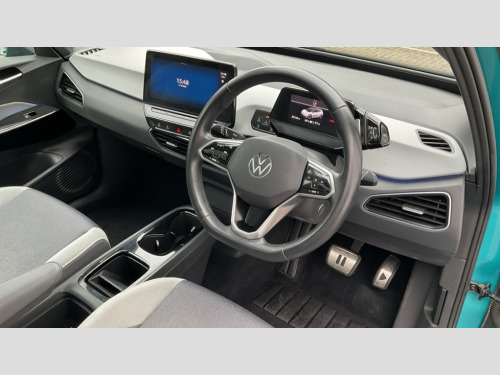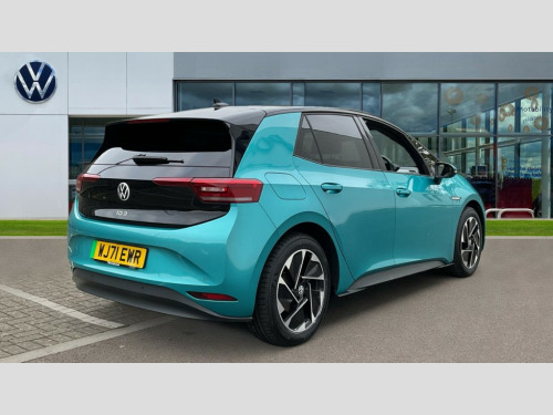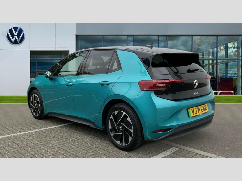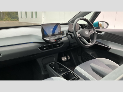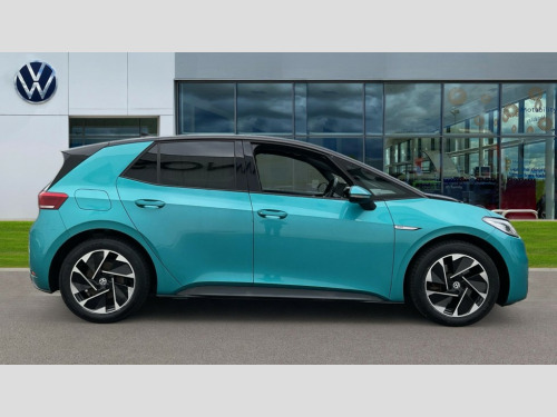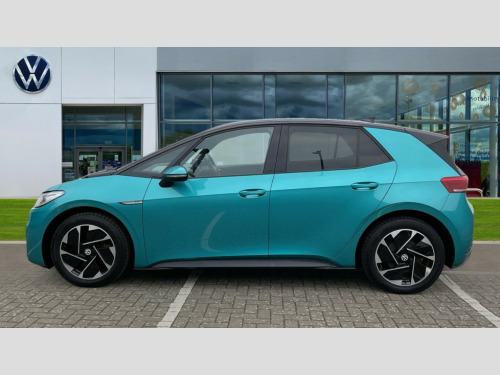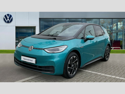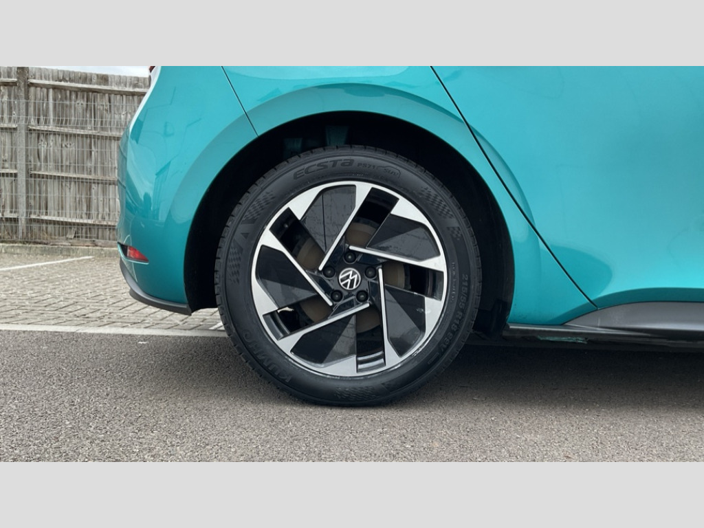 Volkswagen Id.3 150kW Family Pro Performance 58kWh 5dr Auto 10" touch screen infotainment system, 5.3" Digital dashboard display, Adaptive cruise control including Front Assist, radar sensor controlled distance monitoring system, City emergency braking system,speed limiter, BLIS (Blind spot information system), Bluetooth connectivity, Car2X technology, Driver alert system, Driver profile selection with personalisation, Front and rear parking sensors, ID. Light, Lane assist, Natural voice control, Power assisted speed sensitive steering, Remote tailgate unlocking, Security and service (SOS buttons), Trip computer, Wireless app connect, Exterior e-sound, DAB Digital radio, Touch control, 3rd brake light, Body colour door handles, Body coloured bumpers, Body coloured door mirrors with intergrated indicators, Front and rear electric windows, Heated rear window, Rear side wing doors, Rear wiper, Separate LED daytime running lights which also perform the indicator function, 3 seat bench in 2nd row, Driver seat height adjust, Flow design/Art velour microfleece cloth upholstery, Folding rear seats, Front headrests, Isofix child seat anchor points, Pause and play pedals, Pockets and smartphone pockets in seats, Reach + rake adjustable steering column, Rear headrests, Single front passenger seat, Style seats, Assistance pack - ID.3, Comfort plus pack - ID.3, Design plus pack - ID.3, NCAP pack - ID.3, 3x3 point rear seat belts, Anti-lock braking system (ABS), Child locks on rear doors, Driver and passenger airbags, Electronic parking brake with auto hold, Electronic Stability Programme (ESP), Front and rear curtain airbags, Side airbags, Tyre pressure monitor, Alarm, Immobiliser, Remote central locking, Tyre mobility kit