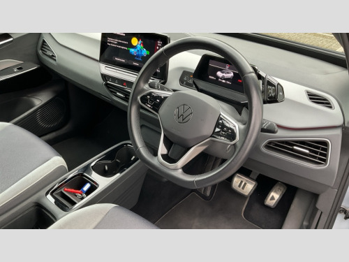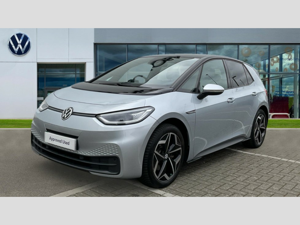 Volkswagen Id.3 150kW Family Pro Performance 58kWh 5dr Auto 10" touch screen infotainment system, 5.3" Digital dashboard display, Adaptive cruise control including Front Assist, radar sensor controlled distance monitoring system, City emergency braking system,speed limiter, BLIS (Blind spot information system), Bluetooth connectivity, Car2X technology, Driver alert system, Driver profile selection with personalisation, E-call, Front and rear parking sensors, ID. Light, Lane assist, Natural voice control, Power assisted speed sensitive steering, Remote tailgate unlocking, Security and service (SOS buttons), Trip computer, Wireless app connect, Exterior e-sound, Mode 3 32-amp / 7.2kW charging cable for charging at public charge points, DAB Digital radio, Sound system, Touch control, Body colour door handles, Body coloured bumpers, Body coloured door mirrors with intergrated indicators, Front and rear electric windows, Heated rear window, LED 3rd brake lamp, Rear side wing doors, Rear wiper, Separate LED daytime running lights which also perform the indicator function, Variable front intermittent wipers, 3 seat bench in 2nd row, Flow design/Art velour microfleece cloth upholstery, Folding rear seats, Front headrests, Isofix child seat anchor points, Leather steering wheel, Multi-function steering wheel, Pause and play pedals, Pockets and smartphone pockets in seats, Reach + rake adjustable steering column, Rear headrests, Single front passenger seat, Style seats, Assistance pack - ID.3, Comfort plus pack - ID.3, Design plus pack - ID.3, Infotainment pack with wireless smartphone charging - ID.3, Interior style pack - ID.3, NCAP pack - ID.3, 3x3 point rear seat belts, Anti-lock braking system (ABS), Child locks on rear doors, Driver and passenger airbags, Electronic parking brake with auto hold, Electronic Stability Programme (ESP), Front and rear curtain airbags, Front passenger airbag deactivation, Side airbags, Traction control with on/off button, Tyre pressure monitor, Alarm, Immobiliser, Remote central locking, Tool kit, Tyre repair kit