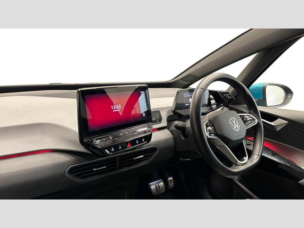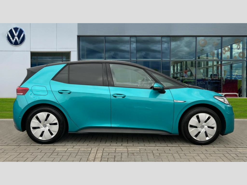 Volkswagen Id.3 150kW Family Pro Performance 58kWh 5dr Auto 10" touch screen infotainment system, 5.3" Digital dashboard display, Adaptive cruise control including Front Assist, radar sensor controlled distance monitoring system, City emergency braking system,speed limiter, BLIS (Blind spot information system), Bluetooth connectivity, Car2X technology, Driver alert system, Driver profile selection with personalisation, E-call, Front and rear parking sensors, ID. Light, Lane assist, Natural voice control, Power assisted speed sensitive steering, Remote tailgate unlocking, Security and service (SOS buttons), Trip computer, Wireless app connect, Exterior e-sound, Mode 3 32-amp / 7.2kW charging cable for charging at public charge points, DAB Digital radio, Sound system, Touch control, Body colour door handles, Body coloured bumpers, Body coloured door mirrors with intergrated indicators, Front and rear electric windows, Heated rear window, LED 3rd brake lamp, Rear side wing doors, Rear wiper, Separate LED daytime running lights which also perform the indicator function, Variable front intermittent wipers, 3 seat bench in 2nd row, Flow design/Art velour microfleece cloth upholstery, Folding rear seats, Front headrests, Isofix child seat anchor points, Leather steering wheel, Multi-function steering wheel, Pause and play pedals, Pockets and smartphone pockets in seats, Reach + rake adjustable steering column, Rear headrests, Single front passenger seat, Style seats, Assistance pack - ID.3, Comfort plus pack - ID.3, Design plus pack - ID.3, Infotainment pack with wireless smartphone charging - ID.3, Interior style pack - ID.3, NCAP pack - ID.3, 3x3 point rear seat belts, Anti-lock braking system (ABS), Child locks on rear doors, Driver and passenger airbags, Electronic parking brake with auto hold, Electronic Stability Programme (ESP), Front and rear curtain airbags, Front passenger airbag deactivation, Side airbags, Traction control with on/off button, Tyre pressure monitor, Alarm, Immobiliser, Remote central locking, Tool kit, Tyre repair kit