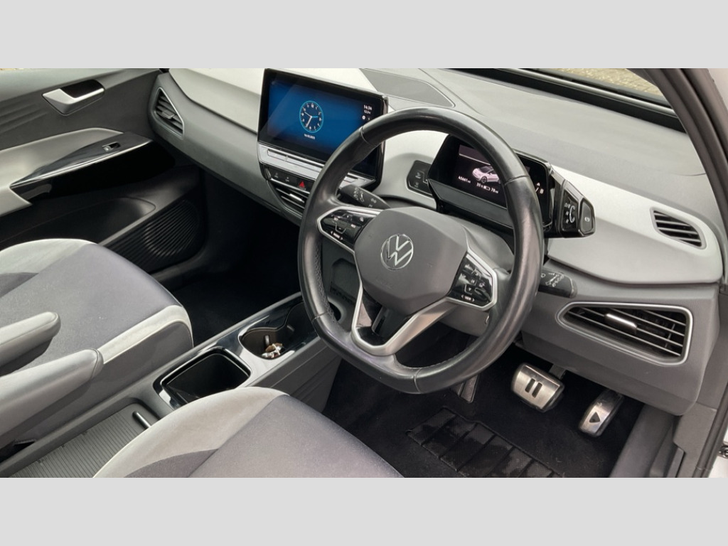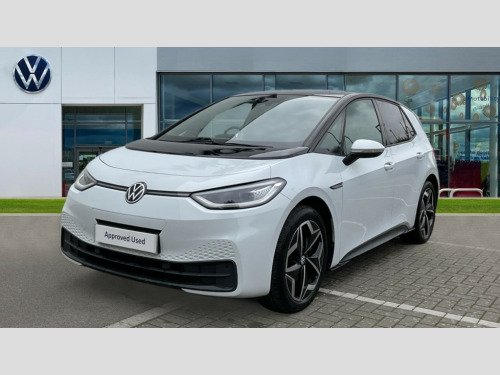 Volkswagen Id.3 150kW Family Pro Performance 58kWh 5dr Auto 10" touch screen infotainment system, 5.3" Digital dashboard display, Adaptive cruise control including Front Assist, radar sensor controlled distance monitoring system, City emergency braking system,speed limiter, BLIS (Blind spot information system), Bluetooth connectivity, Car2X technology, Driver alert system, Driver profile selection with personalisation, E-call, Front and rear parking sensors, ID. Light, Lane assist, Natural voice control, Remote tailgate unlocking, Security and service (SOS buttons), Trip computer, Wireless app connect, Exterior e-sound, DAB Digital radio, Touch control, 3rd brake light, Body colour door handles, Body coloured bumpers, Body coloured door mirrors with intergrated indicators, Front and rear electric windows, Heated rear window, Rear side wing doors, Rear wiper, Separate LED daytime running lights which also perform the indicator function, 3 seat bench in 2nd row, Flow design/Art velour microfleece cloth upholstery, Folding rear seats, Front headrests, Isofix child seat anchor points, Pause and play pedals, Pockets and smartphone pockets in seats, Reach + rake adjustable steering column, Rear headrests, Single front passenger seat, Style seats, Assistance pack - ID.3, Comfort plus pack - ID.3, Design plus pack - ID.3, NCAP pack - ID.3, 3x3 point rear seat belts, Anti-lock braking system (ABS), Child locks on rear doors, Driver and passenger airbags, Electronic parking brake with auto hold, Electronic Stability Programme (ESP), Front and rear curtain airbags, Side airbags, Traction control with on/off button, Tyre pressure monitor, Alarm, Immobiliser, Remote central locking, Tool kit, Tyre repair kit