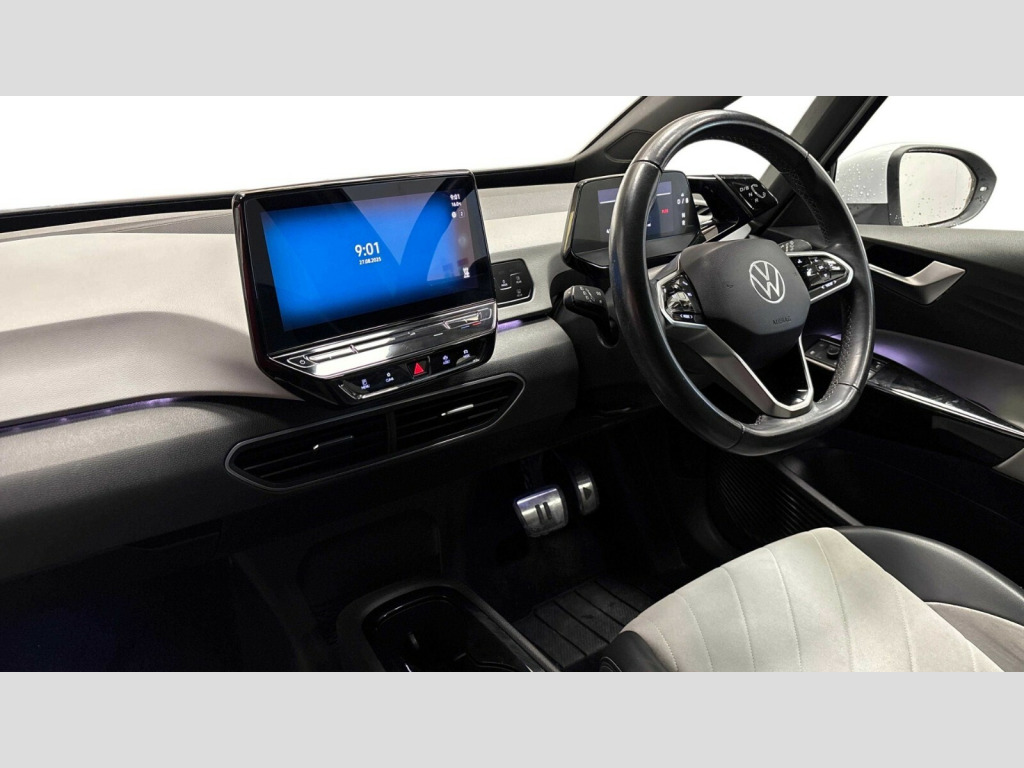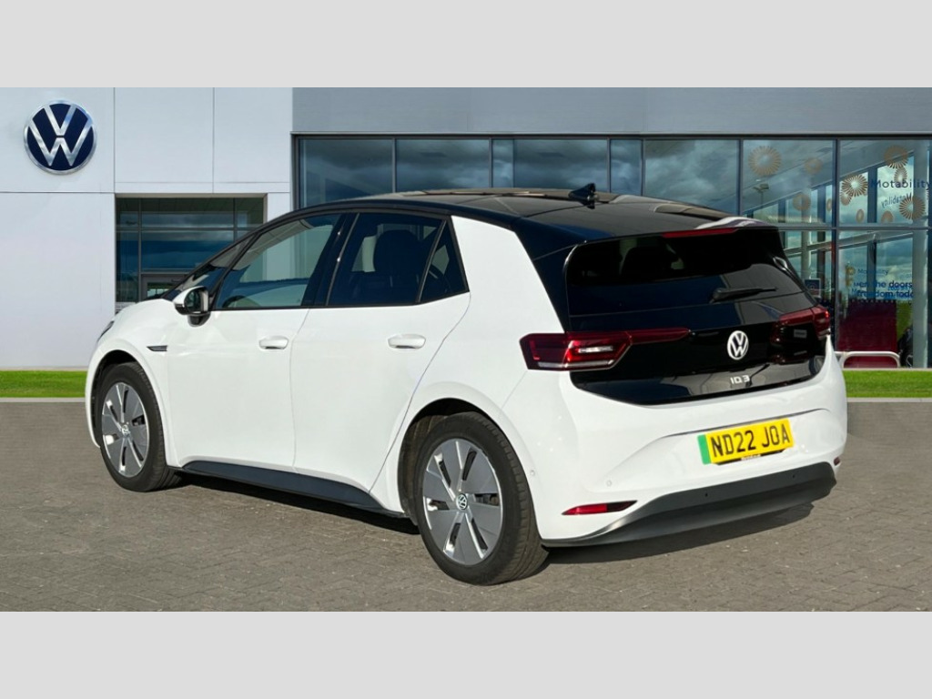 Volkswagen Id.3 150kW Family Pro Performance 58kWh 5dr Auto 10" touch screen infotainment system, 5.3" Digital dashboard display, Adaptive cruise control including Front Assist, radar sensor controlled distance monitoring system, City emergency braking system,speed limiter, BLIS (Blind spot information system), Bluetooth connectivity, Car2X technology, Driver alert system, Driver profile selection with personalisation, E-call, Front and rear parking sensors, ID. Light, Lane assist, Natural voice control, Power assisted speed sensitive steering, Remote tailgate unlocking, Security and service (SOS buttons), Trip computer, Wireless app connect, Exterior e-sound, Mode 3 32-amp / 7.2kW charging cable for charging at public charge points, DAB Digital radio, Sound system, Touch control, Body colour door handles, Body coloured bumpers, Body coloured door mirrors with intergrated indicators, Front and rear electric windows, Heated rear window, LED 3rd brake lamp, Rear side wing doors, Rear wiper, Separate LED daytime running lights which also perform the indicator function, Variable front intermittent wipers, 3 seat bench in 2nd row, Flow design/Art velour microfleece cloth upholstery, Folding rear seats, Front headrests, Isofix child seat anchor points, Leather steering wheel, Multi-function steering wheel, Pause and play pedals, Pockets and smartphone pockets in seats, Reach + rake adjustable steering column, Rear headrests, Single front passenger seat, Style seats, Assistance pack - ID.3, Comfort plus pack - ID.3, Design plus pack - ID.3, Infotainment pack with wireless smartphone charging - ID.3, Interior style pack - ID.3, NCAP pack - ID.3, 3x3 point rear seat belts, Anti-lock braking system (ABS), Child locks on rear doors, Driver and passenger airbags, Electronic parking brake with auto hold, Electronic Stability Programme (ESP), Front and rear curtain airbags, Front passenger airbag deactivation, Side airbags, Traction control with on/off button, Tyre pressure monitor, Alarm, Immobiliser, Remote central locking, Tool kit, Tyre repair kit