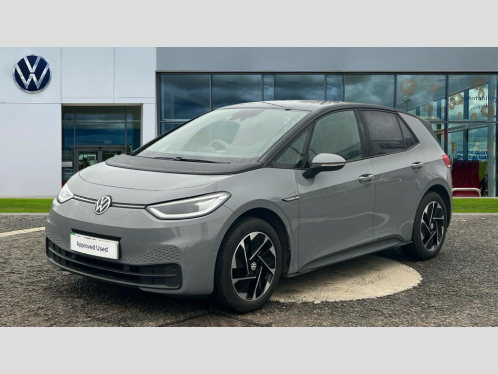 Volkswagen Id.3 150kW Family Pro Performance 58kWh 5dr Auto 10" touch screen infotainment system, 5.3" Digital dashboard display, Adaptive cruise control including Front Assist, radar sensor controlled distance monitoring system, City emergency braking system,speed limiter, BLIS (Blind spot information system), Bluetooth connectivity, Car2X technology, Driver alert system, Driver profile selection with personalisation, E-call, Front and rear parking sensors, ID. Light, Lane assist, Natural voice control, Power assisted speed sensitive steering, Remote tailgate unlocking, Security and service (SOS buttons), Trip computer, Wireless app connect, Exterior e-sound, Mode 3 32-amp / 7.2kW charging cable for charging at public charge points, DAB Digital radio, Sound system, Touch control, Body colour door handles, Body coloured bumpers, Body coloured door mirrors with intergrated indicators, Front and rear electric windows, Heated rear window, LED 3rd brake lamp, Rear side wing doors, Rear wiper, Separate LED daytime running lights which also perform the indicator function, Variable front intermittent wipers, 3 seat bench in 2nd row, Flow design/Art velour microfleece cloth upholstery, Folding rear seats, Front headrests, Isofix child seat anchor points, Leather steering wheel, Multi-function steering wheel, Pause and play pedals, Pockets and smartphone pockets in seats, Reach + rake adjustable steering column, Rear headrests, Single front passenger seat, Style seats, Assistance pack - ID.3, Comfort plus pack - ID.3, Design plus pack - ID.3, Infotainment pack with wireless smartphone charging - ID.3, Interior style pack - ID.3, NCAP pack - ID.3, 3x3 point rear seat belts, Anti-lock braking system (ABS), Child locks on rear doors, Driver and passenger airbags, Electronic parking brake with auto hold, Electronic Stability Programme (ESP), Front and rear curtain airbags, Front passenger airbag deactivation, Side airbags, Traction control with on/off button, Tyre pressure monitor, Alarm, Immobiliser, Remote central locking, Tool kit, Tyre repair kit