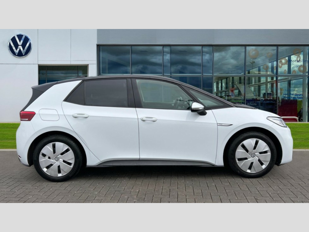 Volkswagen Id.3 150kW Family Pro Performance 58kWh 5dr Auto 10" touch screen infotainment system, 5.3" Digital dashboard display, Adaptive cruise control including Front Assist, radar sensor controlled distance monitoring system, City emergency braking system,speed limiter, BLIS (Blind spot information system), Bluetooth connectivity, Car2X technology, Driver alert system, Driver profile selection with personalisation, E-call, Front and rear parking sensors, ID. Light, Lane assist, Natural voice control, Power assisted speed sensitive steering, Remote tailgate unlocking, Security and service (SOS buttons), Trip computer, Wireless app connect, Exterior e-sound, Mode 3 32-amp / 7.2kW charging cable for charging at public charge points, DAB Digital radio, Sound system, Touch control, Body colour door handles, Body coloured bumpers, Body coloured door mirrors with intergrated indicators, Front and rear electric windows, Heated rear window, LED 3rd brake lamp, Rear side wing doors, Rear wiper, Separate LED daytime running lights which also perform the indicator function, Variable front intermittent wipers, 3 seat bench in 2nd row, Flow design/Art velour microfleece cloth upholstery, Folding rear seats, Front headrests, Isofix child seat anchor points, Leather steering wheel, Multi-function steering wheel, Pause and play pedals, Pockets and smartphone pockets in seats, Reach + rake adjustable steering column, Rear headrests, Single front passenger seat, Style seats, Assistance pack - ID.3, Comfort plus pack - ID.3, Design plus pack - ID.3, Infotainment pack with wireless smartphone charging - ID.3, Interior style pack - ID.3, NCAP pack - ID.3, 3x3 point rear seat belts, Anti-lock braking system (ABS), Child locks on rear doors, Driver and passenger airbags, Electronic parking brake with auto hold, Electronic Stability Programme (ESP), Front and rear curtain airbags, Front passenger airbag deactivation, Side airbags, Traction control with on/off button, Tyre pressure monitor, Alarm, Immobiliser, Remote central locking, Tool kit, Tyre repair kit