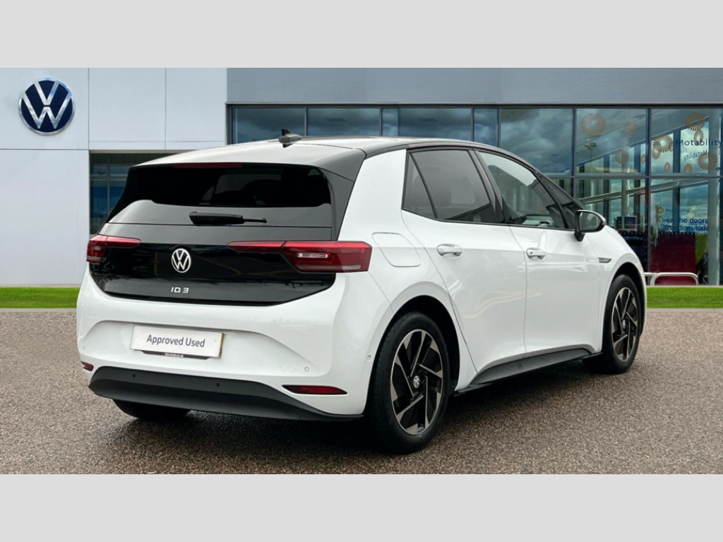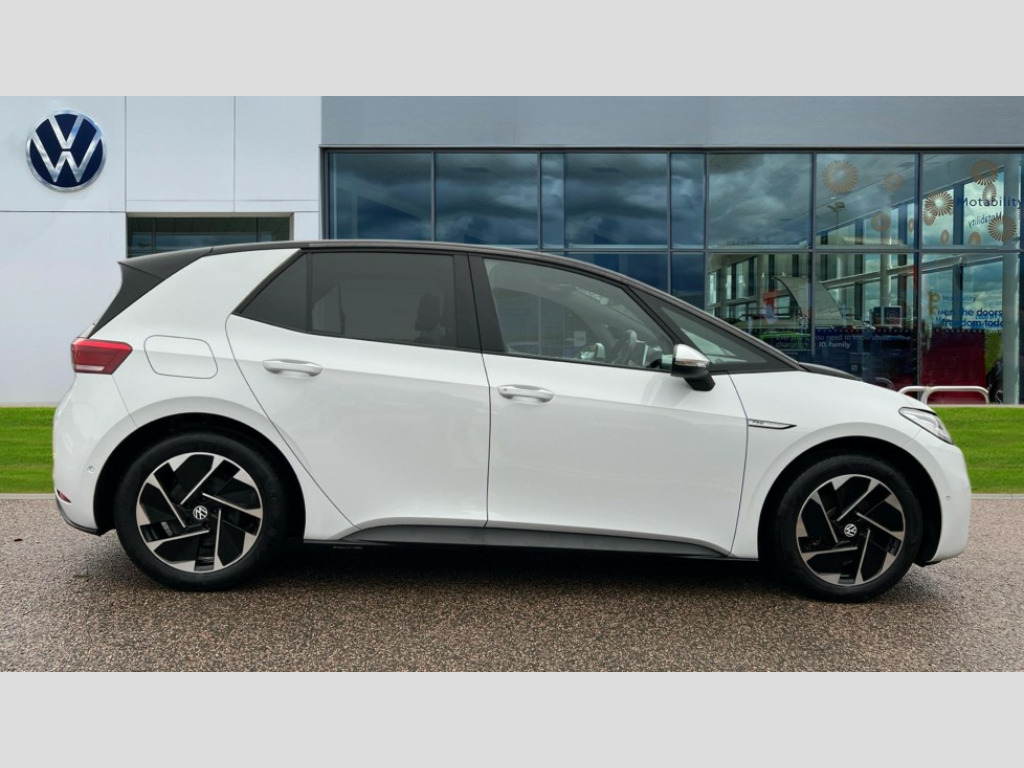 Give us a call and we guarantee to provide you with the best experience possible when buying your next vehicle. 10" touch screen infotainment system, 5.3" Digital dashboard display, Adaptive cruise control including Front Assist, radar sensor controlled distance monitoring system, City emergency braking system,speed limiter, BLIS (Blind spot information system), Bluetooth connectivity, Car2X technology, Driver alert system, Driver profile selection with personalisation, E-call, Front and rear parking sensors, ID. Light, Lane assist, Natural voice control, Power assisted speed sensitive steering, Remote tailgate unlocking, Security and service (SOS buttons), Trip computer, Wireless app connect, Exterior e-sound, Mode 3 32-amp / 7.2kW charging cable for charging at public charge points, DAB Digital radio, Sound system, Touch control, Body colour door handles, Body coloured bumpers, Body coloured door mirrors with intergrated indicators, Front and rear electric windows, Heated rear window, LED 3rd brake lamp, Rear side wing doors, Rear wiper, Separate LED daytime running lights which also perform the indicator function, Variable front intermittent wipers, 3 seat bench in 2nd row, Flow design/Art velour microfleece cloth upholstery, Folding rear seats, Front headrests, Isofix child seat anchor points, Leather steering wheel, Multi-function steering wheel, Pause and play pedals, Pockets and smartphone pockets in seats, Reach + rake adjustable steering column, Rear headrests, Single front passenger seat, Style seats, Assistance pack - ID.3, Comfort plus pack - ID.3, Design plus pack - ID.3, Infotainment pack with wireless smartphone charging - ID.3, Interior style pack - ID.3, NCAP pack - ID.3, 3x3 point rear seat belts, Anti-lock braking system (ABS), Child locks on rear doors, Driver and passenger airbags, Electronic parking brake with auto hold, Electronic Stability Programme (ESP), Front and rear curtain airbags, Front passenger airbag deactivation, Side airbags, Traction control with on/off button, Tyre pressure monitor, Alarm, Immobiliser, Remote central locking, Tool kit, Tyre repair kit