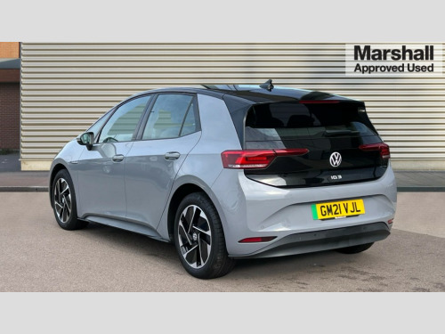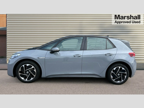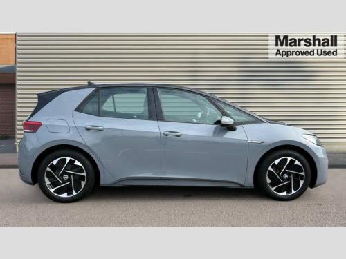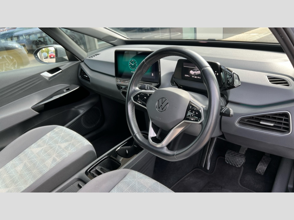 Volkswagen Id.3 150kW Life Pro Performance 58kWh 5dr Auto 10" touch screen infotainment system, 5.3" Digital dashboard display, Adaptive cruise control including Front Assist, radar sensor controlled distance monitoring system, City emergency braking system,speed limiter, BLIS (Blind spot information system), Bluetooth connectivity, Car2X technology, Driver alert system, Driver profile selection with personalisation, Front and rear parking sensors, ID. Light, Lane assist, Natural voice control, Power assisted speed sensitive steering, Remote tailgate unlocking, Security and service (SOS buttons), Trip computer, Wireless app connect, Exterior e-sound, DAB Digital radio, Touch control, 3rd brake light, Body colour door handles, Body coloured bumpers, Body coloured door mirrors with intergrated indicators, Front and rear electric windows, Heated rear window, Rain sensor, Rear side wing doors, Rear wiper, Separate LED daytime running lights which also perform the indicator function, 3 seat bench in 2nd row, Driver seat height adjust, Folding rear seats, Fragment design cloth upholstery, Front headrests, Isofix child seat anchor points, Pause and play pedals, Pockets and smartphone pockets in seats, Reach + rake adjustable steering column, Rear headrests, Single front passenger seat, Standard seats, Comfort pack - ID.3, NCAP pack - ID.3, 3x3 point rear seat belts, Anti-lock braking system (ABS), Child locks on rear doors, Driver and passenger airbags, Electronic parking brake with auto hold, Electronic Stability Programme (ESP), Front and rear curtain airbags, Side airbags, Tyre pressure monitor, Alarm, Immobiliser, Keyless Go, Remote central locking, Tyre mobility kit