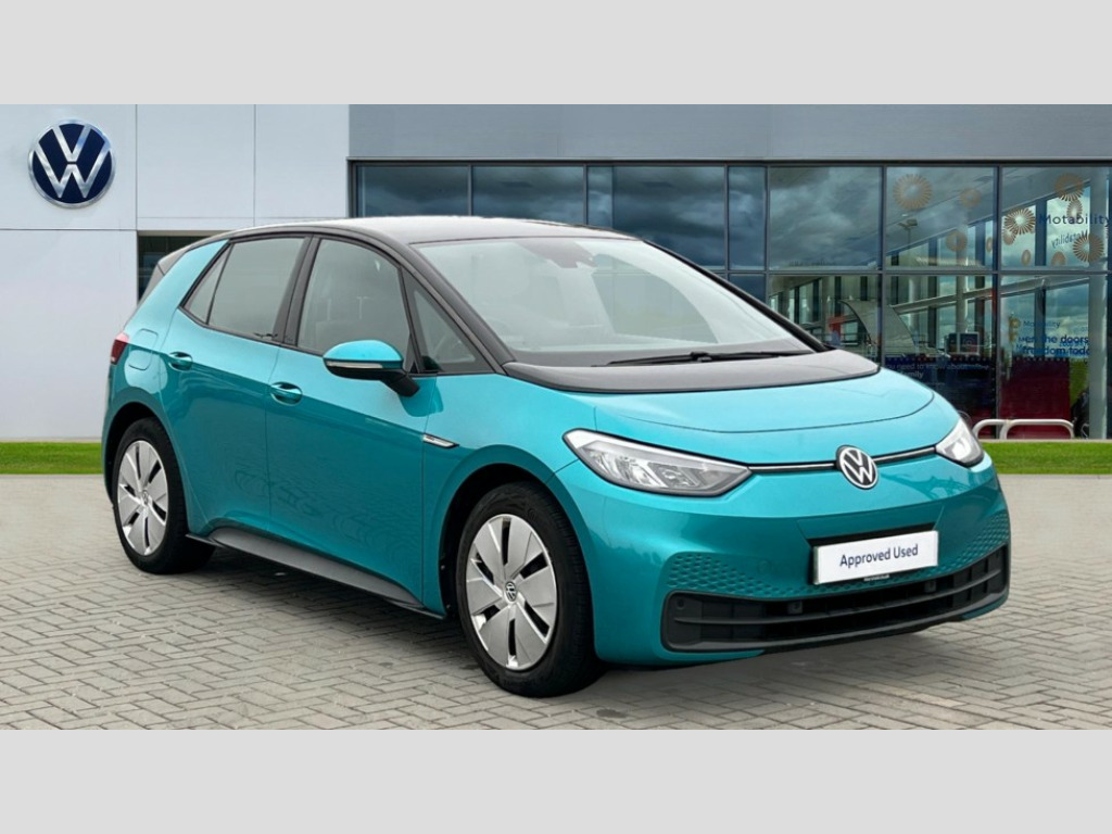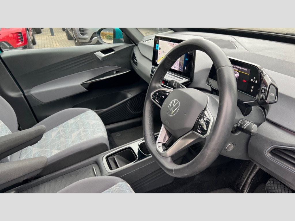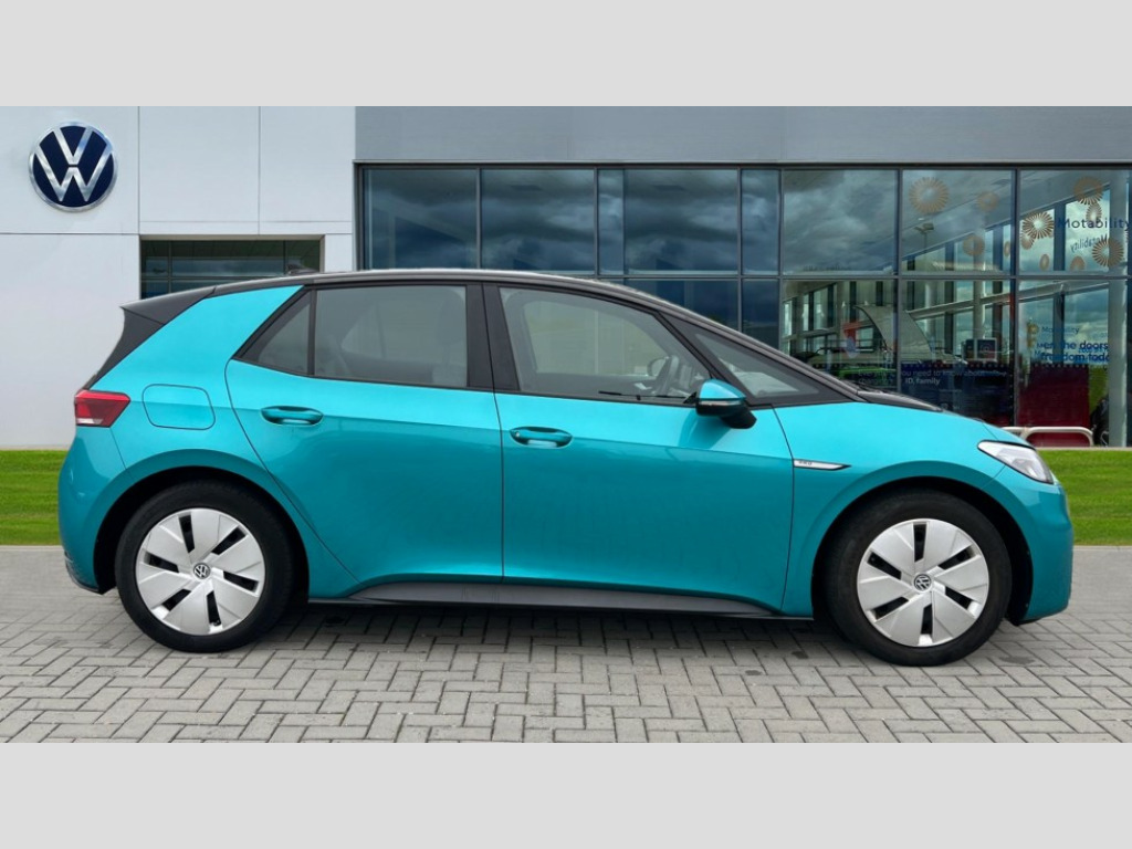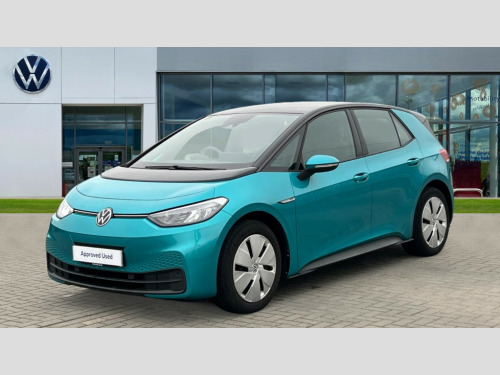 Volkswagen Id.3 150kW Life Pro Performance 58kWh 5dr Auto 10" touch screen infotainment system, 5.3" Digital dashboard display, Adaptive cruise control including Front Assist, radar sensor controlled distance monitoring system, City emergency braking system,speed limiter, BLIS (Blind spot information system), Bluetooth connectivity, Car2X technology, Driver alert system, Driver profile selection with personalisation, E-call, Front and rear parking sensors, ID. Light, Lane assist, Natural voice control, Remote tailgate unlocking, Security and service (SOS buttons), Trip computer, Wireless app connect, Exterior e-sound, DAB Digital radio, Touch control, 3rd brake light, Body colour door handles, Body coloured bumpers, Body coloured door mirrors with intergrated indicators, Front and rear electric windows, Heated rear window, Rain sensor, Rear side wing doors, Rear wiper, Separate LED daytime running lights which also perform the indicator function, 1 Zone climatronic, 3 seat bench in 2nd row, Folding rear seats, Fragment design cloth upholstery, Front headrests, Isofix child seat anchor points, Pause and play pedals, Pockets and smartphone pockets in seats, Reach + rake adjustable steering column, Rear headrests, Single front passenger seat, Standard seats, Comfort pack - ID.3, NCAP pack - ID.3, 3x3 point rear seat belts, Anti-lock braking system (ABS), Child locks on rear doors, Driver and passenger airbags, Electronic parking brake with auto hold, Electronic Stability Programme (ESP), Front and rear curtain airbags, Side airbags, Traction control with on/off button, Tyre pressure monitor, Alarm, Immobiliser, Keyless Go, Remote central locking, Tool kit, Tyre repair kit