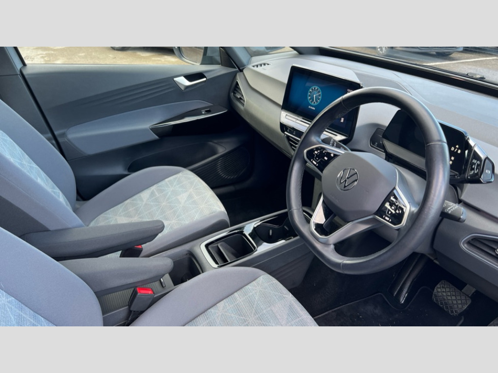 Volkswagen Id.3 150kW Life Pro Performance 58kWh 5dr Auto 10" touch screen infotainment system, 5.3" Digital dashboard display, Adaptive cruise control including Front Assist, radar sensor controlled distance monitoring system, City emergency braking system,speed limiter, BLIS (Blind spot information system), Bluetooth connectivity, Car2X technology, Driver alert system, Driver profile selection with personalisation, E-call, Front and rear parking sensors, ID. Light, Lane assist, Natural voice control, Remote tailgate unlocking, Security and service (SOS buttons), Trip computer, Wireless app connect, Exterior e-sound, DAB Digital radio, Touch control, 3rd brake light, Body colour door handles, Body coloured bumpers, Body coloured door mirrors with intergrated indicators, Front and rear electric windows, Heated rear window, Rain sensor, Rear side wing doors, Rear wiper, Separate LED daytime running lights which also perform the indicator function, 1 Zone climatronic, 3 seat bench in 2nd row, Folding rear seats, Fragment design cloth upholstery, Front headrests, Isofix child seat anchor points, Pause and play pedals, Pockets and smartphone pockets in seats, Reach + rake adjustable steering column, Rear headrests, Single front passenger seat, Standard seats, Comfort pack - ID.3, NCAP pack - ID.3, 3x3 point rear seat belts, Anti-lock braking system (ABS), Child locks on rear doors, Driver and passenger airbags, Electronic parking brake with auto hold, Electronic Stability Programme (ESP), Front and rear curtain airbags, Side airbags, Traction control with on/off button, Tyre pressure monitor, Alarm, Immobiliser, Keyless Go, Remote central locking, Tool kit, Tyre repair kit