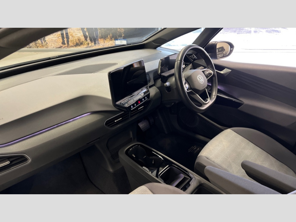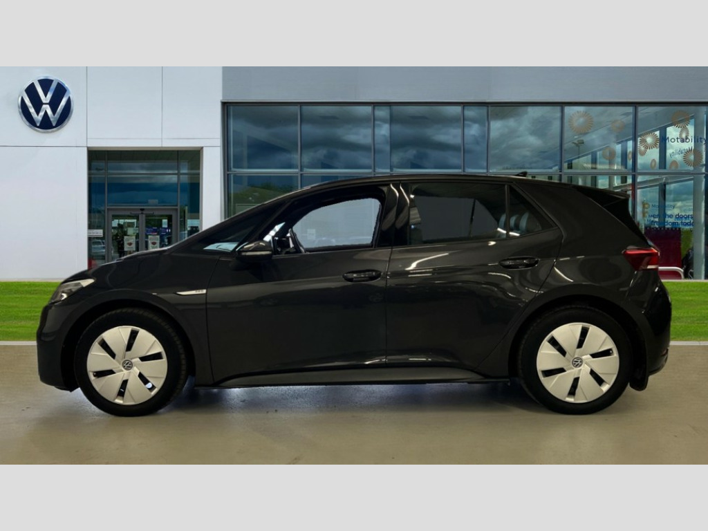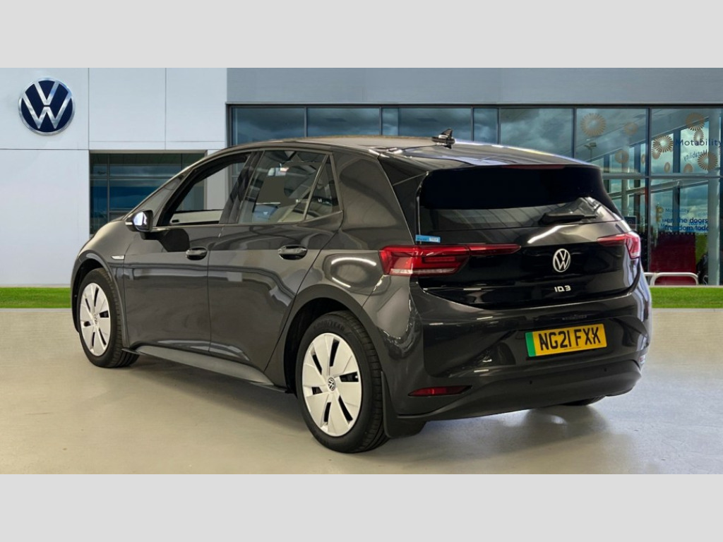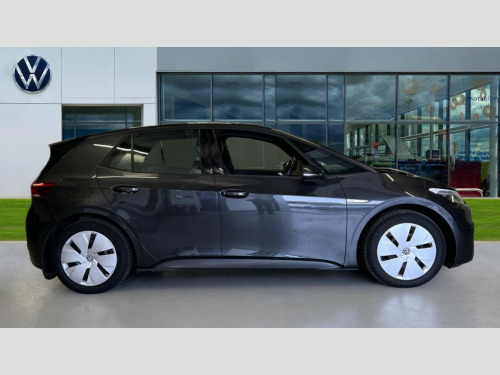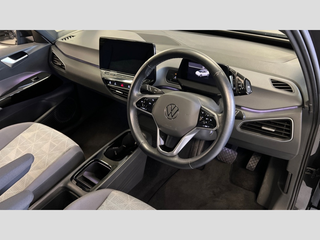 Volkswagen Id.3 150kW Life Pro Performance 58kWh 5dr Auto 10" touch screen infotainment system, 5.3" Digital dashboard display, Adaptive cruise control including Front Assist, radar sensor controlled distance monitoring system, City emergency braking system,speed limiter, BLIS (Blind spot information system), Bluetooth connectivity, Car2X technology, Driver alert system, Driver profile selection with personalisation, Front and rear parking sensors, ID. Light, Lane assist, Natural voice control, Power assisted speed sensitive steering, Remote tailgate unlocking, Security and service (SOS buttons), Trip computer, Wireless app connect, Exterior e-sound, DAB Digital radio, Sound system, Touch control, 3rd brake light, All LED headlights with reflector technology, Black roof, Body colour door handles, Body coloured bumpers, Body coloured door mirrors with intergrated indicators, Front and rear electric windows, Heated rear window, Rain sensor, Rear side wing doors, Rear wiper, Separate LED daytime running lights which also perform the indicator function, 1 Zone climatronic, 10 colour interior ambient lighting, 3 seat bench in 2nd row, Driver seat height adjust, Folding rear seats, Fragment design cloth upholstery, Front headrests, Isofix child seat anchor points, Pause and play pedals, Pockets and smartphone pockets in seats, Reach + rake adjustable steering column, Rear bench seat with center armrest includes loading function, Rear headrests, Single front passenger seat, Standard seats, Comfort pack - ID.3, Infotainment pack - ID.3, NCAP pack - ID.3, 3x3 point rear seat belts, Anti-lock braking system (ABS), Child locks on rear doors, Driver and passenger airbags, Electronic parking brake with auto hold, Electronic Stability Programme (ESP), Front and rear curtain airbags, Side airbags, Tyre pressure monitor, Alarm, Immobiliser, Keyless Go, Remote central locking, Tyre mobility kit