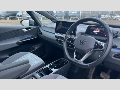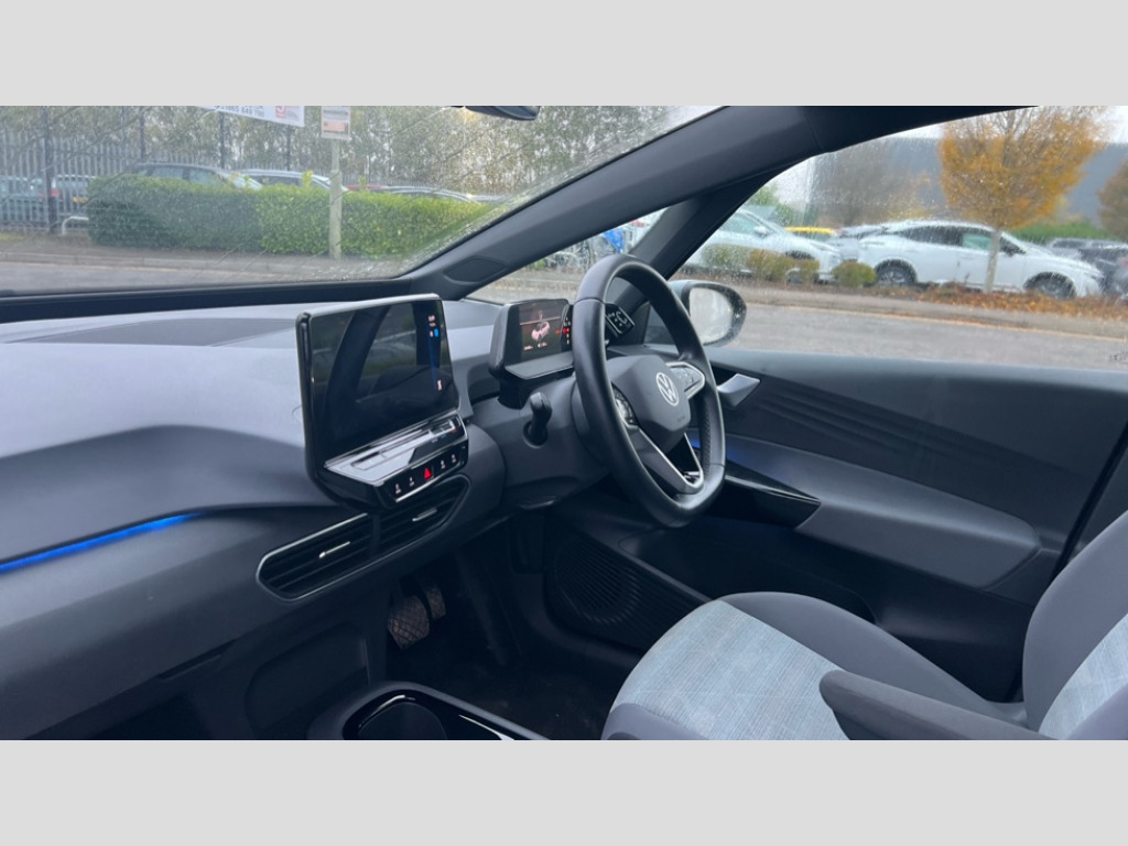 Volkswagen Id.3 150kW Life Pro Performance 58kWh 5dr Auto 10" touch screen infotainment system, 5.3" Digital dashboard display, Adaptive cruise control including Front Assist, radar sensor controlled distance monitoring system, City emergency braking system,speed limiter, BLIS (Blind spot information system), Bluetooth connectivity, Car2X technology, Driver alert system, Driver profile selection with personalisation, Front and rear parking sensors, ID. Light, Lane assist, Natural voice control, Power assisted speed sensitive steering, Remote tailgate unlocking, Security and service (SOS buttons), Trip computer, Wireless app connect, Exterior e-sound, DAB Digital radio, Touch control, 3rd brake light, Body colour door handles, Body coloured bumpers, Body coloured door mirrors with intergrated indicators, Front and rear electric windows, Heated rear window, Rain sensor, Rear side wing doors, Rear wiper, Separate LED daytime running lights which also perform the indicator function, 3 seat bench in 2nd row, Driver seat height adjust, Folding rear seats, Fragment design cloth upholstery, Front headrests, Isofix child seat anchor points, Pause and play pedals, Pockets and smartphone pockets in seats, Reach + rake adjustable steering column, Rear headrests, Single front passenger seat, Standard seats, Comfort pack - ID.3, NCAP pack - ID.3, 3x3 point rear seat belts, Anti-lock braking system (ABS), Child locks on rear doors, Driver and passenger airbags, Electronic parking brake with auto hold, Electronic Stability Programme (ESP), Front and rear curtain airbags, Side airbags, Tyre pressure monitor, Alarm, Immobiliser, Keyless Go, Remote central locking, Tyre mobility kit