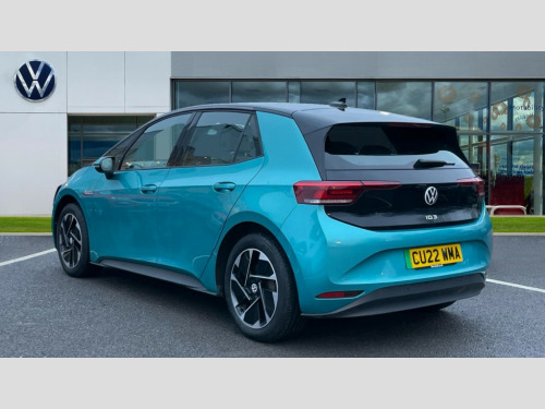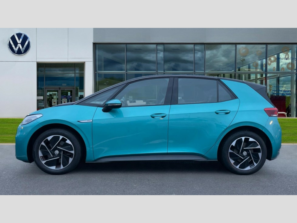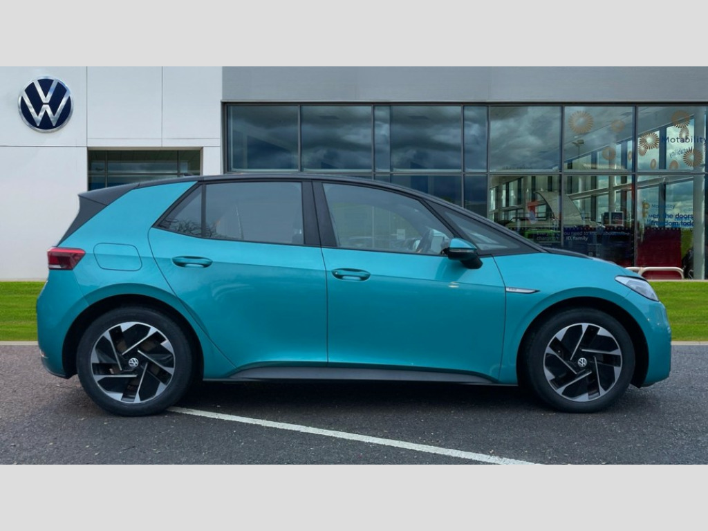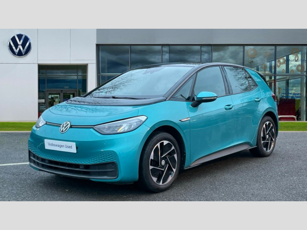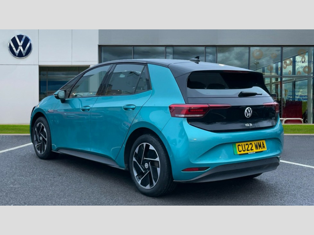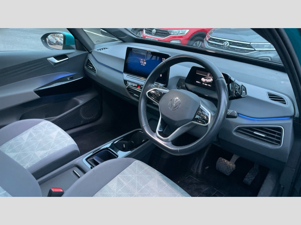 Volkswagen Id.3 150kW Life Pro Performance 58kWh 5dr Auto 10" touch screen infotainment system, 5.3" Digital dashboard display, Adaptive cruise control including Front Assist, radar sensor controlled distance monitoring system, City emergency braking system,speed limiter, BLIS (Blind spot information system), Bluetooth connectivity, Car2X technology, Driver alert system, Driver profile selection with personalisation, E-call, Front and rear parking sensors, ID. Light, Lane assist, Natural voice control, Remote tailgate unlocking, Security and service (SOS buttons), Trip computer, Wireless app connect, Exterior e-sound, DAB Digital radio, Touch control, 3rd brake light, Body colour door handles, Body coloured bumpers, Body coloured door mirrors with intergrated indicators, Front and rear electric windows, Heated rear window, Rain sensor, Rear side wing doors, Rear wiper, Separate LED daytime running lights which also perform the indicator function, 1 Zone climatronic, 3 seat bench in 2nd row, Folding rear seats, Fragment design cloth upholstery, Front headrests, Isofix child seat anchor points, Pause and play pedals, Pockets and smartphone pockets in seats, Reach + rake adjustable steering column, Rear headrests, Single front passenger seat, Standard seats, Comfort pack - ID.3, NCAP pack - ID.3, 3x3 point rear seat belts, Anti-lock braking system (ABS), Child locks on rear doors, Driver and passenger airbags, Electronic parking brake with auto hold, Electronic Stability Programme (ESP), Front and rear curtain airbags, Side airbags, Traction control with on/off button, Tyre pressure monitor, Alarm, Immobiliser, Keyless Go, Remote central locking, Tool kit, Tyre repair kit