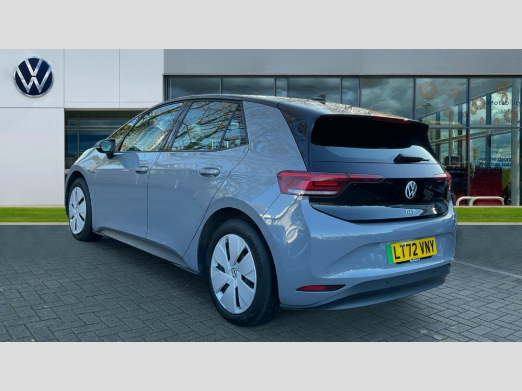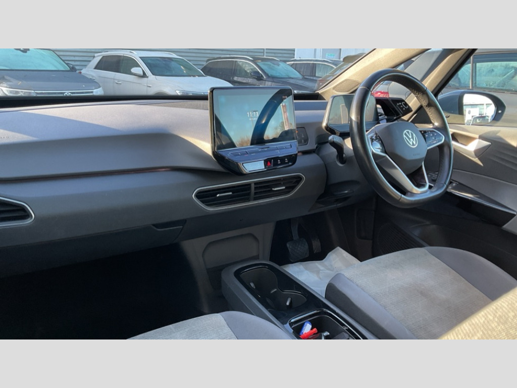 Volkswagen Id.3 150kW Life Pro Performance 58kWh 5dr Auto 10" touch screen infotainment system, 5.3" Digital dashboard display, Adaptive cruise control including Front Assist, radar sensor controlled distance monitoring system, City emergency braking system,speed limiter, BLIS (Blind spot information system), Bluetooth connectivity, Car2X technology, Driver alert system, Driver profile selection with personalisation, E-call, Front and rear parking sensors, ID. Light, Lane assist, Natural voice control, Remote tailgate unlocking, Security and service (SOS buttons), Trip computer, Wireless app connect, Exterior e-sound, DAB Digital radio, Touch control, 3rd brake light, Body colour door handles, Body coloured bumpers, Body coloured door mirrors with intergrated indicators, Front and rear electric windows, Heated rear window, Rain sensor, Rear side wing doors, Rear wiper, Separate LED daytime running lights which also perform the indicator function, 1 Zone climatronic, 3 seat bench in 2nd row, Folding rear seats, Fragment design cloth upholstery, Front headrests, Isofix child seat anchor points, Pause and play pedals, Pockets and smartphone pockets in seats, Reach + rake adjustable steering column, Rear headrests, Single front passenger seat, Standard seats, Comfort pack - ID.3, NCAP pack - ID.3, 3x3 point rear seat belts, Anti-lock braking system (ABS), Child locks on rear doors, Driver and passenger airbags, Electronic parking brake with auto hold, Electronic Stability Programme (ESP), Front and rear curtain airbags, Side airbags, Traction control with on/off button, Tyre pressure monitor, Alarm, Immobiliser, Keyless Go, Remote central locking, Tool kit, Tyre repair kit