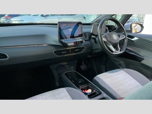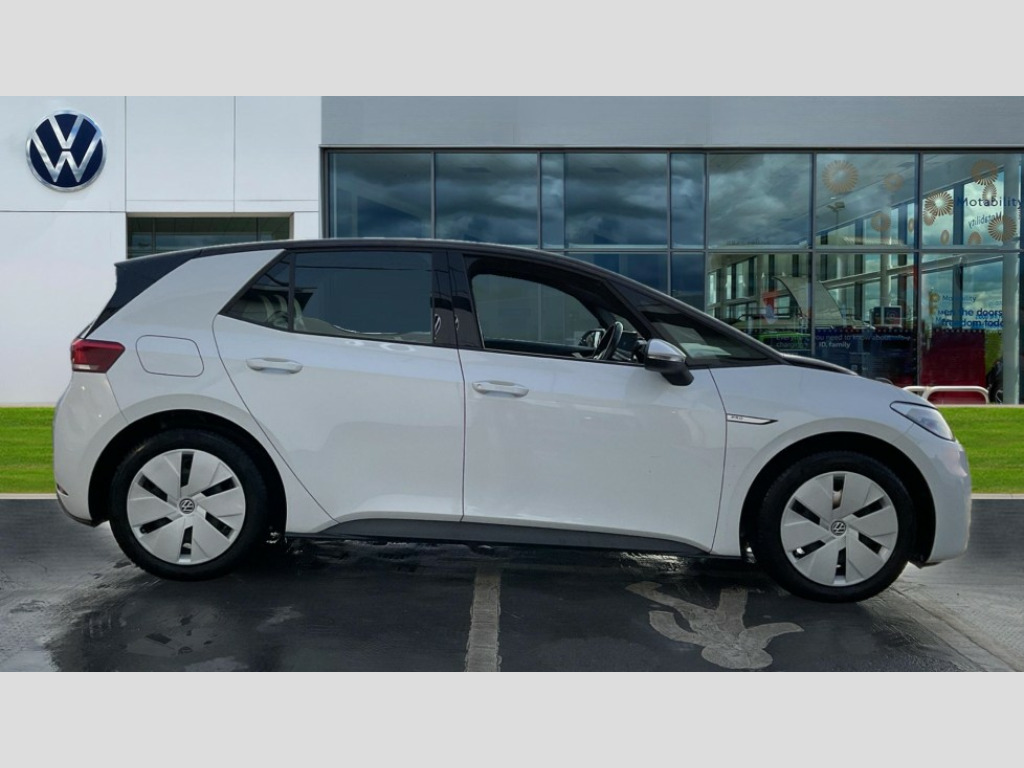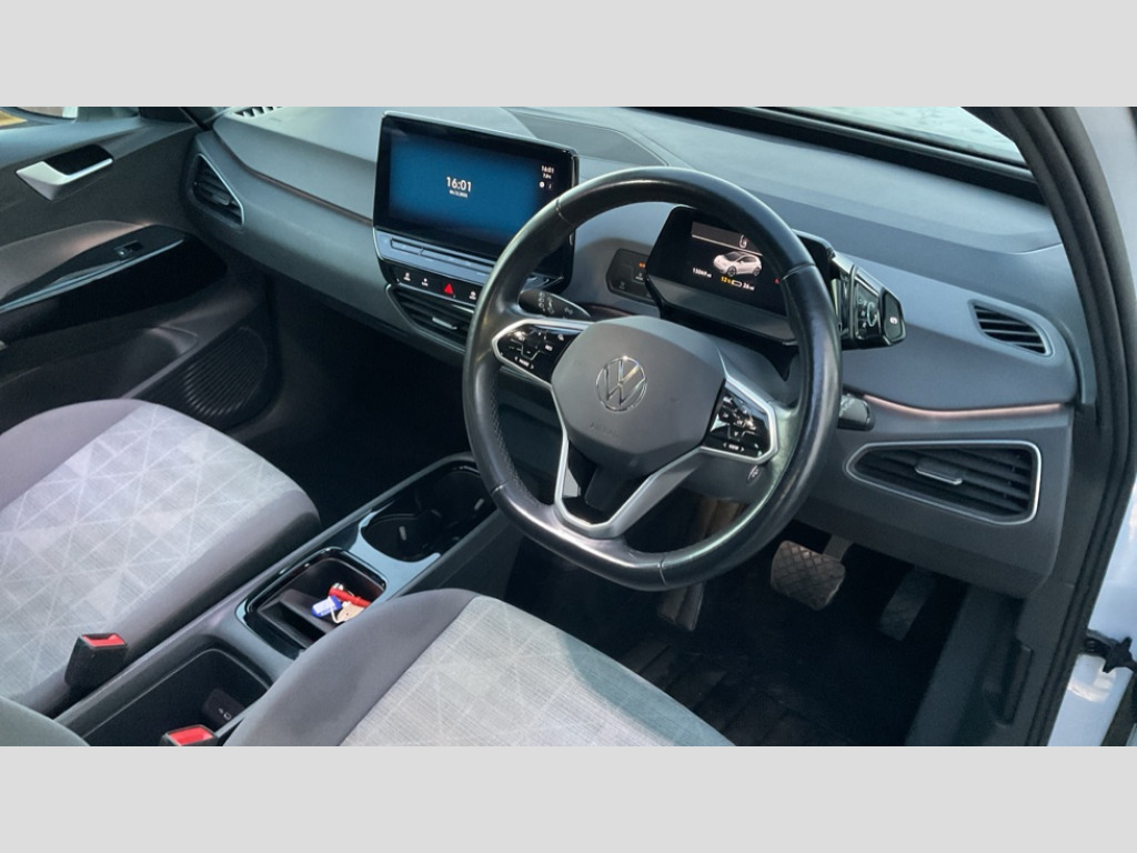 Volkswagen Id.3 150kW Life Pro Performance 58kWh 5dr Auto 10" touch screen infotainment system, 5.3" Digital dashboard display, Adaptive cruise control including Front Assist, radar sensor controlled distance monitoring system, City emergency braking system,speed limiter, BLIS (Blind spot information system), Bluetooth connectivity, Car2X technology, Driver alert system, Driver profile selection with personalisation, E-call, Front and rear parking sensors, ID. Light, Lane assist, Natural voice control, Remote tailgate unlocking, Security and service (SOS buttons), Trip computer, Wireless app connect, Exterior e-sound, DAB Digital radio, Touch control, 3rd brake light, Body colour door handles, Body coloured bumpers, Body coloured door mirrors with intergrated indicators, Front and rear electric windows, Heated rear window, Rain sensor, Rear side wing doors, Rear wiper, Separate LED daytime running lights which also perform the indicator function, 1 Zone climatronic, 3 seat bench in 2nd row, Folding rear seats, Fragment design cloth upholstery, Front headrests, Isofix child seat anchor points, Pause and play pedals, Pockets and smartphone pockets in seats, Reach + rake adjustable steering column, Rear headrests, Single front passenger seat, Standard seats, Comfort pack - ID.3, NCAP pack - ID.3, 3x3 point rear seat belts, Anti-lock braking system (ABS), Child locks on rear doors, Driver and passenger airbags, Electronic parking brake with auto hold, Electronic Stability Programme (ESP), Front and rear curtain airbags, Side airbags, Traction control with on/off button, Tyre pressure monitor, Alarm, Immobiliser, Keyless Go, Remote central locking, Tool kit, Tyre repair kit