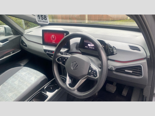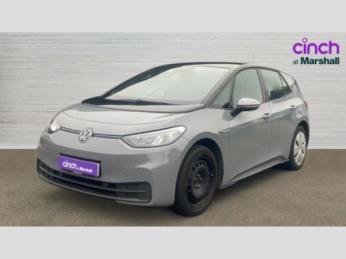 Volkswagen Id.3 150kW Life Pro Performance 58kWh 5dr Auto 10" touch screen infotainment system, 5.3" Digital dashboard display, Adaptive cruise control including Front Assist, radar sensor controlled distance monitoring system, City emergency braking system,speed limiter, BLIS (Blind spot information system), Bluetooth connectivity, Car2X technology, Driver alert system, Driver profile selection with personalisation, E-call, Front and rear parking sensors, ID. Light, Lane assist, Natural voice control, Remote tailgate unlocking, Security and service (SOS buttons), Trip computer, Wireless app connect, Exterior e-sound, DAB Digital radio, Touch control, 3rd brake light, Body colour door handles, Body coloured bumpers, Body coloured door mirrors with intergrated indicators, Front and rear electric windows, Heated rear window, Rain sensor, Rear side wing doors, Rear wiper, Separate LED daytime running lights which also perform the indicator function, 1 Zone climatronic, 3 seat bench in 2nd row, Folding rear seats, Fragment design cloth upholstery, Front headrests, Isofix child seat anchor points, Pause and play pedals, Pockets and smartphone pockets in seats, Reach + rake adjustable steering column, Rear headrests, Single front passenger seat, Standard seats, Comfort pack - ID.3, NCAP pack - ID.3, 3x3 point rear seat belts, Anti-lock braking system (ABS), Child locks on rear doors, Driver and passenger airbags, Electronic parking brake with auto hold, Electronic Stability Programme (ESP), Front and rear curtain airbags, Side airbags, Traction control with on/off button, Tyre pressure monitor, Alarm, Immobiliser, Keyless Go, Remote central locking, Tool kit, Tyre repair kit