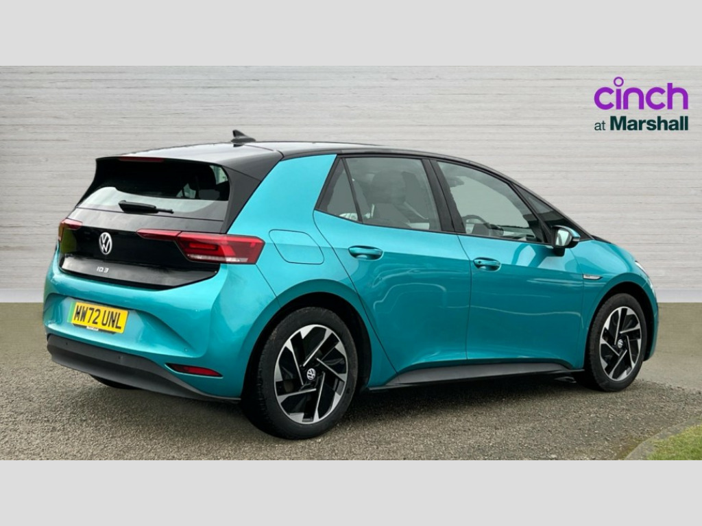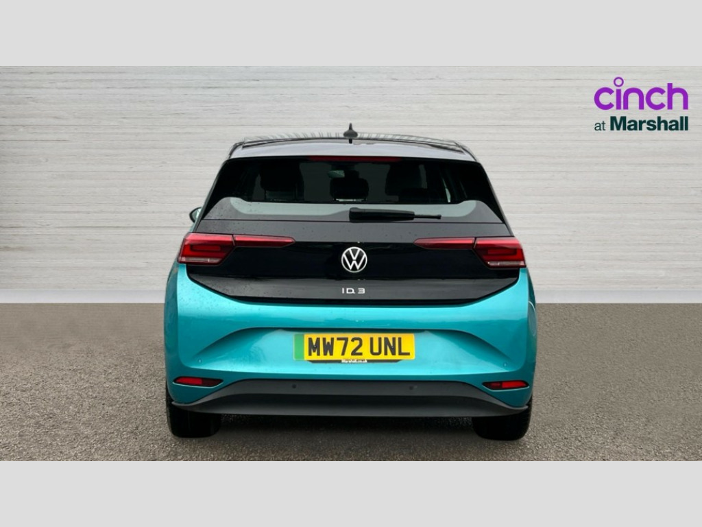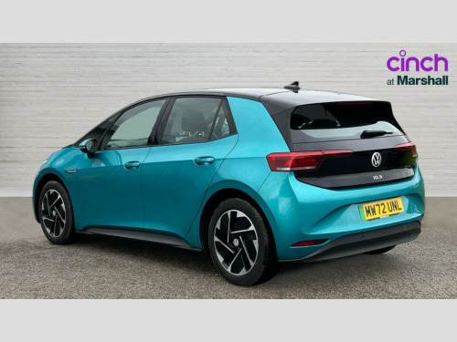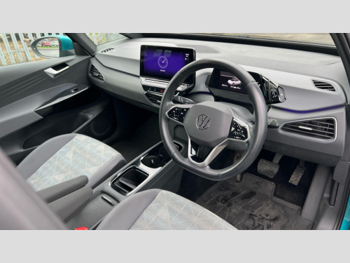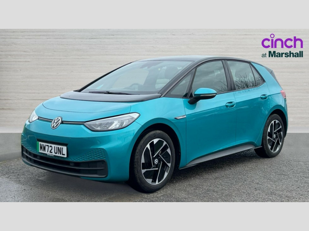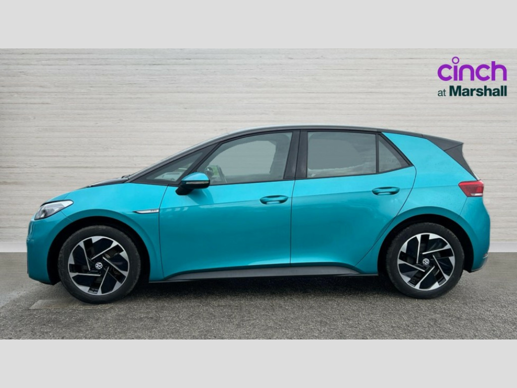 Volkswagen Id.3 150kW Life Pro Performance 58kWh 5dr Auto 10" touch screen infotainment system, 5.3" Digital dashboard display, Adaptive cruise control including Front Assist, radar sensor controlled distance monitoring system, City emergency braking system,speed limiter, BLIS (Blind spot information system), Bluetooth connectivity, Car2X technology, Driver alert system, Driver profile selection with personalisation, E-call, Front and rear parking sensors, ID. Light, Lane assist, Natural voice control, Remote tailgate unlocking, Security and service (SOS buttons), Trip computer, Wireless app connect, Exterior e-sound, DAB Digital radio, Touch control, 3rd brake light, Body colour door handles, Body coloured bumpers, Body coloured door mirrors with intergrated indicators, Front and rear electric windows, Heated rear window, Rain sensor, Rear side wing doors, Rear wiper, Separate LED daytime running lights which also perform the indicator function, 1 Zone climatronic, 3 seat bench in 2nd row, Folding rear seats, Fragment design cloth upholstery, Front headrests, Isofix child seat anchor points, Pause and play pedals, Pockets and smartphone pockets in seats, Reach + rake adjustable steering column, Rear headrests, Single front passenger seat, Standard seats, Comfort pack - ID.3, NCAP pack - ID.3, 3x3 point rear seat belts, Anti-lock braking system (ABS), Child locks on rear doors, Driver and passenger airbags, Electronic parking brake with auto hold, Electronic Stability Programme (ESP), Front and rear curtain airbags, Side airbags, Traction control with on/off button, Tyre pressure monitor, Alarm, Immobiliser, Keyless Go, Remote central locking, Tool kit, Tyre repair kit