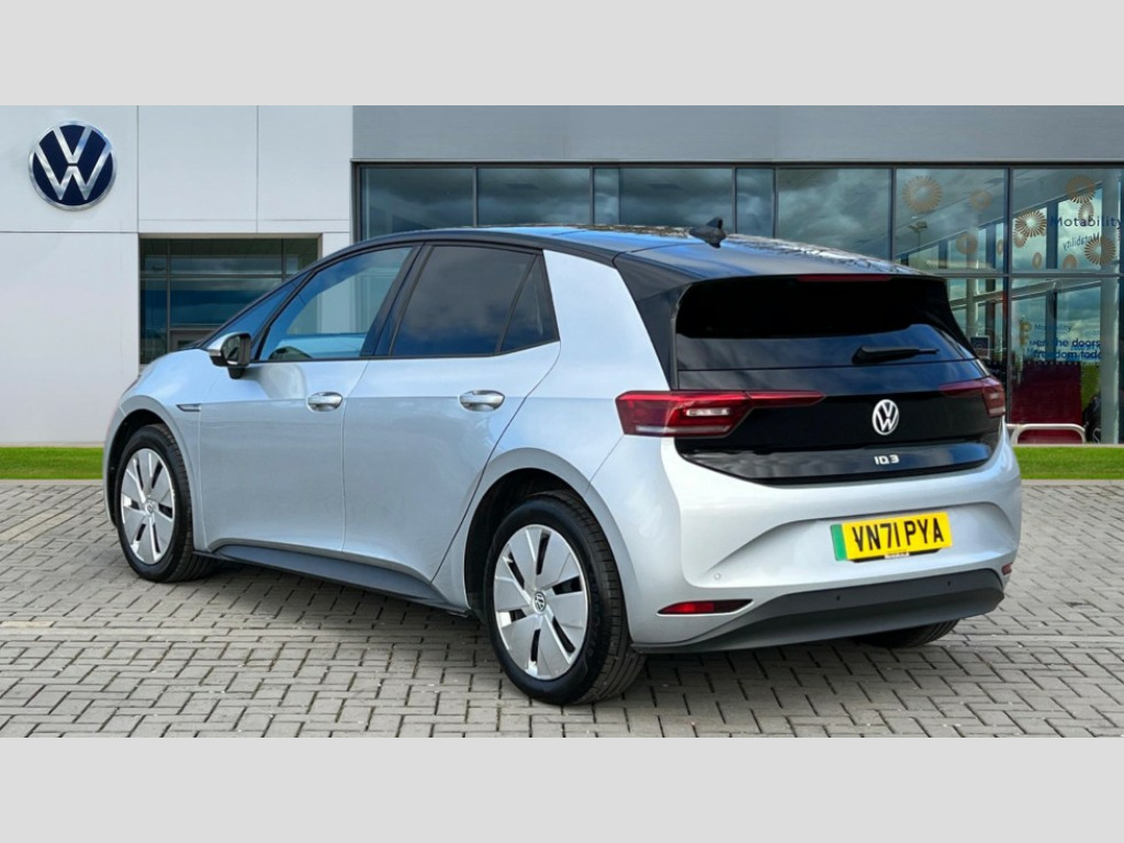 Volkswagen Id.3 150kW Max Pro Performance 58kWh 5dr Auto 10" touch screen infotainment system, 5.3" Digital dashboard display, Adaptive cruise control including Front Assist, radar sensor controlled distance monitoring system, City emergency braking system,speed limiter, BLIS (Blind spot information system), Bluetooth connectivity, Car2X technology, Driver alert system, Driver profile selection with personalisation, E-call, Front and rear parking sensors, ID. Light, Lane assist, Natural voice control, Remote tailgate unlocking, Security and service (SOS buttons), Trip computer, Wireless app connect, Exterior e-sound, DAB Digital radio, Touch control, 3rd brake light, Body colour door handles, Body coloured bumpers, Body coloured door mirrors with intergrated indicators, Front and rear electric windows, Heated rear window, Rear side wing doors, Rear wiper, Separate LED daytime running lights which also perform the indicator function, 3 seat bench in 2nd row, Flow design/Art velour microfleece cloth upholstery, Folding rear seats, Front headrests, Isofix child seat anchor points, Pause and play pedals, Pockets and smartphone pockets in seats, Reach + rake adjustable steering column, Rear headrests, Single front passenger seat, Style plus seats, Assistance plus pack - ID.3, Comfort plus pack - ID.3, Design plus pack - ID.3, Infotainment plus pack with wireless smartphone charging - ID.3, Interior style plus pack - ID.3, NCAP pack - ID.3, Sport plus pack - ID.3, 3x3 point rear seat belts, Anti-lock braking system (ABS), Child locks on rear doors, Driver and passenger airbags, Electronic parking brake with auto hold, Electronic Stability Programme (ESP), Front and rear curtain airbags, Side airbags, Traction control with on/off button, Tyre pressure monitor, Alarm, Immobiliser, Remote central locking, Tool kit, Tyre repair kit