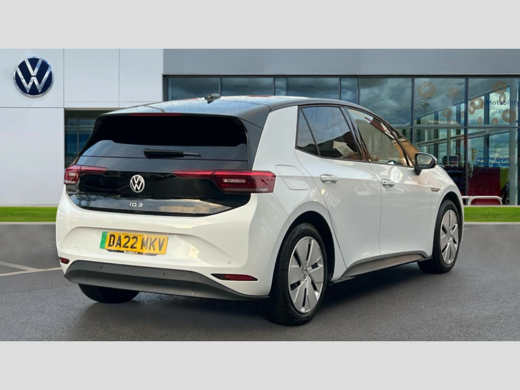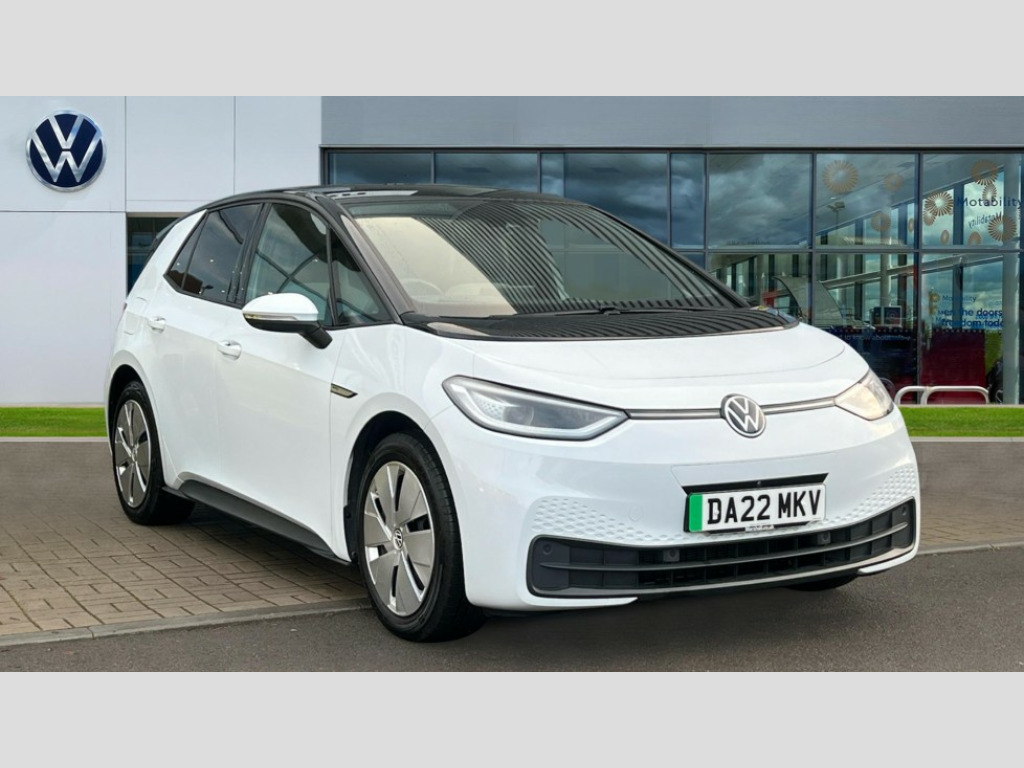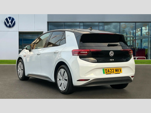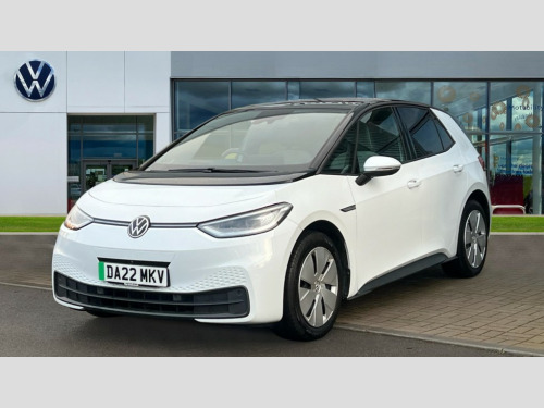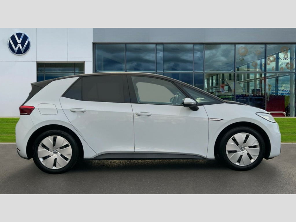 Volkswagen Id.3 150kW Max Pro Performance 58kWh 5dr Auto 10" touch screen infotainment system, 5.3" Digital dashboard display, Adaptive cruise control including Front Assist, radar sensor controlled distance monitoring system, City emergency braking system,speed limiter, BLIS (Blind spot information system), Bluetooth connectivity, Car2X technology, Driver alert system, Driver profile selection with personalisation, E-call, Front and rear parking sensors, ID. Light, Lane assist, Natural voice control, Remote tailgate unlocking, Security and service (SOS buttons), Trip computer, Wireless app connect, Exterior e-sound, Mode 3 32-amp / 7.2kW charging cable for charging at public charge points, DAB Digital radio, Touch control, Body colour door handles, Body coloured bumpers, Body coloured door mirrors with intergrated indicators, Front and rear electric windows, Heated rear window, LED 3rd brake lamp, Rear side wing doors, Rear wiper, Separate LED daytime running lights which also perform the indicator function, Variable front intermittent wipers, 3 seat bench in 2nd row, Flow design/Art velour microfleece cloth upholstery, Folding rear seats, Front headrests, Isofix child seat anchor points, Leather steering wheel, Multi-function steering wheel, Pause and play pedals, Pockets and smartphone pockets in seats, Reach + rake adjustable steering column, Rear headrests, Single front passenger seat, Style plus seats, Assistance plus pack - ID.3, Comfort plus pack - ID.3, Design plus pack - ID.3, Infotainment plus pack with wireless smartphone charging - ID.3, Interior style plus pack - ID.3, NCAP pack - ID.3, Sport plus pack - ID.3, 3x3 point rear seat belts, Anti-lock braking system (ABS), Child locks on rear doors, Driver and passenger airbags, Electronic parking brake with auto hold, Electronic Stability Programme (ESP), Front and rear curtain airbags, Front passenger airbag deactivation, Side airbags, Traction control with on/off button, Tyre pressure monitor, Alarm, Immobiliser, Remote central locking, Tool kit, Tyre repair kit