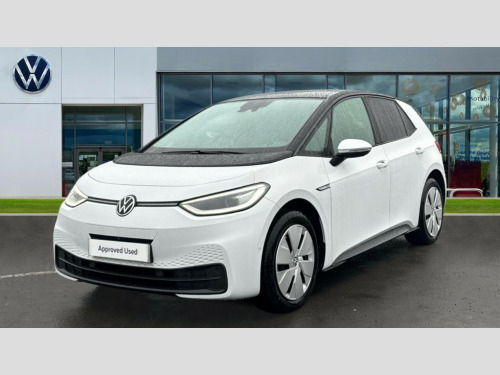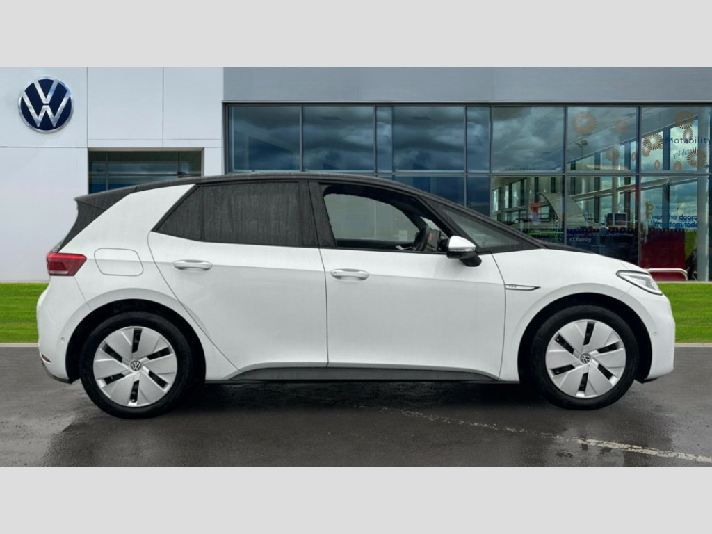 Volkswagen Id.3 150kW Max Pro Performance 58kWh 5dr Auto 10" touch screen infotainment system, 5.3" Digital dashboard display, Adaptive cruise control including Front Assist, radar sensor controlled distance monitoring system, City emergency braking system,speed limiter, BLIS (Blind spot information system), Bluetooth connectivity, Car2X technology, Driver alert system, Driver profile selection with personalisation, E-call, Front and rear parking sensors, ID. Light, Lane assist, Natural voice control, Remote tailgate unlocking, Security and service (SOS buttons), Trip computer, Wireless app connect, Exterior e-sound, Mode 3 32-amp / 7.2kW charging cable for charging at public charge points, DAB Digital radio, Touch control, Body colour door handles, Body coloured bumpers, Body coloured door mirrors with intergrated indicators, Front and rear electric windows, Heated rear window, LED 3rd brake lamp, Rear side wing doors, Rear wiper, Separate LED daytime running lights which also perform the indicator function, Variable front intermittent wipers, 3 seat bench in 2nd row, Flow design/Art velour microfleece cloth upholstery, Folding rear seats, Front headrests, Isofix child seat anchor points, Leather steering wheel, Multi-function steering wheel, Pause and play pedals, Pockets and smartphone pockets in seats, Reach + rake adjustable steering column, Rear headrests, Single front passenger seat, Style plus seats, Assistance plus pack - ID.3, Comfort plus pack - ID.3, Design plus pack - ID.3, Infotainment plus pack with wireless smartphone charging - ID.3, Interior style plus pack - ID.3, NCAP pack - ID.3, Sport plus pack - ID.3, 3x3 point rear seat belts, Anti-lock braking system (ABS), Child locks on rear doors, Driver and passenger airbags, Electronic parking brake with auto hold, Electronic Stability Programme (ESP), Front and rear curtain airbags, Front passenger airbag deactivation, Side airbags, Traction control with on/off button, Tyre pressure monitor, Alarm, Immobiliser, Remote central locking, Tool kit, Tyre repair kit