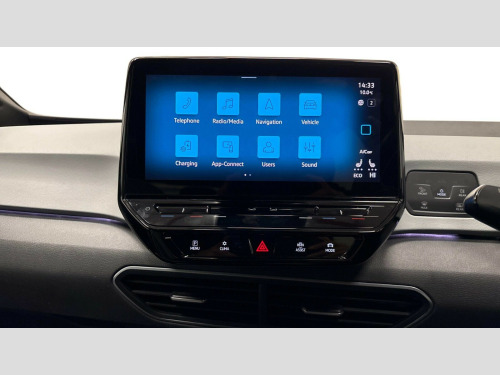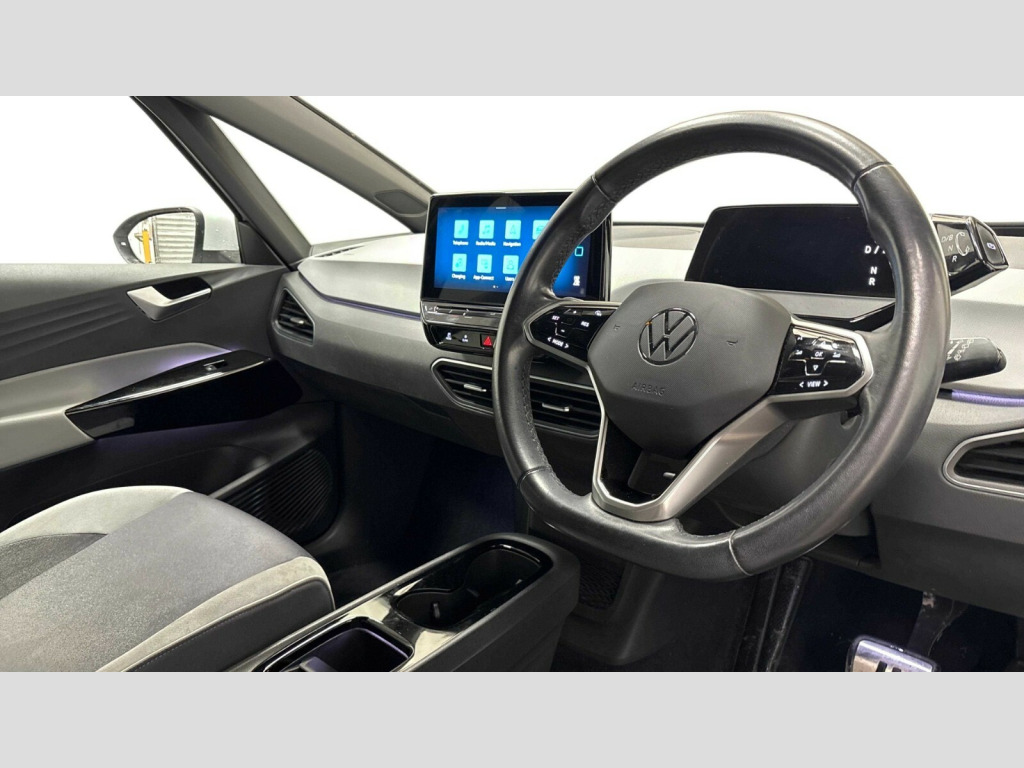 Volkswagen Id.3 150kW Style Pro Performance 58kWh 5dr Auto 10" touch screen infotainment system, 5.3" Digital dashboard display, Adaptive cruise control including Front Assist, radar sensor controlled distance monitoring system, City emergency braking system,speed limiter, BLIS (Blind spot information system), Bluetooth connectivity, Car2X technology, Driver alert system, Driver profile selection with personalisation, Front and rear parking sensors, ID. Light, Lane assist, Natural voice control, Power assisted speed sensitive steering, Remote tailgate unlocking, Security and service (SOS buttons), Trip computer, Wireless app connect, Exterior e-sound, DAB Digital radio, Sound system, Touch control, Black roof, Body colour door handles, Body coloured bumpers, Body coloured door mirrors with intergrated indicators, Electrically heated and adjustable door mirrors, Front and rear electric windows, Heated rear window, Separate LED daytime running lights which also perform the indicator function, 1 Zone climatronic, Armrest integrated into the front seats, Driver seat height adjust, Flow design/Art velour microfleece cloth upholstery, Folding rear seats, Front headrests, Isofix child seat anchor points, Pause and play pedals, Pockets and smartphone pockets in seats, Reach + rake adjustable steering column, Rear bench seat with center armrest includes loading function, Rear headrests, Style seats, Comfort pack - ID.3, Design plus pack - ID.3, Infotainment pack - ID.3, NCAP pack - ID.3, 3x3 point rear seat belts, Anti-lock braking system (ABS), Driver and passenger airbags, Electronic parking brake with auto hold, Electronic Stability Programme (ESP), Front and rear curtain airbags, Side airbags, Traction control, Tyre pressure monitor, Alarm, Immobiliser, Keyless Go, Remote central locking, Tyre mobility kit