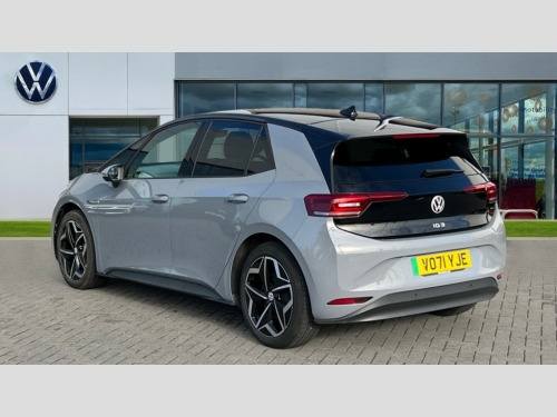 Volkswagen Id.3 150kW Tour Pro S 77kWh 5dr Auto 10" touch screen infotainment system, 5.3" Digital dashboard display, Adaptive cruise control including Front Assist, radar sensor controlled distance monitoring system, City emergency braking system,speed limiter, BLIS (Blind spot information system), Bluetooth connectivity, Car2X technology, Driver alert system, Driver profile selection with personalisation, Front and rear parking sensors, ID. Light, Lane assist, Natural voice control, Power assisted speed sensitive steering, Remote tailgate unlocking, Security and service (SOS buttons), Trip computer, Wireless app connect, Exterior e-sound, DAB Digital radio, Touch control, 3rd brake light, Black roof, Body colour door handles, Body coloured bumpers, Body coloured door mirrors with intergrated indicators, Front and rear electric windows, Heated rear window, Rear side wing doors, Rear wiper, Separate LED daytime running lights which also perform the indicator function, 2 seat bench in 2nd row, Driver seat height adjust, Flow design/Art velour microfleece cloth upholstery, Folding rear seats, Front headrests, Isofix child seat anchor points, Pause and play pedals, Pockets and smartphone pockets in seats, Reach + rake adjustable steering column, Rear headrests, Single front passenger seat, Style plus seats, Assistance plus pack - ID.3, Comfort plus pack - ID.3, Design pack - ID.3, Infotainment plus pack with wireless smartphone charging - ID.3, Interior style plus pack - ID.3, NCAP pack - ID.3, 2 rear 3 point safety belts, Anti-lock braking system (ABS), Driver and passenger airbags, Electronic parking brake with auto hold, Electronic Stability Programme (ESP), Front and rear curtain airbags, Rear door child safety locks, Side airbags, Traction control, Tyre pressure monitor, Alarm, Immobiliser, Remote central locking, Tyre mobility kit