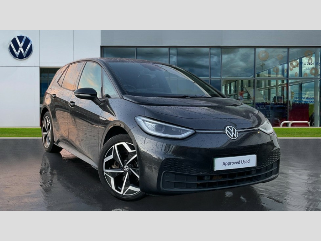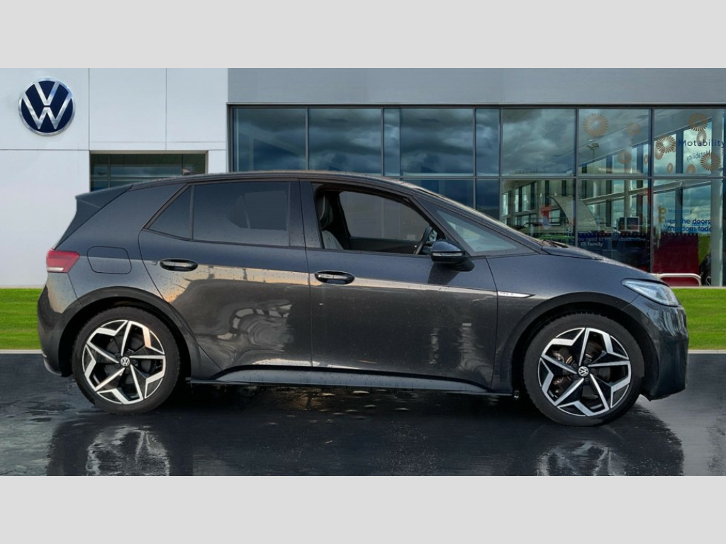Volkswagen Id.3 150kW Tour Pro S 77kWh 5dr Auto 10" touch screen infotainment system, 5.3" Digital dashboard display, Adaptive cruise control including Front Assist, radar sensor controlled distance monitoring system, City emergency braking system,speed limiter, BLIS (Blind spot information system), Bluetooth connectivity, Car2X technology, Driver alert system, Driver profile selection with personalisation, Front and rear parking sensors, ID. Light, Lane assist, Natural voice control, Power assisted speed sensitive steering, Remote tailgate unlocking, Security and service (SOS buttons), Trip computer, Wireless app connect, Exterior e-sound, DAB Digital radio, Touch control, 3rd brake light, Black roof, Body colour door handles, Body coloured bumpers, Body coloured door mirrors with intergrated indicators, Electrically heated and adjustable door mirrors, Front and rear electric windows, Heated rear window, Rear side wing doors, Rear wiper, Separate LED daytime running lights which also perform the indicator function, 2 seat bench in 2nd row, Armrest integrated into the front seats, Driver seat height adjust, Flow design/Art velour microfleece cloth upholstery, Folding rear seats, Front headrests, Isofix child seat anchor points, Pause and play pedals, Pockets and smartphone pockets in seats, Reach + rake adjustable steering column, Rear bench seat with center armrest includes loading function, Rear headrests, Single front passenger seat, Style plus seats, Assistance plus pack - ID.3, Comfort plus pack - ID.3, Design pack - ID.3, Infotainment plus pack - ID.3, NCAP pack - ID.3, 2 rear 3 point safety belts, Anti-lock braking system (ABS), Driver and passenger airbags, Electronic parking brake with auto hold, Electronic Stability Programme (ESP), Front and rear curtain airbags, Rear door child safety locks, Side airbags, Traction control, Tyre pressure monitor, Immobiliser, Remote central locking, Tyre mobility kit