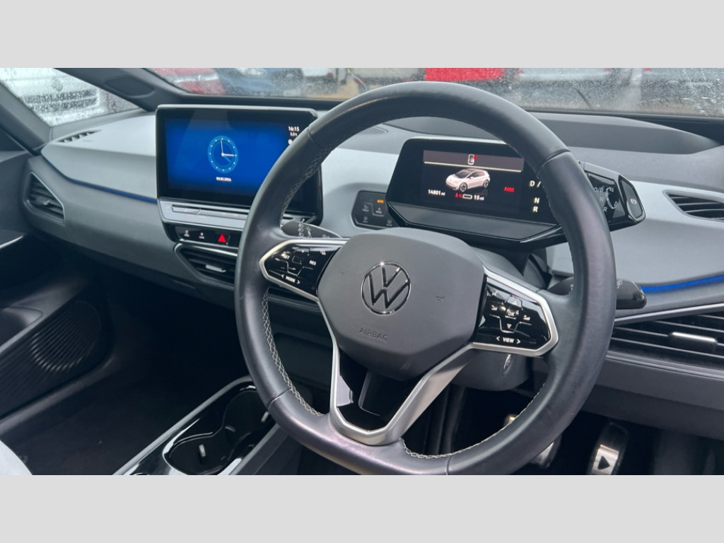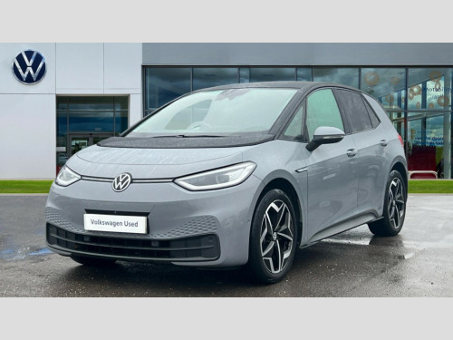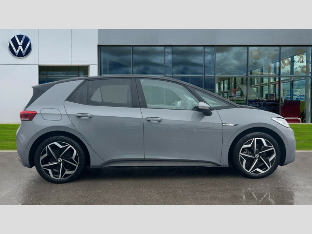 Volkswagen Id.3 150kW Tour Pro S 77kWh 5dr Auto 10" touch screen infotainment system, 5.3" Digital dashboard display, Adaptive cruise control including Front Assist, radar sensor controlled distance monitoring system, City emergency braking system,speed limiter, BLIS (Blind spot information system), Bluetooth connectivity, Car2X technology, Driver alert system, Driver profile selection with personalisation, E-call, Front and rear parking sensors, ID. Light, Lane assist, Natural voice control, Power assisted speed sensitive steering, Remote tailgate unlocking, Security and service (SOS buttons), Trip computer, Wireless app connect, Exterior e-sound, Mode 3 32-amp / 7.2kW charging cable for charging at public charge points, DAB Digital radio, Touch control, Black roof, Body colour door handles, Body coloured bumpers, Body coloured door mirrors with intergrated indicators, Front and rear electric windows, Heated rear window, LED 3rd brake lamp, Rear side wing doors, Rear wiper, Separate LED daytime running lights which also perform the indicator function, Variable front intermittent wipers, 2 seat bench in 2nd row, Artvelours cloth upholstery, Folding rear seats, Front headrests, Isofix child seat anchor points, Leather steering wheel, Multi-function steering wheel, Pause and play pedals, Pockets and smartphone pockets in seats, Reach + rake adjustable steering column, Rear headrests, Single front passenger seat, Style plus seats, Assistance plus pack - ID.3, Comfort plus pack - ID.3, Design pack - ID.3, Infotainment plus pack with wireless smartphone charging - ID.3, Interior style plus pack - ID.3, NCAP pack - ID.3, 2 rear 3 point safety belts, Anti-lock braking system (ABS), Driver and passenger airbags, Electronic parking brake with auto hold, Electronic Stability Programme (ESP), Front and rear curtain airbags, Front passenger airbag deactivation, Rear door child safety locks, Side airbags, Traction control with on/off button, Tyre pressure monitor, Alarm, Immobiliser, Remote central locking, Tool kit, Tyre repair kit