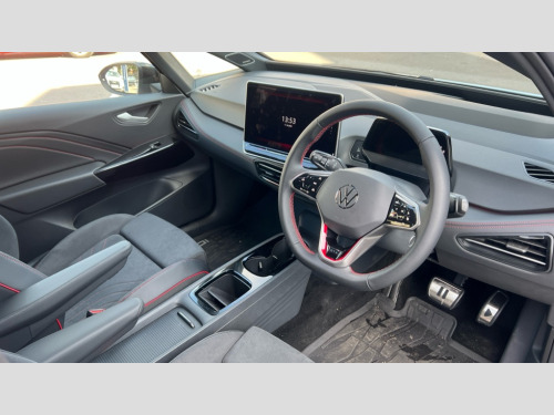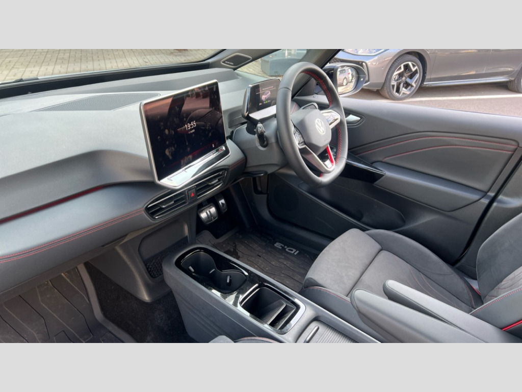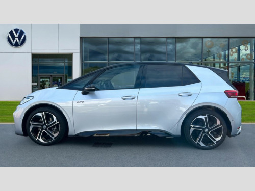 Volkswagen Id.3 240kW GTX Performance 79kWh 5dr Auto Adaptive cruise control, Advanced driver attention and drowsiness monitor, Augmented reality head up display, Bluetooth connectivity, Car2X intelligent vehicle networking, Discover pro navigation with 12.9" screen, Dynamic road sign display, E-call, E-Sim card for online connectivity, Natural voice control, Oncoming vehicle braking when turning including swerve support, Predictive speed limiter, Preparation for navigation system with media and internet package, Progressive steering, Trip computer, Warning signal and warning light for front and rear seatbelts not fastened, Wireless app connect, Wireless Smartphone charger, 170kW DC battery charging, Adaptive Chassis Control DCC including Driving Profile Selection, Battery 320 A (49 Ah), Charging cable mode 3, Type 2: 7.2kW 1-Phase/11kW 3-Phase (32A), Rear wheel drive, Sports suspension, Standard electronic engine sound actuator, 2 USB C ports in front, 2 USB charging sockets on the centre console in the rear charging capacity upto 45W, DAB Digital radio, Gaming platform via car app, Harman Kardon sound system, Advanced dynamic light assist for LED matrix headlights, Auto dimming rear view mirror, Automatic headlights, Automatically front heated washer nozzles, Body colour door handles, Body coloured bumpers, Front and rear electric windows, Heated windscreen washer jets, Laminated safety glass windshield, heat and sound insulating, LED 3rd brake lamp, LED rear tail lights with dynamic turn signal, Matrix LED headlights, Poor weather light and entry lighting, Rain sensor, Rear side wing doors, Rear tinted glass from B-pillar backwards approx 65% tinted, Rear wiper, Remote electrically foldable door mirrors, puddle lights and reverse activated passenger's door mirror, Separate LED daytime running lights which also perform the indicator function, Variable front intermittent wipers, Welcome light, 3 seat bench in 2nd row, 30 colour ambient lighting, Air Care climatronic 2 zone air conditioning, Art velour ECO microfleece upholstery with top sport seat plus, Centre console with illuminated storage compartment with sliding cover and two drinks holders, Door and side trim panel, Electric auxiliary air heater, Ergoactive seats in front with power adjustment, memory feature and adjustable thigh support, Folding rear seats, Front armrests, Front headrests, Heated front seats, Isofix child seat preparation easy-fit (for two outer rear seats, and front passenger seat) compatible with I-size, Leather wrapped multifunction heated steering wheel with touch control, Play and Pause brake and accelerator pedals, Power adjustable lumbar front seats, Reach + rake adjustable steering column, Rear headrests, Rear seat bench unsplit, backrest split folding with center armrest, Single front passenger seat, Sunvisors with illuminated vanity mirrors, 3 rear 3 point seatbelts, Anti-lock braking system (ABS), Autonomous emergency braking front assist with pedestrian and cyclist monitoring, Centre airbag, Child locks on rear doors, Disc brakes in front, Driver and front passenger airbags, Electronic parking brake with auto hold, Electronic Stability Programme (ESP), Front and rear curtain airbags, Front passenger airbag deactivation, Front side airbags, Single tone horn, Traction control with on/off button, Tyre pressure loss indicator, Anti theft wheel bolts, Immobiliser, Remote central locking, Tool kit + Tyre mobility set (including 12-volt compressor + tyre sealant), Trims for alloy wheels
