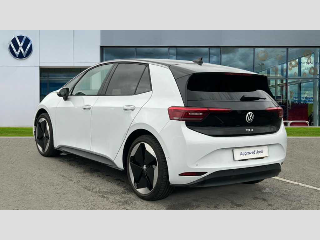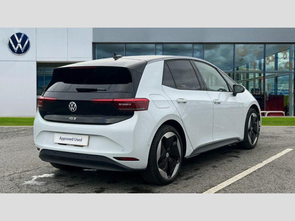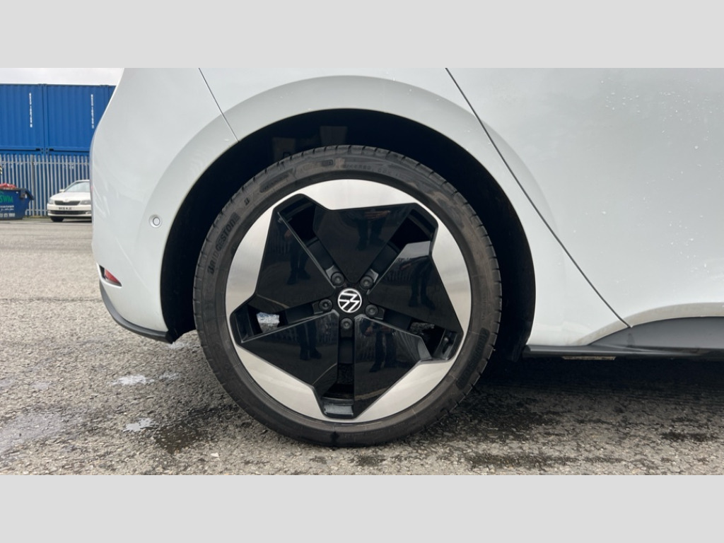 Volkswagen Id.3 150kW Pro S 77kWh 5dr Auto [5 Seats] Adaptive cruise control, Advanced driver attention and drowsiness monitor, Bluetooth connectivity, Car2X intelligent vehicle networking, Discover pro navigation with 12.9" screen, Dynamic road sign display, E-call, E-Sim card for online connectivity, Front and rear parking sensors, Lane assist, Natural voice control, Oncoming vehicle braking when turning including swerve support, Predictive speed limiter, Preparation for navigation system with media and internet package, Trip computer, Warning signal and warning light for front and rear seatbelts not fastened, Wireless app connect, Wireless Smartphone charger, 170kW DC battery charging, Battery 320 A (49 Ah), Charging cable mode 3, Type 2: 7.2kW 1-Phase/11kW 3-Phase (32A), Rear wheel drive, Standard electronic engine sound actuator, 2 USB C ports in front, 2 USB charging sockets on the centre console in the rear charging capacity upto 45W, DAB Digital radio, Front speakers, Gaming platform via car app, Auto dimming rear view mirror, Automatic headlights, Automatically front heated washer nozzles, Body colour door handles, Body coloured bumpers, Front and rear electric windows, Heat insulating darkened glass in side and rear windows, Heat insulating windscreen, Heated windscreen washer jets, High beam assist with automatic sensing for switching between dipped and main beam, LED 3rd brake lamp, LED Headlights, LED rear combination lamps, Rain sensor, Rear side wing doors, Rear wiper, Remote electrically foldable door mirrors, puddle lights and reverse activated passenger's door mirror, Separate LED daytime running lights which also perform the indicator function, Variable front intermittent wipers, Welcome light, 10 colour interior ambient lighting, 3 seat bench in 2nd row, Air Care climatronic 2 zone air conditioning, Centre console with illuminated storage compartment with sliding cover and two drinks holders, Comfort seats, Driver and front passenger seat height adjustment, Electric auxiliary air heater, Folding rear seats, Front armrests, Front headrests, Heated front seats, Isofix child seat preparation easy-fit (for two outer rear seats, and front passenger seat) compatible with I-size, Leather wrapped multifunction heated steering wheel with touch control, Play and Pause brake and accelerator pedals, Reach + rake adjustable steering column, Rear headrests, Rear seat bench unsplit, backrest split folding with center armrest, Single front passenger seat, Sunvisors with illuminated vanity mirrors, Taia cloth upholstery, 3 rear 3 point seatbelts, Anti-lock braking system (ABS), Autonomous emergency braking front assist with pedestrian and cyclist monitoring, Centre airbag, Child locks on rear doors, Disc brakes in front, Driver and front passenger airbags, Electronic parking brake with auto hold, Electronic Stability Programme (ESP), Front and rear curtain airbags, Front passenger airbag deactivation, Front side airbags, Single tone horn, Traction control with on/off button, Tyre pressure loss indicator, Anti theft wheel bolts, Anti-theft alarm system with interior monitoring, backup horn, and towing protection, Central locking system with keyless start and safelock, Immobiliser, Remote central locking, 20" Sanya black diamond turned surface alloy wheels, Tool kit + Tyre mobility set (including 12-volt compressor + tyre sealant)