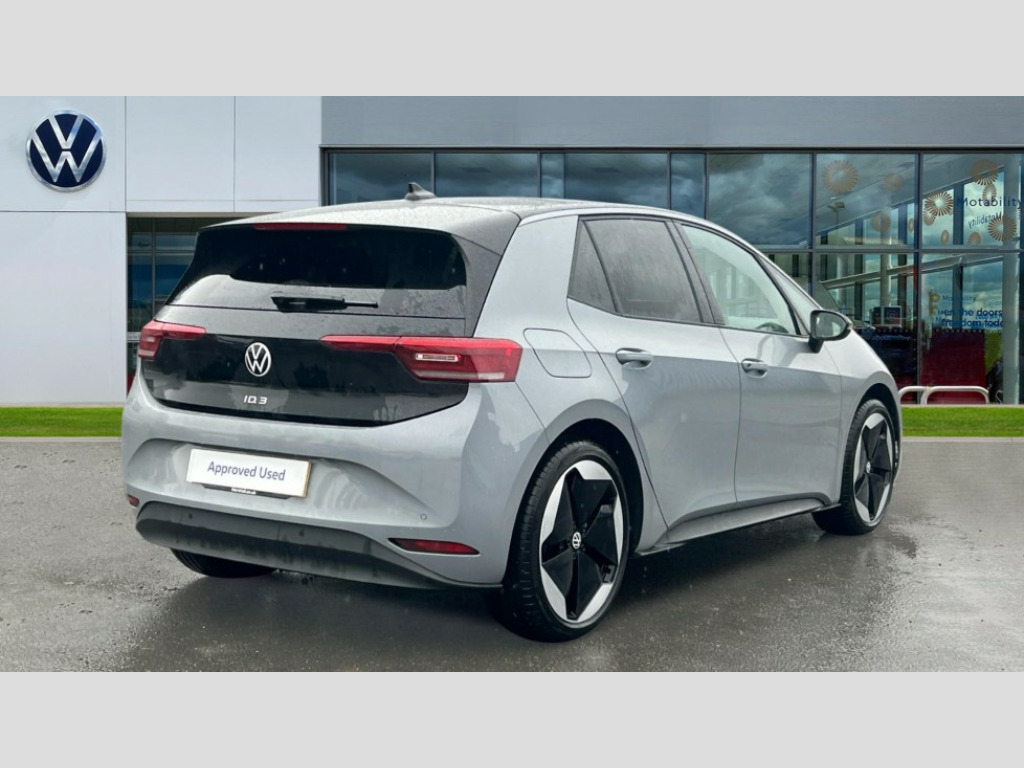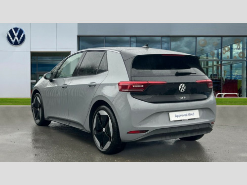 Volkswagen Id.3 150kW Pro S 79kWh 5dr Auto [5 Seats] Adaptive cruise control, Advanced driver attention and drowsiness monitor, Bluetooth connectivity, Car2X intelligent vehicle networking, Discover pro navigation with 12.9" screen, Dynamic road sign display, E-call, E-Sim card for online connectivity, Front and rear parking sensors, Lane assist, Natural voice control, Oncoming vehicle braking when turning including swerve support, Predictive speed limiter, Preparation for navigation system with media and internet package, Trip computer, Warning signal and warning light for front and rear seatbelts not fastened, Wireless app connect, Wireless Smartphone charger, 170kW DC battery charging, Battery 320 A (49 Ah), Charging cable mode 3, Type 2: 7.2kW 1-Phase/11kW 3-Phase (32A), Rear wheel drive, Standard electronic engine sound actuator, 2 USB C ports in front, 2 USB charging sockets on the centre console in the rear charging capacity upto 45W, DAB Digital radio, Front speakers, Gaming platform via car app, Auto dimming rear view mirror, Automatic headlights, Automatically front heated washer nozzles, Body colour door handles, Body coloured bumpers, Front and rear electric windows, Heat insulating darkened glass in side and rear windows, Heat insulating windscreen, Heated windscreen washer jets, High beam assist with automatic sensing for switching between dipped and main beam, LED 3rd brake lamp, LED Headlights, LED rear combination lamps, Rain sensor, Rear side wing doors, Rear wiper, Remote electrically foldable door mirrors, puddle lights and reverse activated passenger's door mirror, Separate LED daytime running lights which also perform the indicator function, Variable front intermittent wipers, Welcome light, 10 colour interior ambient lighting, 3 seat bench in 2nd row, Air Care climatronic 2 zone air conditioning, Centre console with illuminated storage compartment with sliding cover and two drinks holders, Comfort seats, Driver and front passenger seat height adjustment, Electric auxiliary air heater, Folding rear seats, Front armrests, Front headrests, Heated front seats, Isofix child seat preparation easy-fit (for two outer rear seats, and front passenger seat) compatible with I-size, Leather wrapped multifunction heated steering wheel with touch control, Play and Pause brake and accelerator pedals, Reach + rake adjustable steering column, Rear headrests, Rear seat bench unsplit, backrest split folding with center armrest, Single front passenger seat, Sunvisors with illuminated vanity mirrors, Taia cloth upholstery, 3 rear 3 point seatbelts, Anti-lock braking system (ABS), Autonomous emergency braking front assist with pedestrian and cyclist monitoring, Centre airbag, Child locks on rear doors, Disc brakes in front, Driver and front passenger airbags, Electronic parking brake with auto hold, Electronic Stability Programme (ESP), Front and rear curtain airbags, Front passenger airbag deactivation, Front side airbags, Single tone horn, Traction control with on/off button, Tyre pressure loss indicator, Anti theft wheel bolts, Anti-theft alarm system with interior monitoring, backup horn, and towing protection, Central locking system with keyless start and safelock, Immobiliser, Remote central locking, 20" Sanya black diamond turned surface alloy wheels, Tool kit + Tyre mobility set (including 12-volt compressor + tyre sealant)