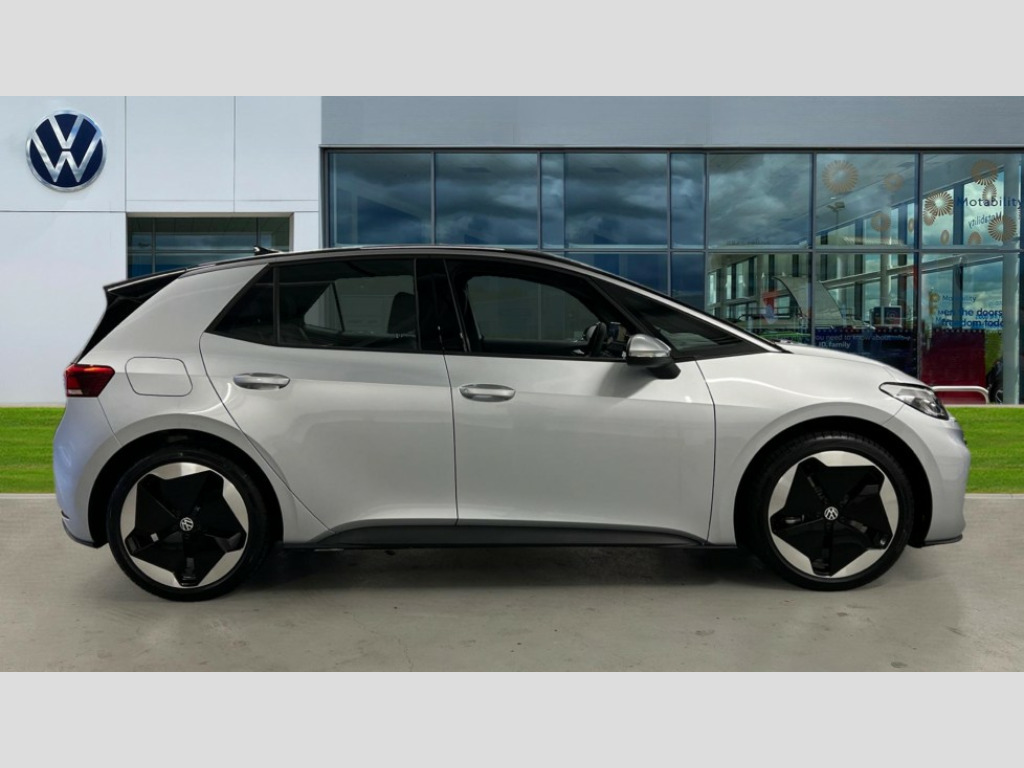 Volkswagen Id.3 150kW Essential Pro S 77kWh 5dr Auto [5 Seats] Adaptive cruise control, Advanced driver attention and drowsiness monitor, Bluetooth connectivity, Car2X intelligent vehicle networking, Dynamic road sign display, E-call, E-Sim card for online connectivity, Natural voice control, Oncoming vehicle braking when turning including swerve support, Predictive speed limiter, Preparation for navigation system with media and internet package, Ready to discover infotainment system with 12.9" display, Trip computer, Warning signal and warning light for front and rear seatbelts not fastened, Wireless app connect, 170kW DC battery charging, Battery 320 A (49 Ah), Charging cable mode 3, Type 2: 7.2kW 1-Phase/11kW 3-Phase (32A), Rear wheel drive, Standard electronic engine sound actuator, 2 USB C ports in front, 2 USB charging sockets on the centre console in the rear charging capacity upto 45W, DAB Digital radio, Gaming platform via car app, Auto dimming rear view mirror, Automatic headlights, Automatically front heated washer nozzles, Body colour door handles, Body coloured bumpers, Front and rear electric windows, Heat insulating windscreen, Heated windscreen washer jets, LED 3rd brake lamp, Rain sensor, Rear side wing doors, Rear wiper, Remote electrically foldable door mirrors, puddle lights and reverse activated passenger's door mirror, Separate LED daytime running lights which also perform the indicator function, Variable front intermittent wipers, Welcome light, 3 seat bench in 2nd row, Air care climatronic air conditioning system, Centre console with illuminated storage compartment with sliding cover and two drinks holders, Comfort seats, Electric auxiliary air heater, Folding rear seats, Front armrests, Front headrests, Isofix child seat preparation easy-fit (for two outer rear seats, and front passenger seat) compatible with I-size, Leather wrapped multifunction steering wheel, Play and Pause brake and accelerator pedals, Reach + rake adjustable steering column, Rear headrests, Rear seat bench unsplit, backrest split folding with center armrest, Single front passenger seat, Sunvisors with illuminated vanity mirrors, Styling pack - ID.3, 3 rear 3 point seatbelts, Anti-lock braking system (ABS), Autonomous emergency braking front assist with pedestrian and cyclist monitoring, Centre airbag, Child locks on rear doors, Disc brakes in front, Driver and front passenger airbags, Electronic parking brake with auto hold, Electronic Stability Programme (ESP), Front and rear curtain airbags, Front passenger airbag deactivation, Front side airbags, Single tone horn, Traction control with on/off button, Tyre pressure loss indicator, Anti theft wheel bolts, Immobiliser, Remote central locking, 20" Sanya black diamond turned surface alloy wheels, Tool kit + Tyre mobility set (including 12-volt compressor + tyre sealant)