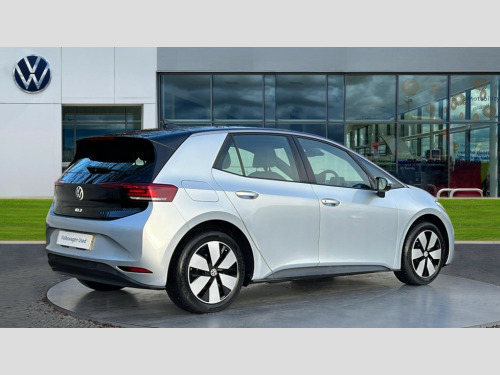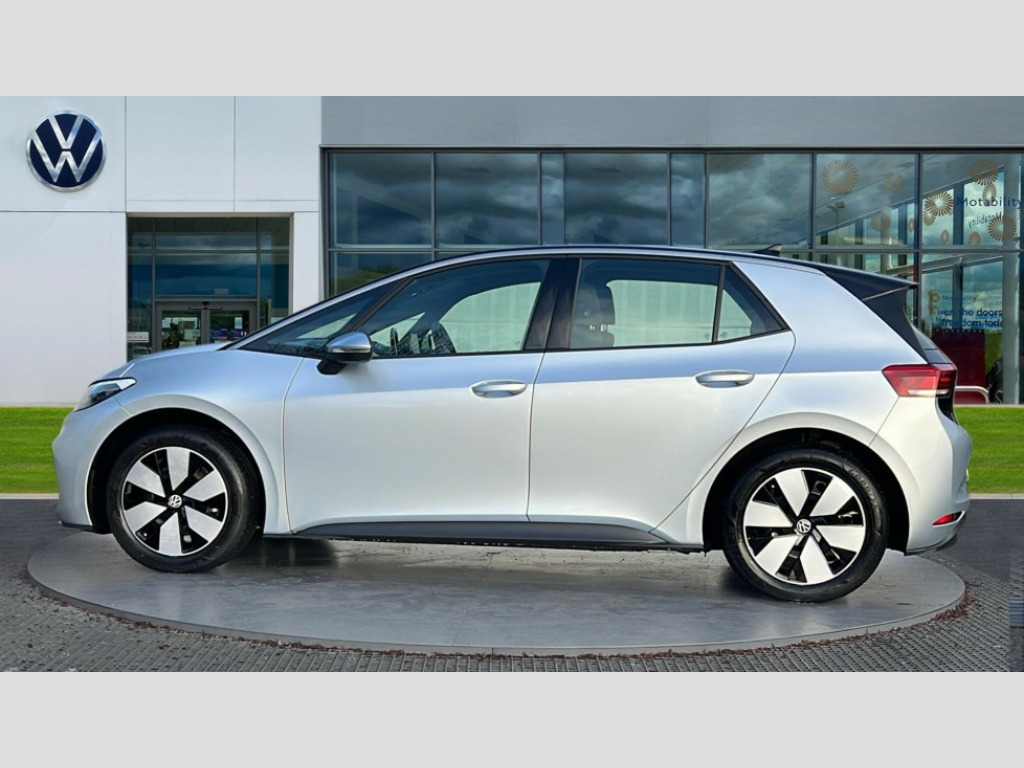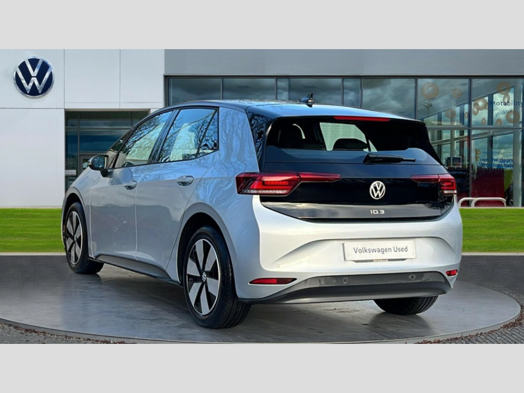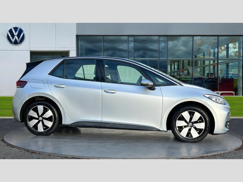 Volkswagen Id.3 125kW Essential Pure 52kWh 5dr Auto Adaptive cruise control, Advanced driver attention and drowsiness monitor, Bluetooth connectivity, Car2X intelligent vehicle networking, Dynamic road sign display, E-call, E-Sim card for online connectivity, Front and rear parking sensors, Natural voice control, Oncoming vehicle braking when turning including swerve support, Predictive speed limiter, Preparation for navigation system with media and internet package, Ready to discover infotainment system with 12.9" display, Trip computer, Warning signal and warning light for front and rear seatbelts not fastened, Wireless app connect, 120kW DC battery charging, Battery 320 A (49 Ah), Charging cable mode 3, Type 2: 7.2kW 1-Phase/11kW 3-Phase (32A), Rear wheel drive, Standard electronic engine sound actuator, 2 USB C ports in front, 2 USB charging sockets on the centre console in the rear charging capacity upto 45W, DAB Digital radio, Gaming platform via car app, Auto dimming rear view mirror, Automatic headlights, Heat insulating windscreen, Heated windscreen washer jets, LED 3rd brake lamp, Rain sensor, Rear side wing doors, Rear wiper, Remote electrically foldable door mirrors, puddle lights and reverse activated passenger's door mirror, Separate LED daytime running lights which also perform the indicator function, Welcome light, 3 seat bench in 2nd row, Air care climatronic air conditioning system, Centre console with illuminated storage compartment with sliding cover and two drinks holders, Electric auxiliary air heater, Folding rear seats, Front armrests, Front headrests, Isofix child seat preparation easy-fit (for two outer rear seats, and front passenger seat) compatible with I-size, Leather wrapped multifunction steering wheel, Rear headrests, Rear seat bench unsplit, backrest split folding with center armrest, Single front passenger seat, Standard pedals, Sunvisors with illuminated vanity mirrors, Styling pack - ID.3, 3 rear 3 point seatbelts, Autonomous emergency braking front assist with pedestrian and cyclist monitoring, Centre airbag, Child locks on rear doors, Disc brakes in front, Driver and front passenger airbags, Front and rear curtain airbags, Front passenger airbag deactivation, Front side airbags, Single tone horn, Tyre pressure loss indicator, Anti theft wheel bolts, Immobiliser, Remote central locking, Tool kit + Tyre mobility set (including 12-volt compressor + tyre sealant), Wheel trims