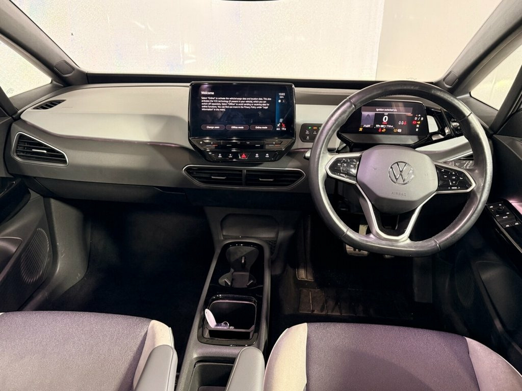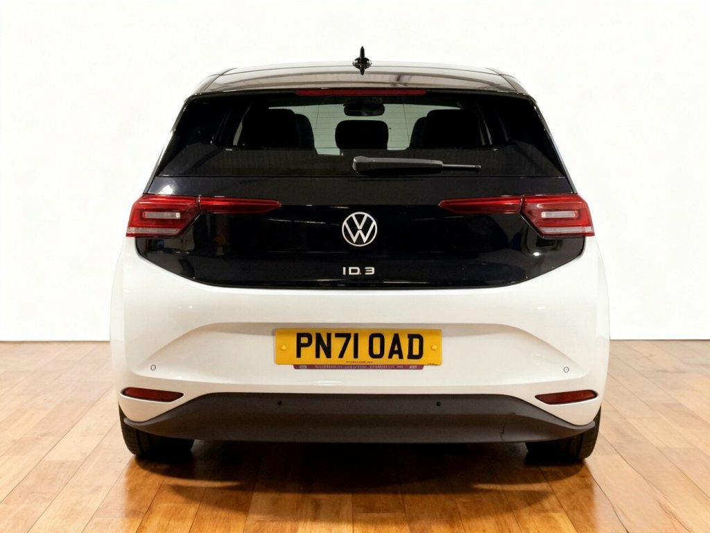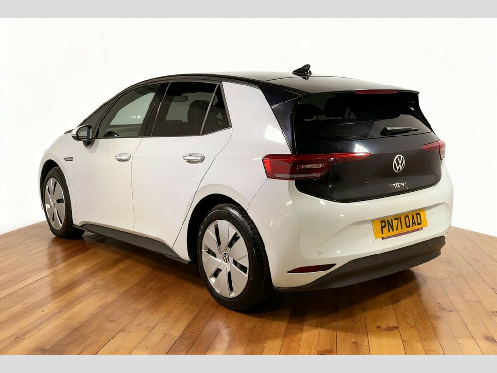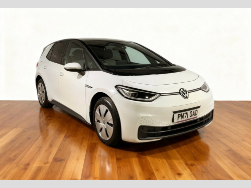 This 2021 Volkswagen ID.3 Pro Family is a standout electric vehicle, boasting exceptionally low mileage for its age, having covered just 17,615 miles, and having had only one owner from new. This particular model, the Family trim, features a 62 kWh battery offering a maximum range of 257 miles when new, and can be fully charged at home using a 7kW charger in approximately 9 hours and 30 minutes. For quicker top ups, it can reach 80% charge in as little as 37 minutes at a compatible public charging station. The ID.3 Pro Family comes equipped with a suite of features designed for comfort and convenience. These include front and rear parking sensors with parking assistance, adaptive cruise control with front assist and city emergency braking, and an assistance pack that adds keyless entry and a rear parking camera. The Design Package Plus brings LED headlights and an opening panoramic sunroof, while the Comfort Package Plus ensures a pleasant driving experience with climate control, heated seats, and a heated steering wheel. A 12 month MOT will be provided on purchase, ensuring peace of mind for its next owner. 10in Infotainment System, 18in Steel Wheels - Aero, ABS - Anti-Lock Braking System, Adaptive Cruise Control ACC including Fr, Airbag - Front Centre, Airbags - Curtain Front, Airbags - Driver, Airbags - Front Side, Airbags - Passenger, Armrest Integrated into Front Seats, Assistance Pack, Black Roof, Body Coloured Bumpers - Door Handles and, Car2X Technology, Comfort Package Plus, DAB Digital Radio, Design Package Plus, Digital Dashboard, Driver Alert System, Electric Windows - Front and Rear, Electronic Parking Brake with Auto Hold , Exterior E-Sound, Free WeConnect Start for First 3 Years, Heated Rear Window, ID Light, Infotainment Package, Interior Alarm, Interior Ambient Lighting - 10 Col