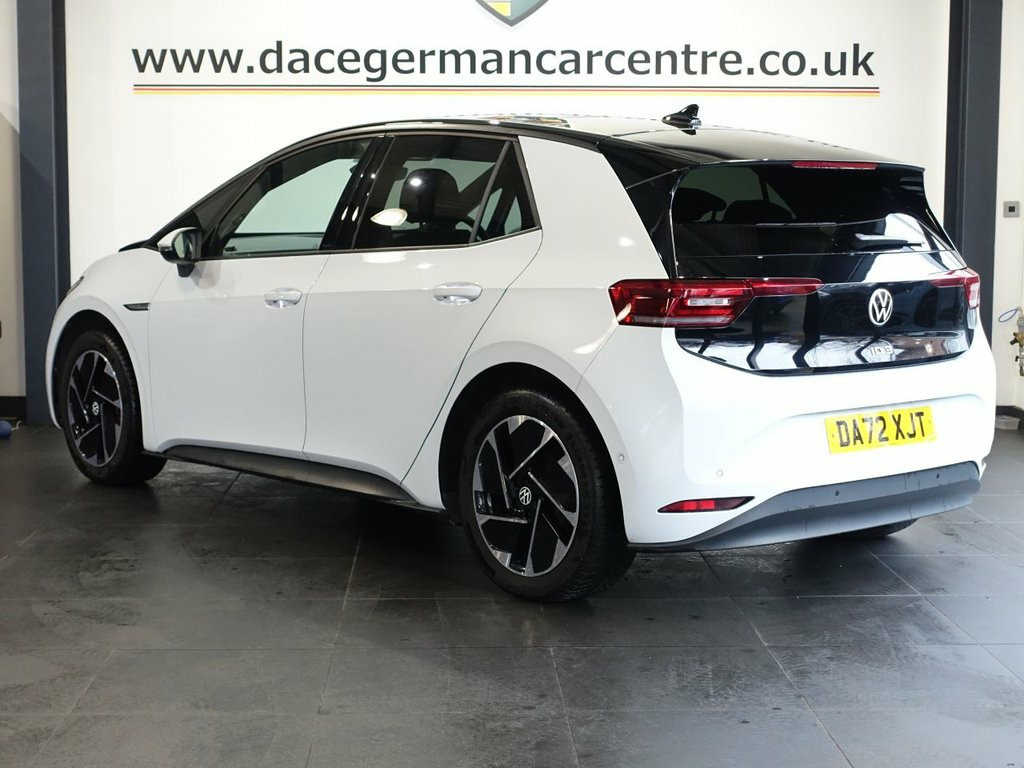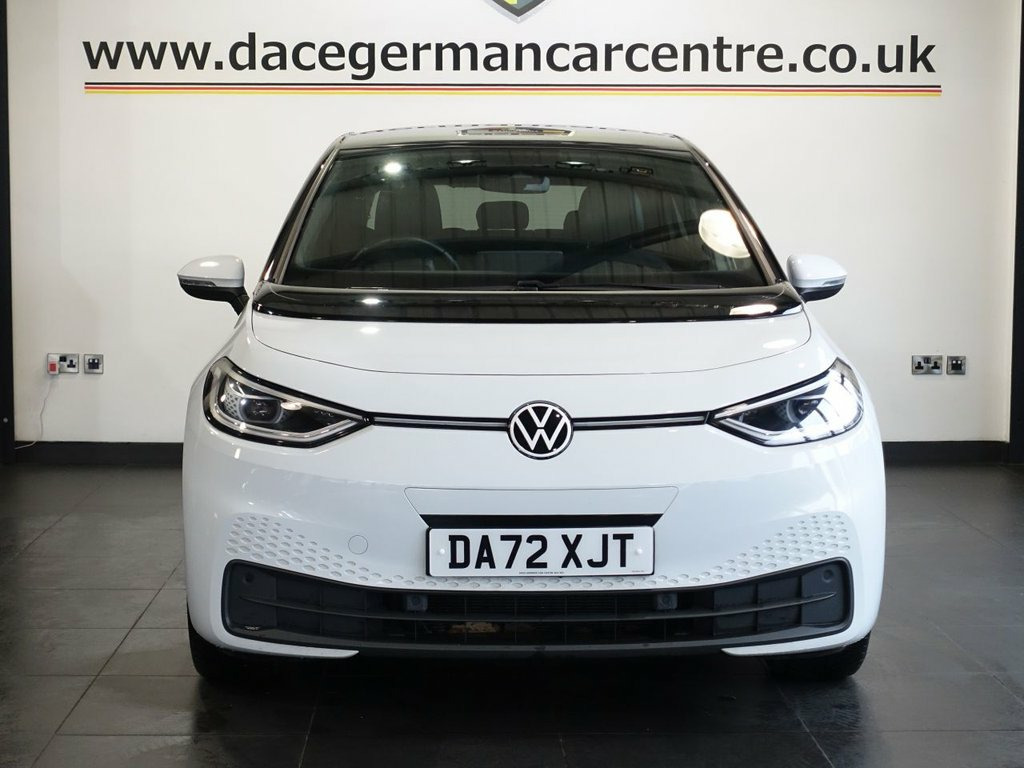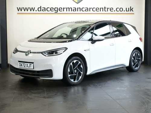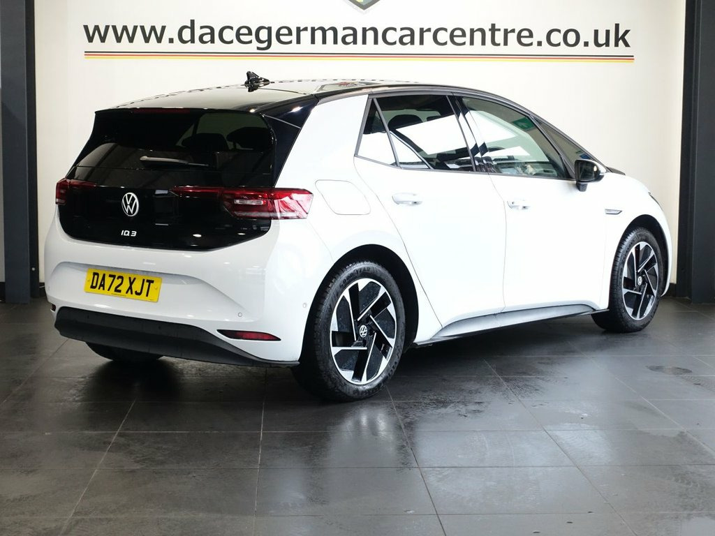 FINISHED IN STUNNING GLACIER WHITE WITH CONTRASTING BLACK ROOF, COMPLIMENTED WITH 2 TONE BLACK/GREY PART LEATHER, HEATED SEATS + BEAUTIFUL LOOKING, HIGH SPECIFICATION ID3 - 1 OWNER FROM NEW AND COMES WITH A FULL VOLKSWAGEN MAIN DEALER SERVICE HISTORY + PANORAMIC GLASS SUNROOF + VIRTUAL COCKPIT DIGITAL DASH DISPLAY + SATELLITE NAVIGATION + APPLE CARPLAY / ANDROID AUTO + REAR VIEW CAMERA + BLUETOOTH MEDIA STREAMING + APPS CONTROL + DAB DIGITAL RADIO + TOUCH SCREEN MEDIA DISPLAY + ADAPTIVE CRUISE CONTROL + LANE ASSIST + FRONT AND REAR PARKING SENSORS + AUTOMATIC LED HEADLIGHTS + LED DAY TIME RUNNING LIGHTS + LEATHER MULTI FUNCTIONAL STEERING WHEEL + VOICE COMMAND + HILL HOLD START ASSIST + ECO STOP START SYSTEM + DUAL ZONE CLIMATE CONTROL + AUTOMATIC AIR CONDITIONING + AUTOMATIC WIPERS WITH RAIN SENSOR + 18 INCH ALLOY WHEELS + ELECTRIC HEATED DOOR MIRRORS + 60/40 FOLDING REAR SEATS.... ***NOT SURE YOU'RE ELIGIBLE FOR CAR FINANCE? *** CHECK TODAY USING THE FREE CAR FINANCE CHECKER ON OUR WEBSITE.** Dace Motor Group have a dedicated team of finance experts waiting to help with your enquiry. Over the past 30 years we have forged relationships with the country's largest and best finance houses. We are specialists in Hire Purchase (HP), Personal Contract Purchase (PCP) as well as assisting those with poor credit or previous credit problems. ------------ABOUT US------------ - At Dace German Car Centre, we are very proud to have been named the first Trading Standards Appro 10in Infotainment System, 18in Alloy Wheels - East Derry, 18in Steel Wheels - Aero, ABS - Anti-Lock Braking System, Adaptive Cruise Control ACC including Fr, Airbag - Front Centre, Airbags - Curtain Front, Airbags - Driver, Airbags - Front Side, Airbags - Passenger, Armrest Integrated into Front Seats, Assistance Pack, Black Roof, Body Coloured Bumpers - Door Handles and, Car2X Technology, Comfort Package Plus, DAB Digital Radio, Design Package Plus, Digital Dashboard, Driver Alert System, Electric Windows - Front and Rear, Electronic Parking Brake with Auto Hold , Exterior E-Sound, Free WeConnect Start for First 3 Years, Glacier White with Black Roof, Heated Rear Window, ID Light, Infotainm