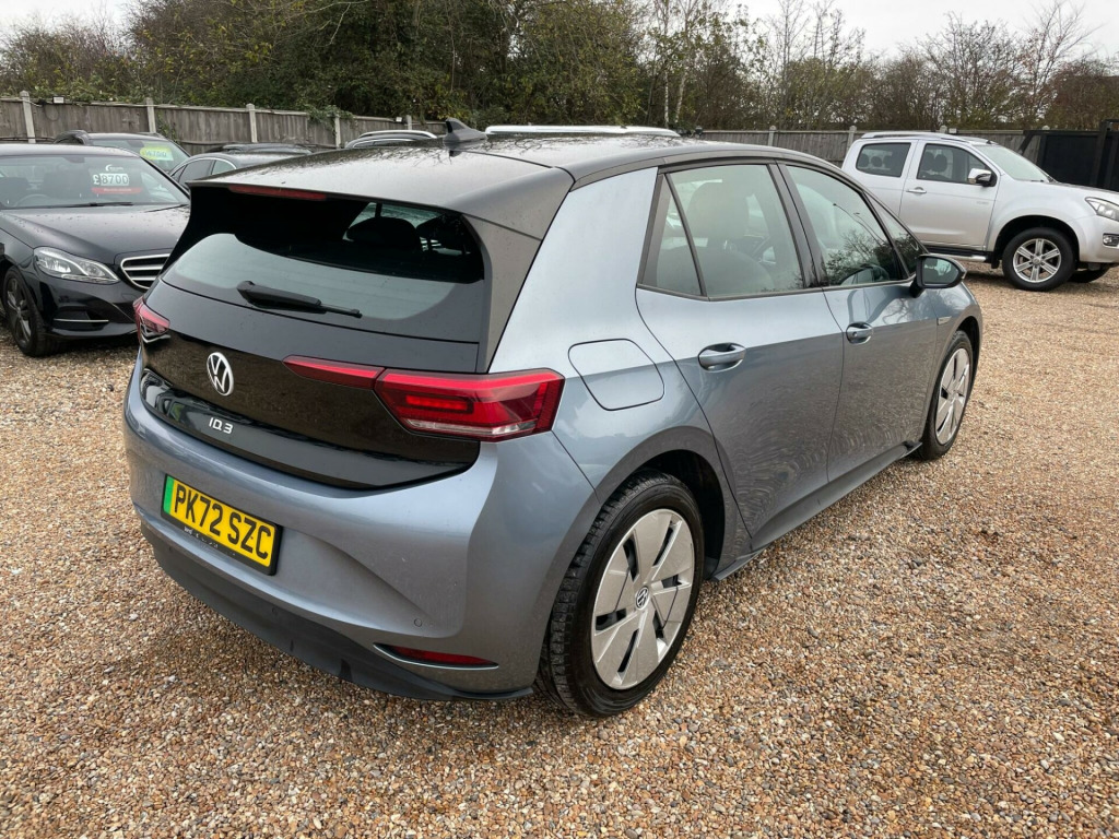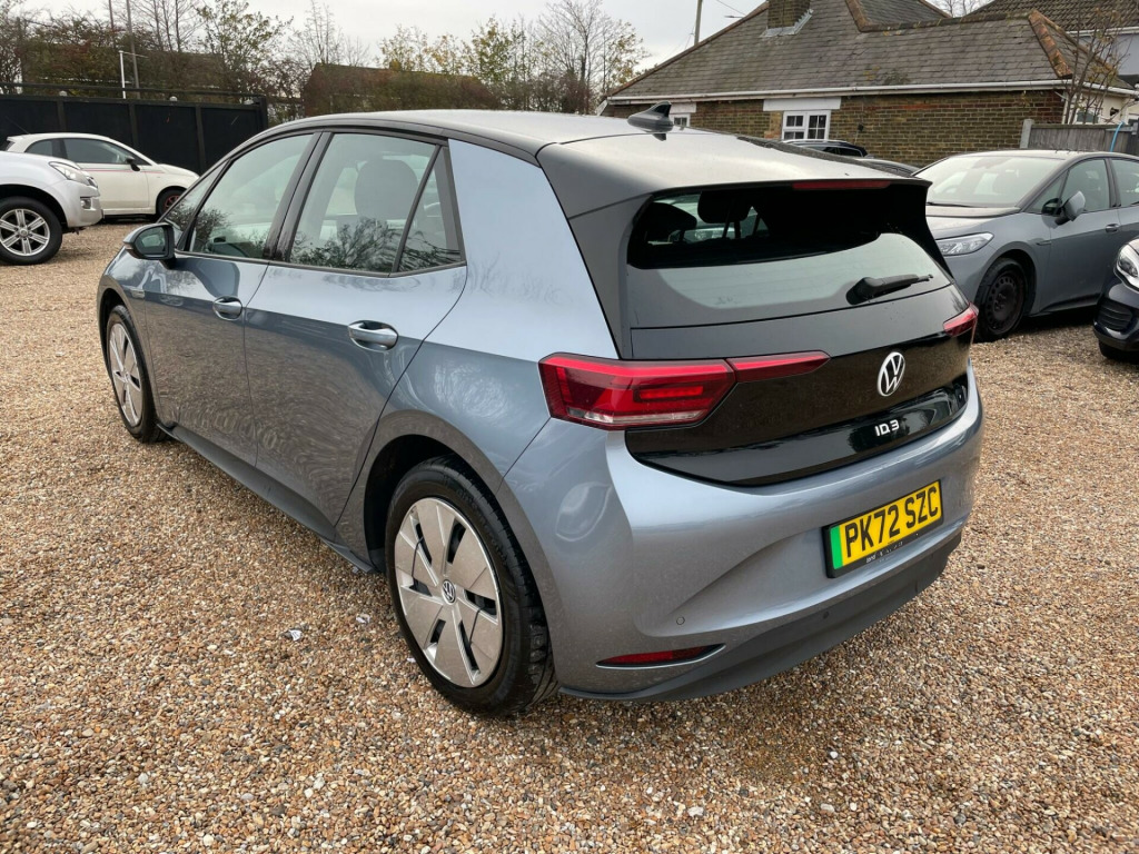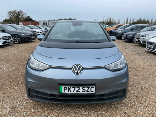 FREE 12 MONTHS AA BREAKDOWN COVER, ZERO DEPOSIT FINANCE AVAIL, 6 MONTHS NATIONWIDE WARRANTY, Full service history, 1 Owner from new, Hpi clear, all previous Mot's avail. We are located in CANVEY ISLAND, ESSEX SS8 0QDThis 2022 Volkswagen ID.3 Pro Life is a superb example, having had only one owner since new. As an electric vehicle, it offers a smooth and quiet driving experience, powered by a 62 kWh battery that provides a maximum range of 260 miles when new. This particular model, the Life trim, comes equipped with a host of impressive features designed for comfort and convenience. These include Adaptive Cruise Control with Front Assist and City Emergency Braking, front and rear parking sensors for effortless manoeuvring, and All LED Headlights for excellent visibility. The Comfort Package adds heated seats and a heated steering wheel, perfect for colder days, while the 1 Zone Climatronic ensures a pleasant cabin temperature.The Volkswagen ID.3 Pro Life stands out with its generous boot space, offering ample room for shopping or luggage. Its impressive battery range of 260 miles means fewer stops on longer journeys, and charging is convenient. A full charge at home using a 7kW charger takes approximately 9 hours and 30 minutes, ideal for overnight top ups. For quicker charging on the go, it can reach 80% capacity from empty in just 37 minutes at a public charging station. These features, combined with its single owner provenance, make this ID.3 a compelling choice for those seeking an efficient and well equipped electric car.. 1-Zone Climatronic, 10in Infotainment System, 18in Steel Wheels - Aero, ABS - Anti-Lock Braking System, Adaptive Cruise Control ACC including Front Assist - Radar Sensor Controlled Distance - Monitoring System - City Emergency Braking System - Cruise Control and Speed Limiter, Airbag - Front Centre, Airbags - Curtain Front, Airbags - Driver, Airbags - Front Side, Airbags - Passenger, All-LED Headlights with Reflector Technology, Armrest Integrated into Front Seats, Black Roof, Body Coloured Bumpers - Door Handles and Door Mirrors with Integrated Indicators, Car2X Technology, Comfort Package, DAB Digital Radio, Digital Dashboard, Driver Alert System, Electric Windows - Front and Rear, Electronic Parking Brake with Auto Hold Function, Exterior E-Sound, Free WeConnect Start for First 3 Years, Heated Rear Window, ID Light, Infotainment Package, Interior Alarm, Interior Ambient Lighting - 10 Colours, Lane Assist, Mode 3 - 32-AMP - 7.2kW Charging Cable for Charging at Public Charge Points, NCAP Pack - Forward Collision Warning - Extended and Proactive Pedestrian Protection, Natural Voice Control, Parking Sensors - Front and Rear, Power Assisted Steering - Speed Sensitive, Remote Tailgate Unlocking, Security and Service - SOS Buttons, Special WeCharge Conditions for ID 3 Customers within First 3 Years, Tool Kit with Tyre Mobility Kit, We Connect ID App, Wireless App Connect. Full service history